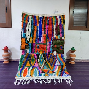 A Moroccan Berber Colorful rug is a traditional handwoven floor covering that originates from the indigenous Berber people of Morocco. These rugs are known for their intricate patterns and bold, geometric designs, which are created using a variety of natural dyes and High-quality Wool. Moroccan boujad rugs are versatile and can be used to add a touch of bohemian chic to any room, from a living room or bedroom to a home office or entryway. They are durable and easy to maintain, making them a practical choice for high-traffic areas. Whether you're looking to add a pop of color to your space or create a warm and welcoming atmosphere, a Moroccan Berber rug is a great choice.