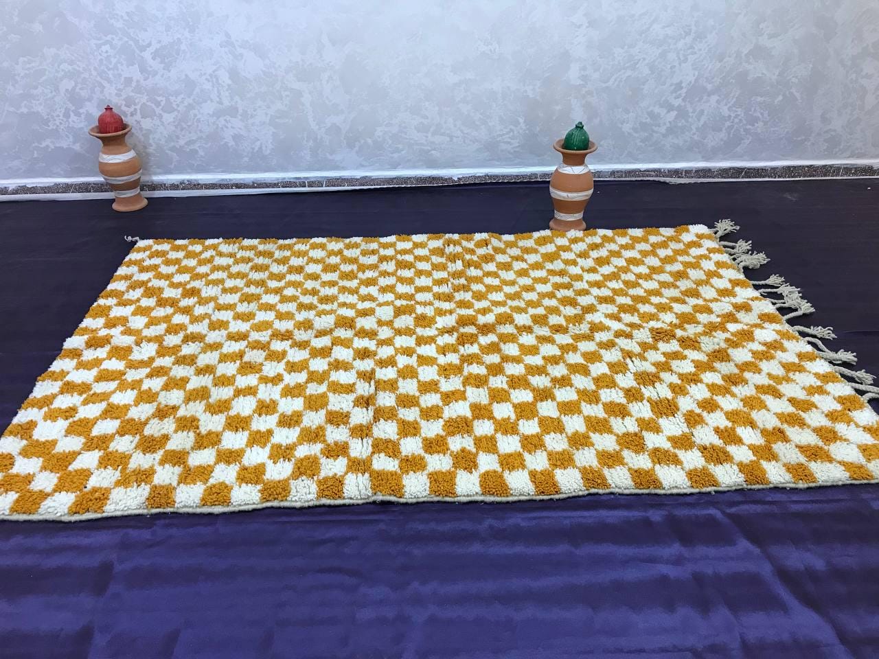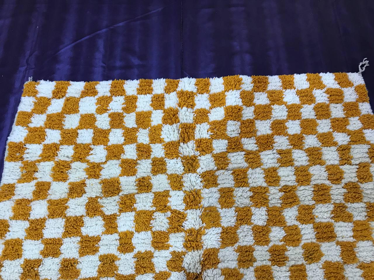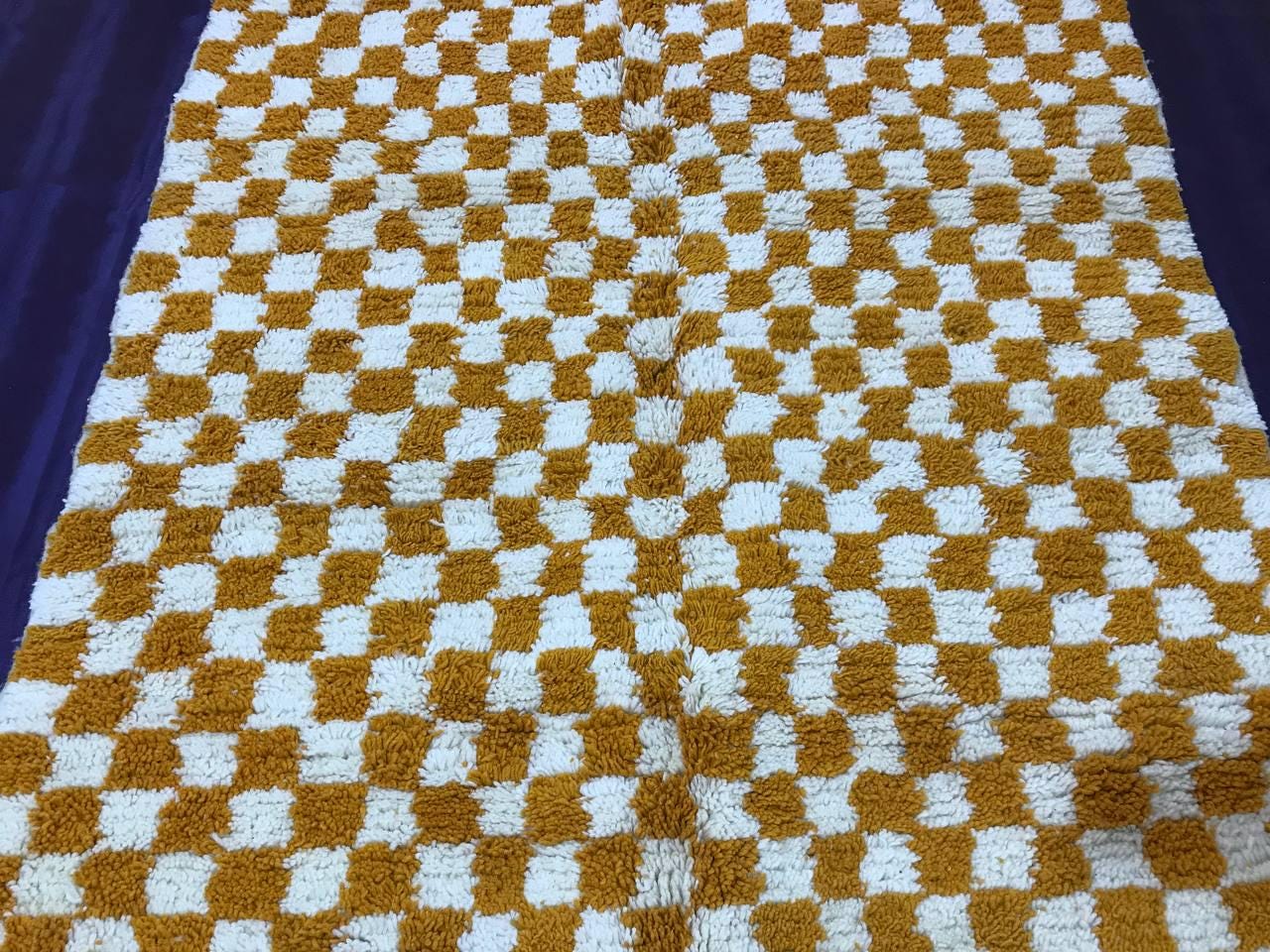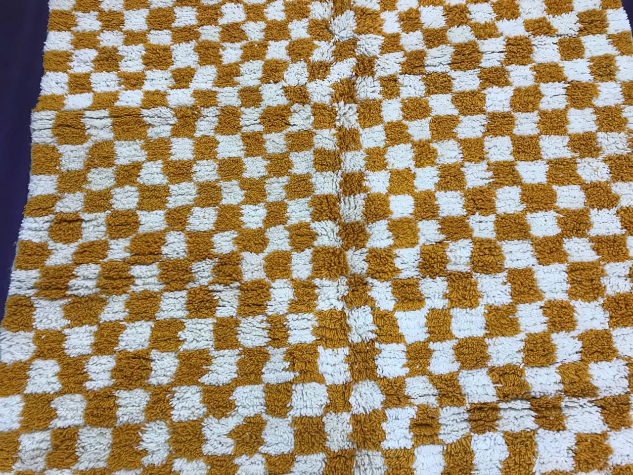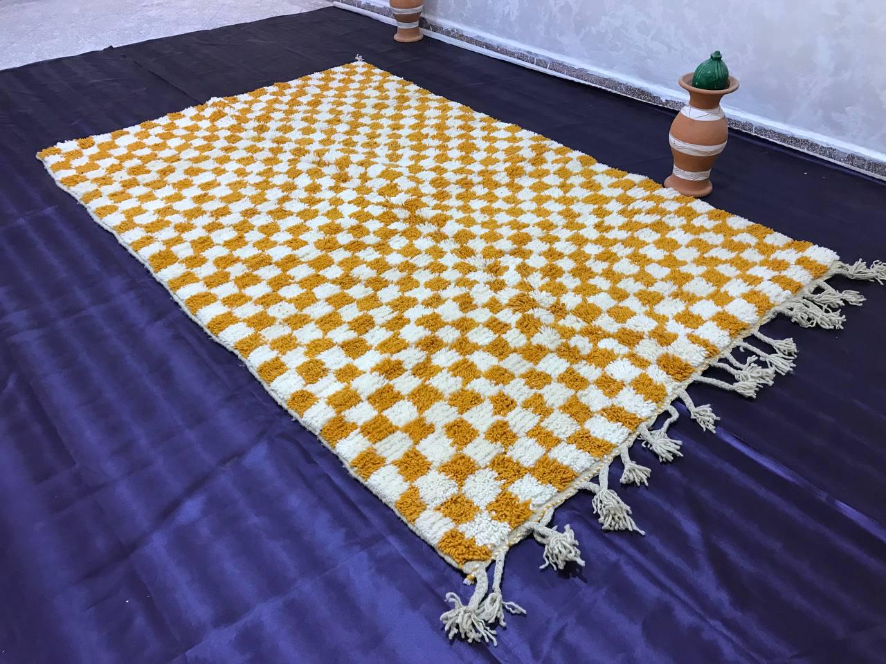 Handmade Moroccan Berber Rug: Yellow Checkered Wool Rug