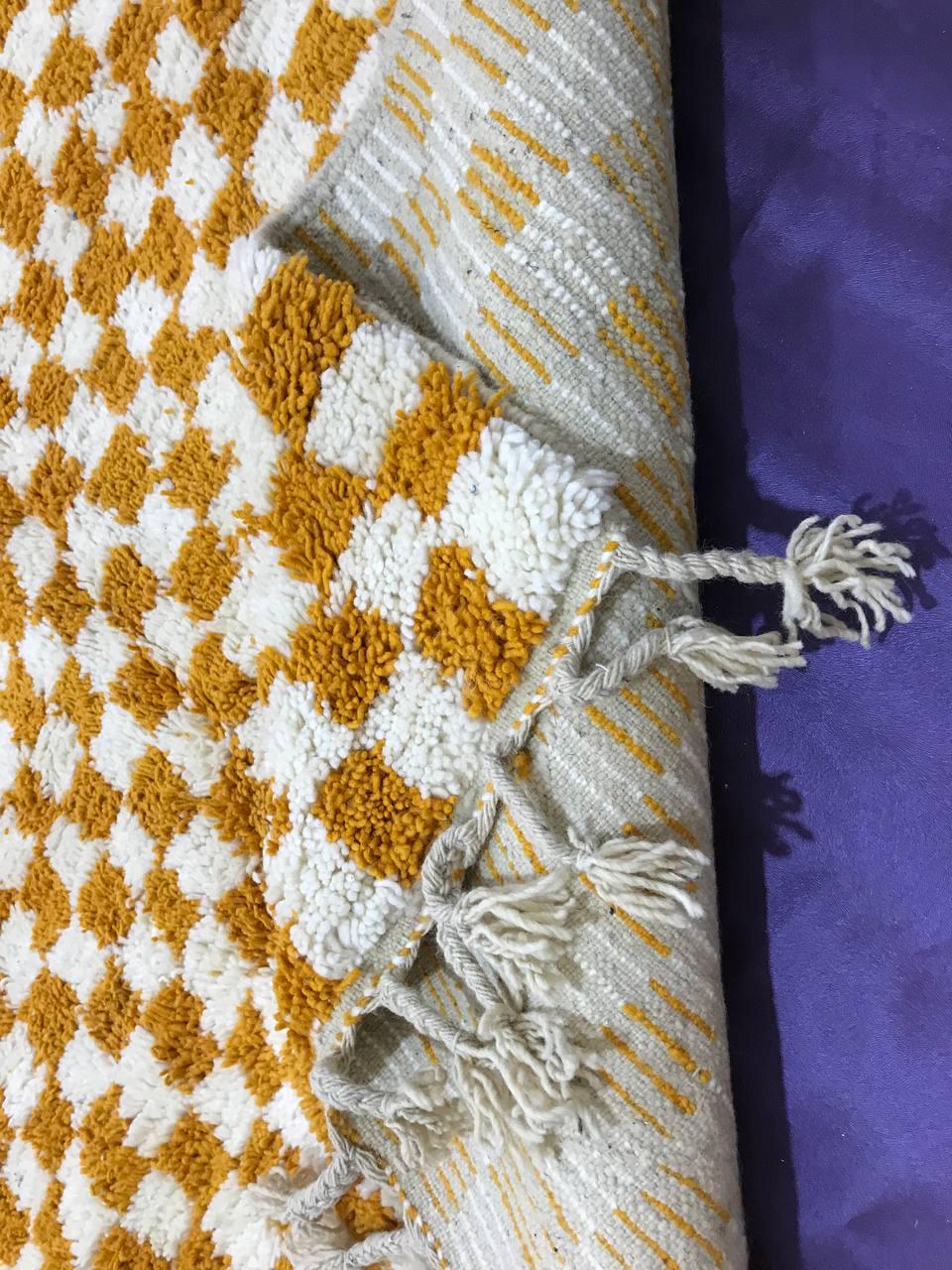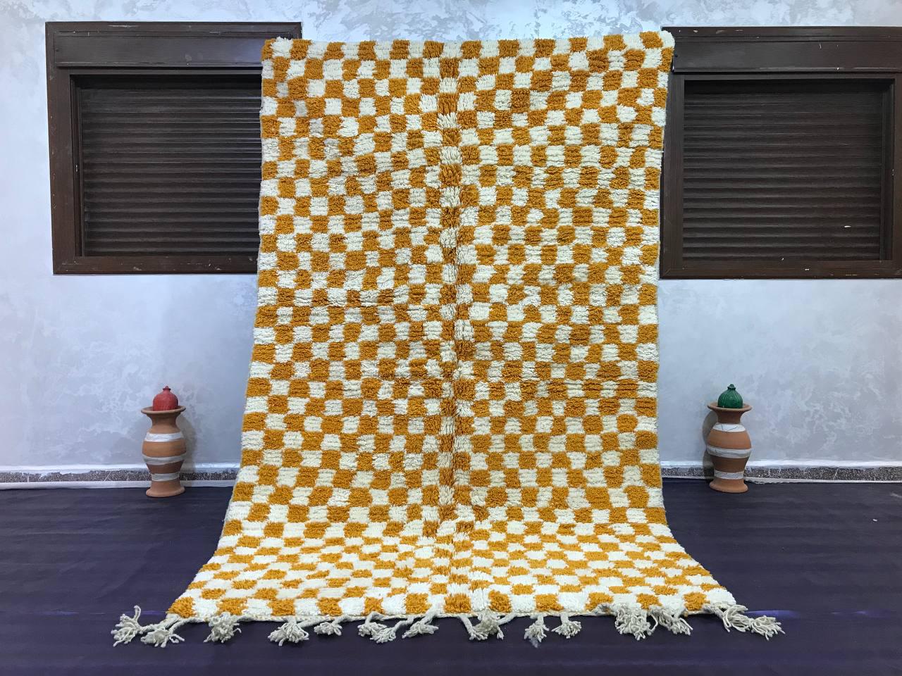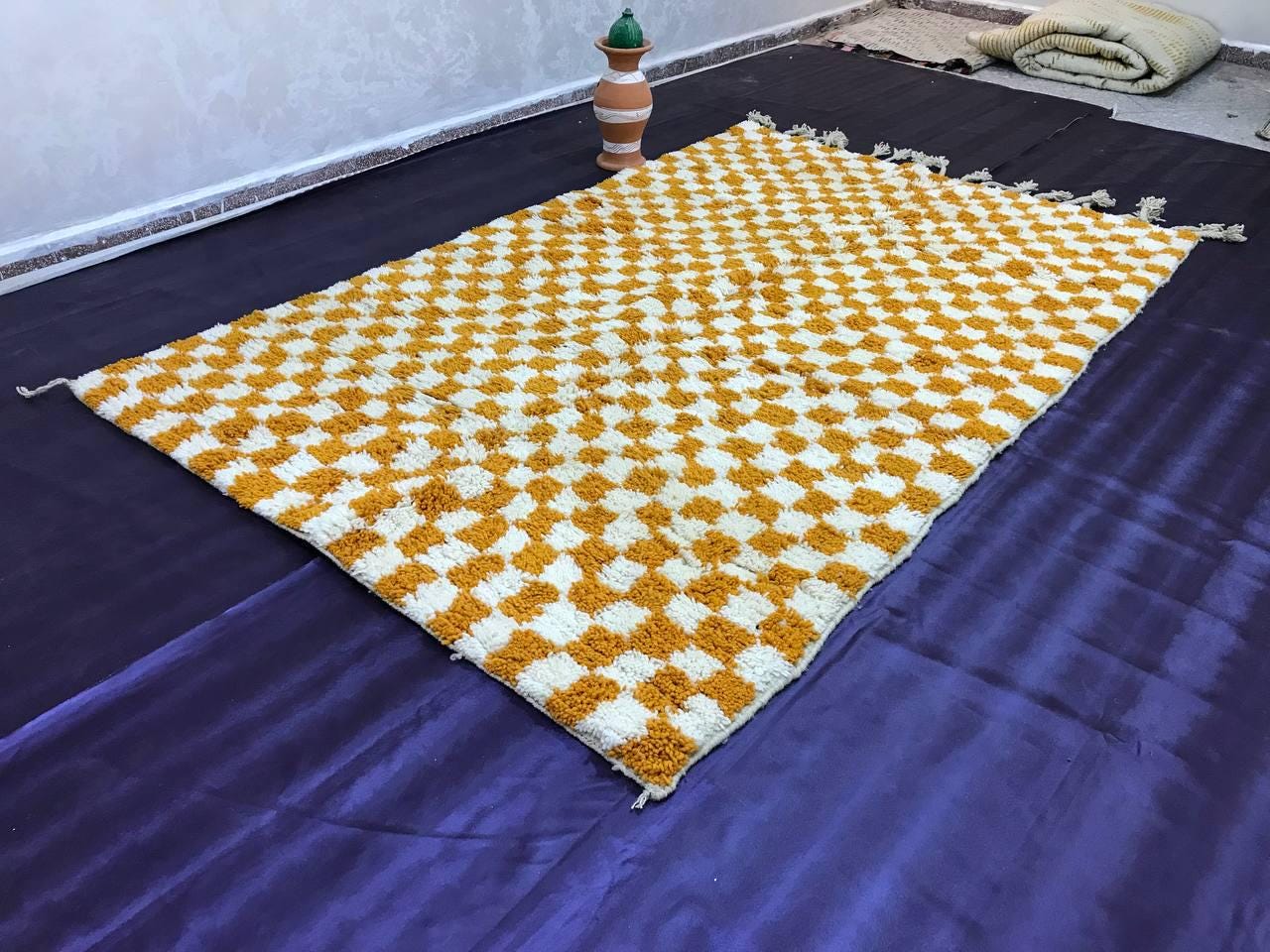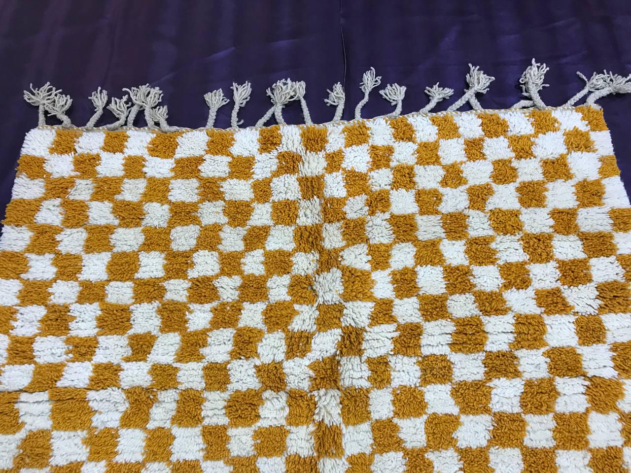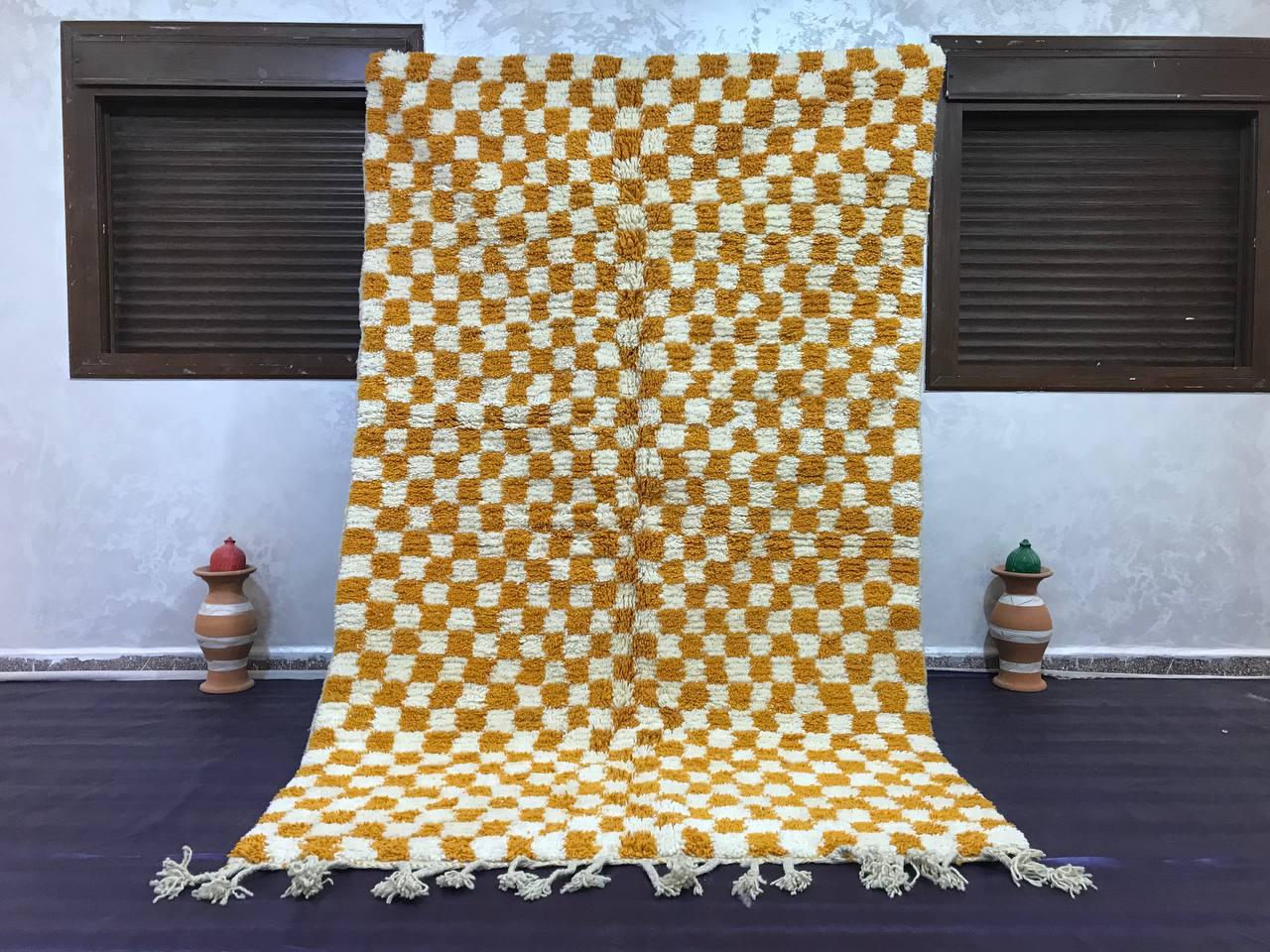 Handmade Moroccan Berber Rug: Yellow Checkered Wool Rug