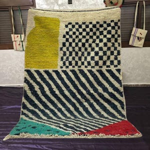 A Moroccan Berber Colorful rug is a traditional handwoven floor covering that originates from the indigenous Berber people of Morocco. These rugs are known for their intricate patterns and bold, geometric designs, which are created using a variety of natural dyes and High-quality Wool. Moroccan boujad rugs are versatile and can be used to add a touch of bohemian chic to any room, from a living room or bedroom to a home office or entryway. They are durable and easy to maintain, making them a practical choice for high-traffic areas. Whether you're looking to add a pop of color to your space or create a warm and welcoming atmosphere, a Moroccan Berber rug is a great choice.
