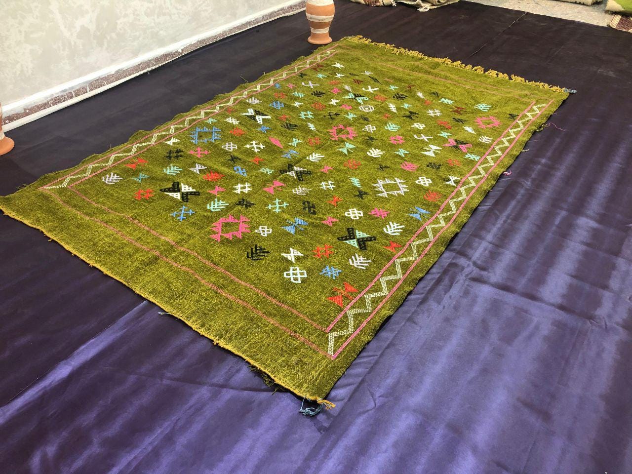 A Moroccan Berber Colorful rug is a traditional handwoven floor covering that originates from the indigenous Berber people of Morocco. These rugs are known for their intricate patterns and bold, geometric designs, which are created using a variety of natural dyes and High-quality Wool. Moroccan boujad rugs are versatile and can be used to add a touch of bohemian chic to any room, from a living room or bedroom to a home office or entryway. They are durable and easy to maintain, making them a practical choice for high-traffic areas. Whether you're looking to add a pop of color to your space or create a warm and welcoming atmosphere, a Moroccan Berber rug is a great choice.