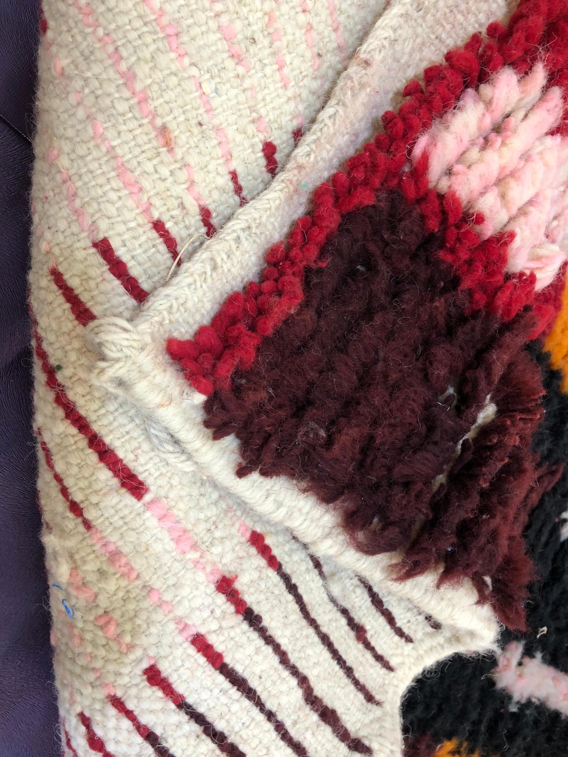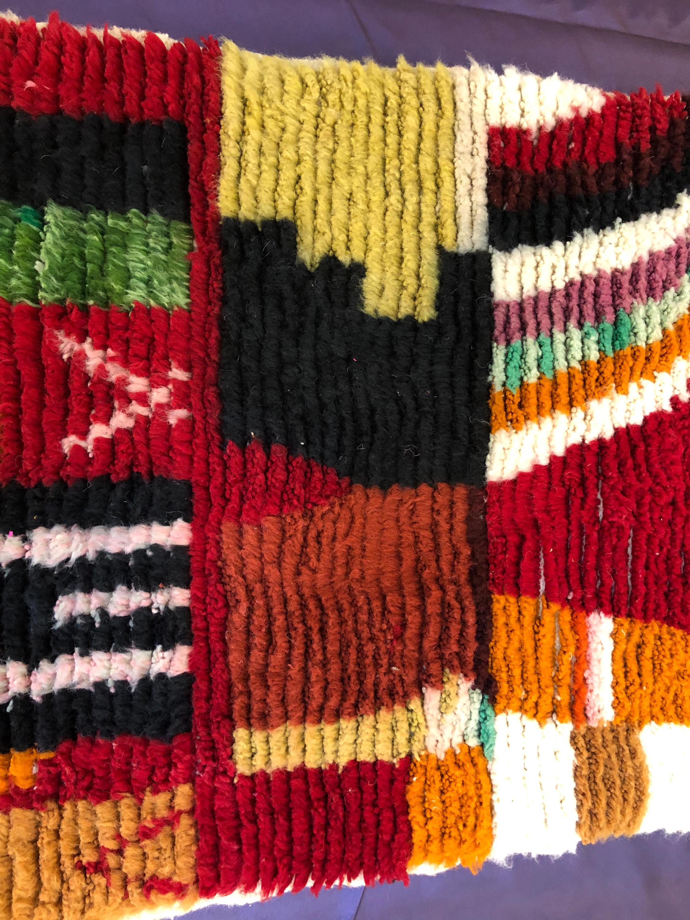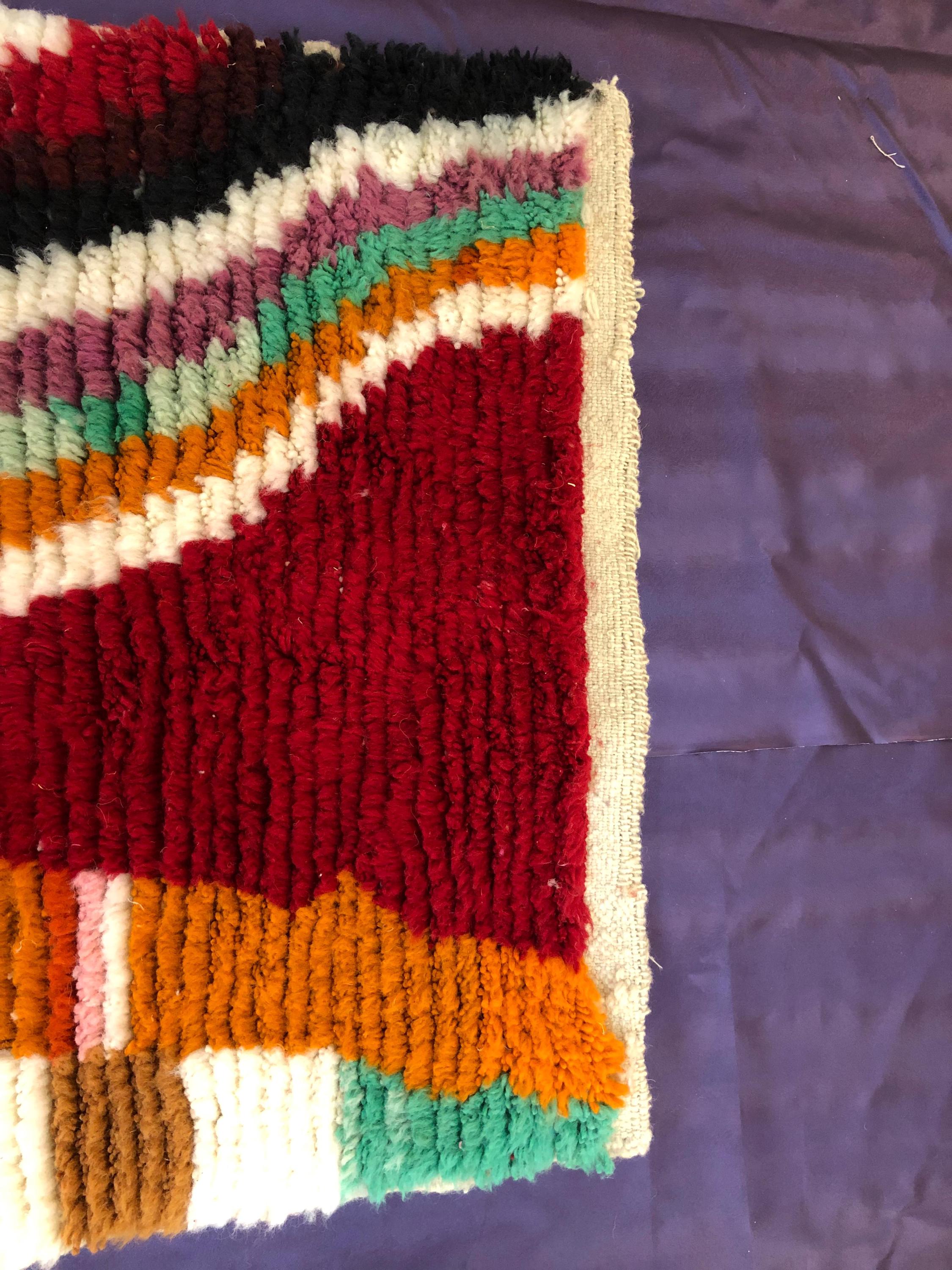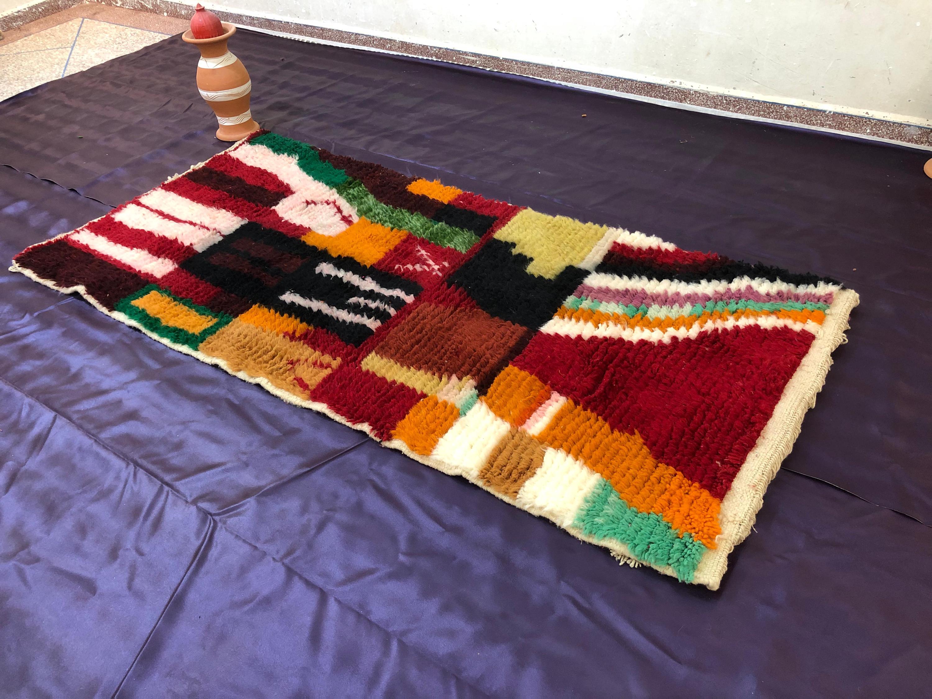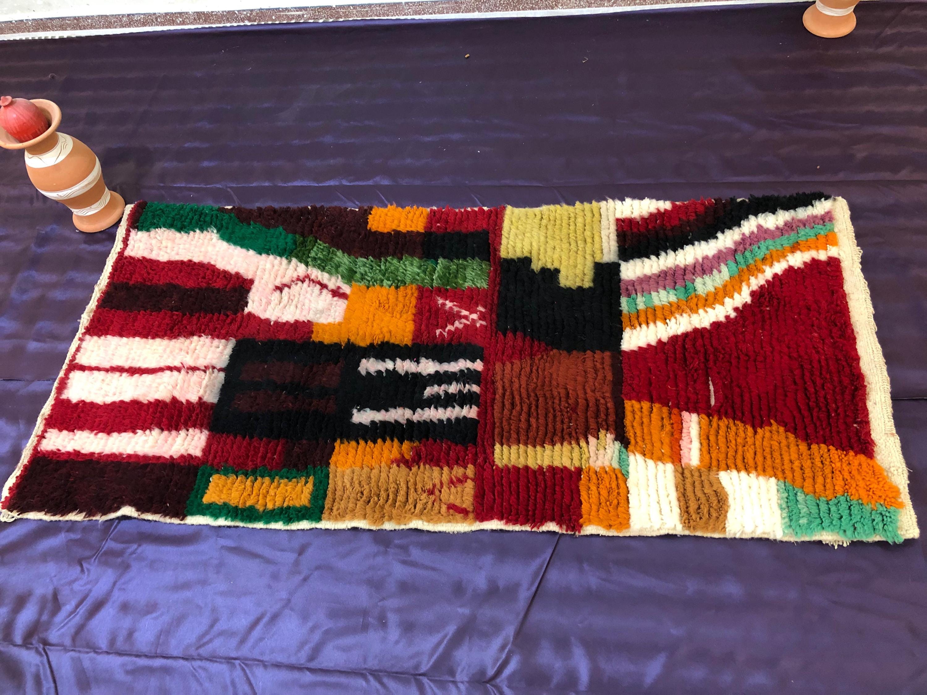 A Moroccan Berber Colorful rug is a traditional handwoven floor covering that originates from the indigenous Berber people of Morocco. These rugs are known for their intricate patterns and bold, geometric designs, which are created using a variety of natural dyes and High-quality Wool. Moroccan boujad rugs are versatile and can be used to add a touch of bohemian chic to any room, from a living room or bedroom to a home office or entryway. They are durable and easy to maintain, making them a practical choice for high-traffic areas. Whether you're looking to add a pop of color to your space or create a warm and welcoming atmosphere, a Moroccan Berber rug is a great choice. 📌 Shipping: insured, trackable, Fast, and FREE Worldwide by FedEx or DHL (2 to 5 days delivery). ❖ Cleaning: all rugs are carefully cleaned before shipping. ❖ Colors: Please take a look at the pictures. ❖ Texture: Moroccan / soft / Shag. ❖ Technique: Hand-Knotted ❖ Construction: Handmade ❖ Location: Indoor Use Only ❖ Material: Your order is made entirely by hand from natural wool, which means there will be natural (and beautiful) variations in pattern and color. Wool shrinks. ❖ Pattern: Because the product is handcrafted, the pattern and Colors may vary slightly from one piece to another. ❖ Size: While we try our best to ensure consistent sizing, it is possible for final sizes to vary by a few inches more or less. ❖ Tassels: One side is the Traditional way of making the rugs. 📌Ships tightly rolled in a protective bag. Any slight creasing will disappear within a few days. Shedding loose fibers is normal with new rugs. Shedding will diminish with regular vacuuming. If you have any questions or queries, please feel free to contact me via messages.