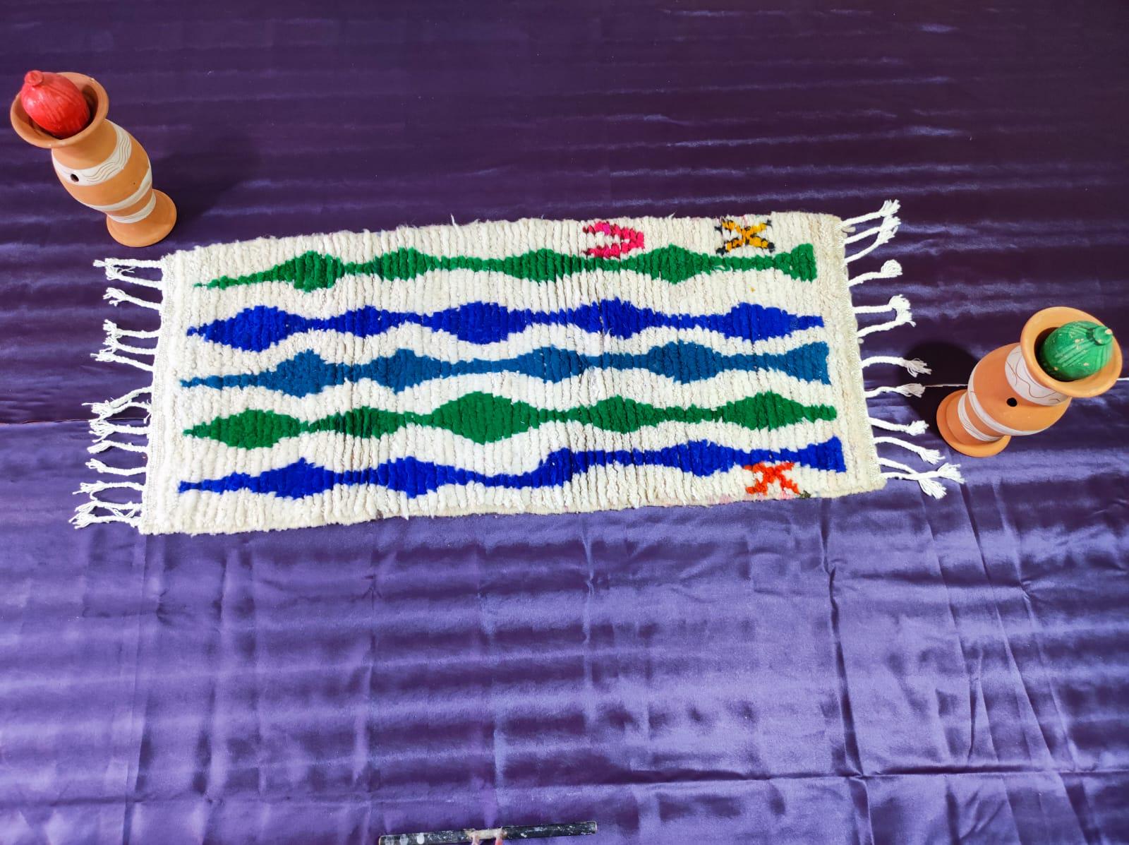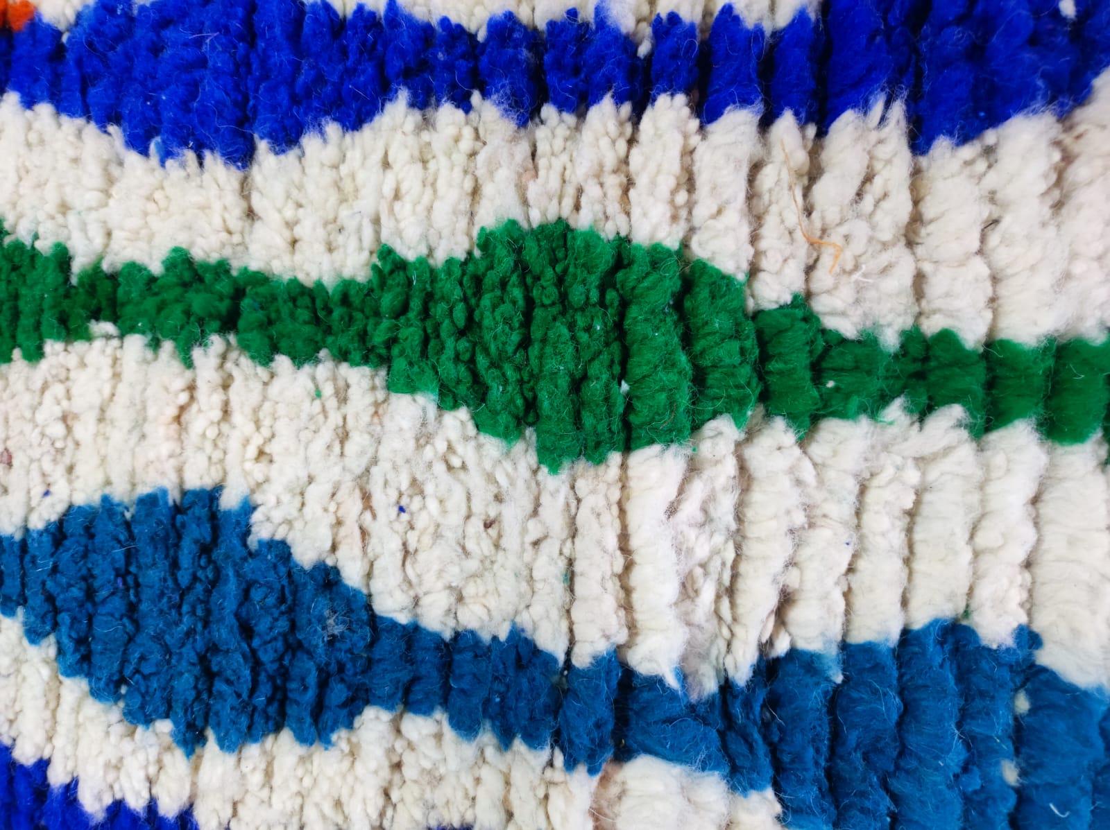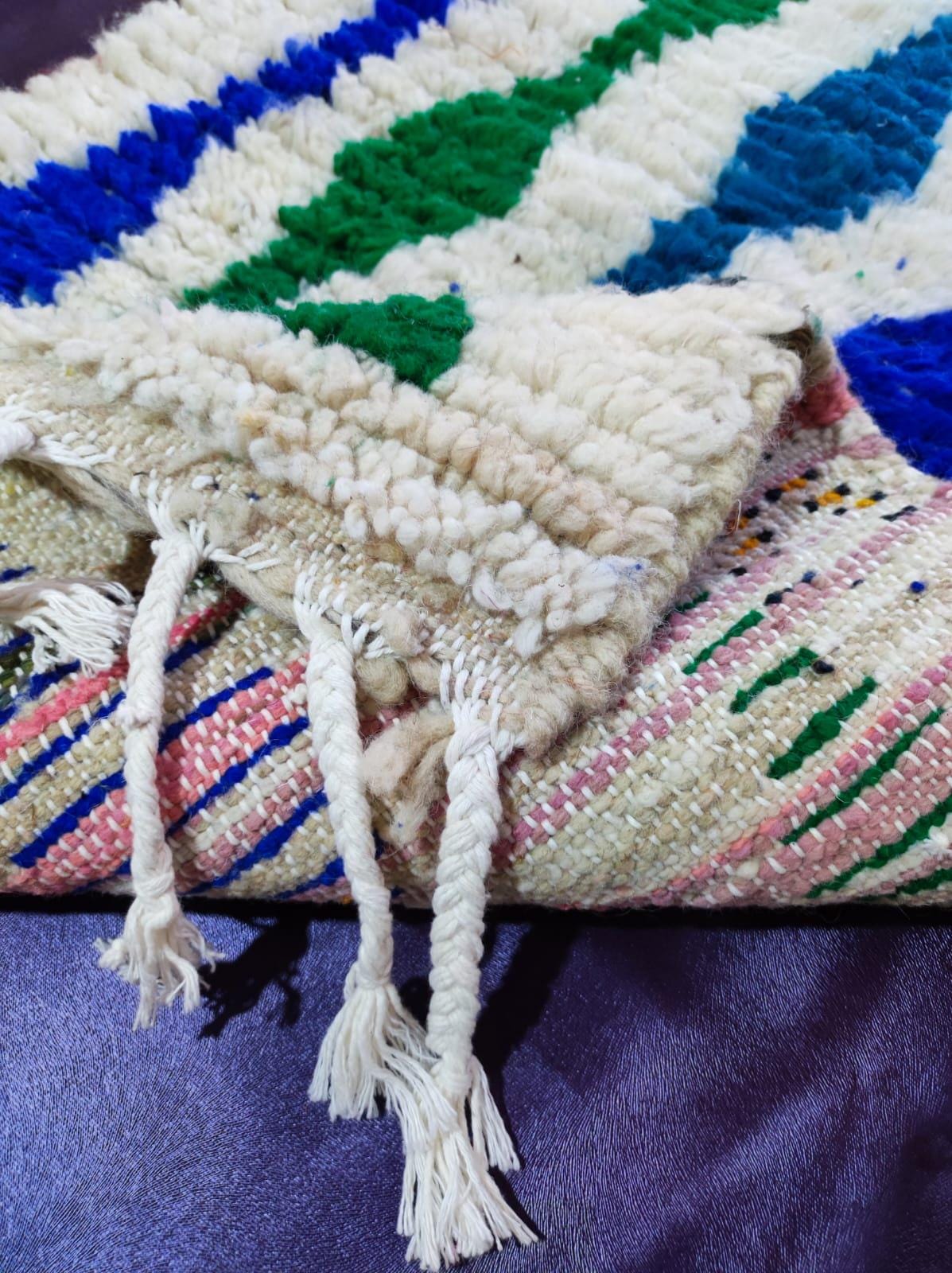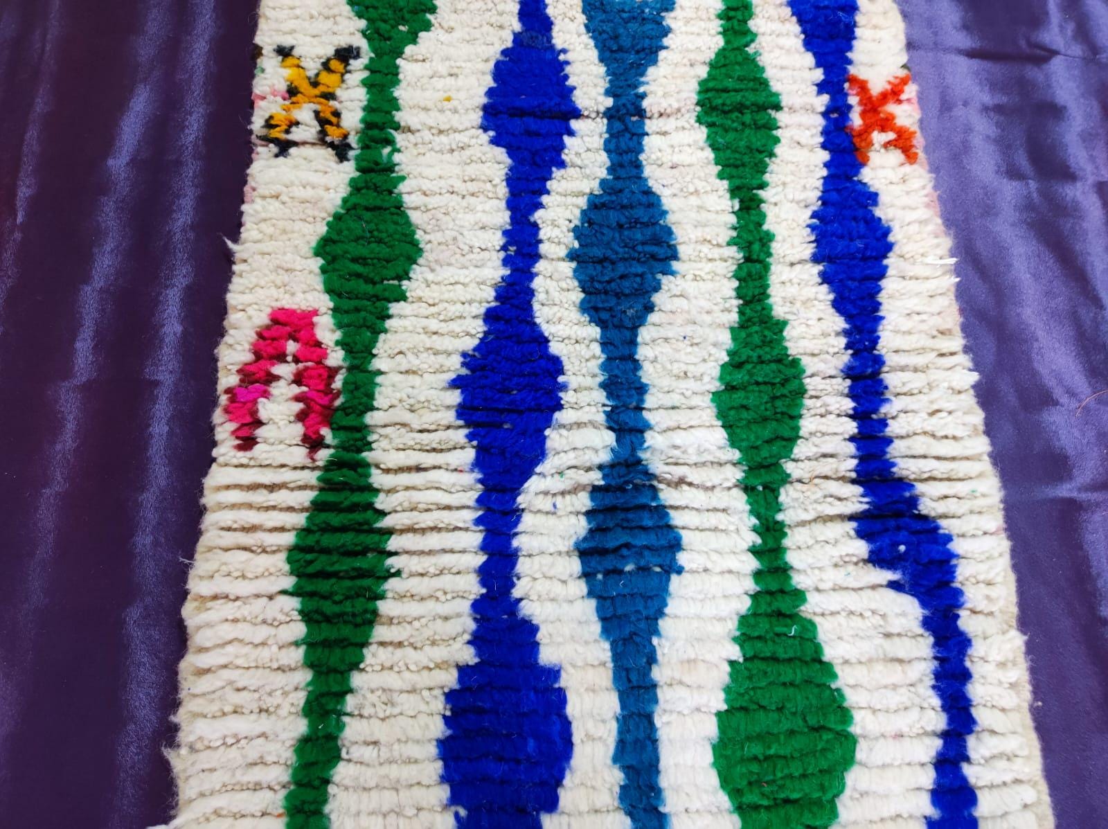 A Moroccan Berber Colorful rug is a traditional handwoven floor covering that originates from the indigenous Berber people of Morocco. These rugs are known for their intricate patterns and bold, geometric designs, which are created using a variety of natural dyes and High-quality Wool. Moroccan boujad rugs are versatile and can be used to add a touch of bohemian chic to any room, from a living room or bedroom to a home office or entryway. They are durable and easy to maintain, making them a practical choice for high-traffic areas. Whether you're looking to add a pop of color to your space or create a warm and welcoming atmosphere, a Moroccan Berber rug is a great choice.