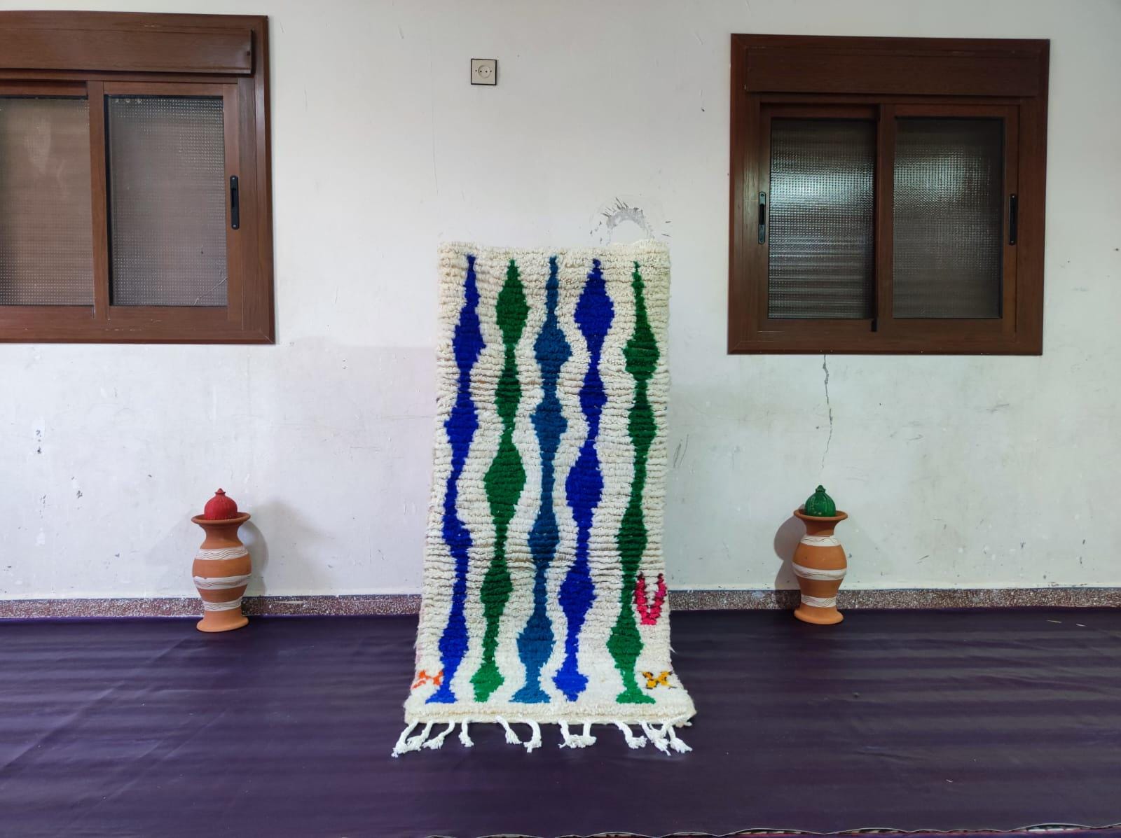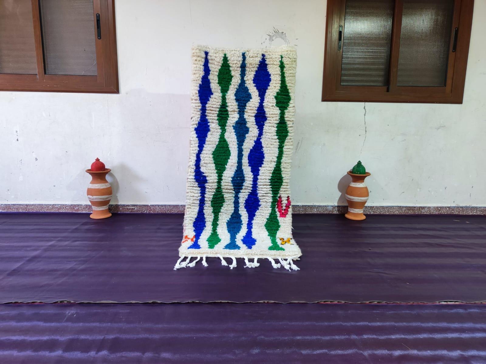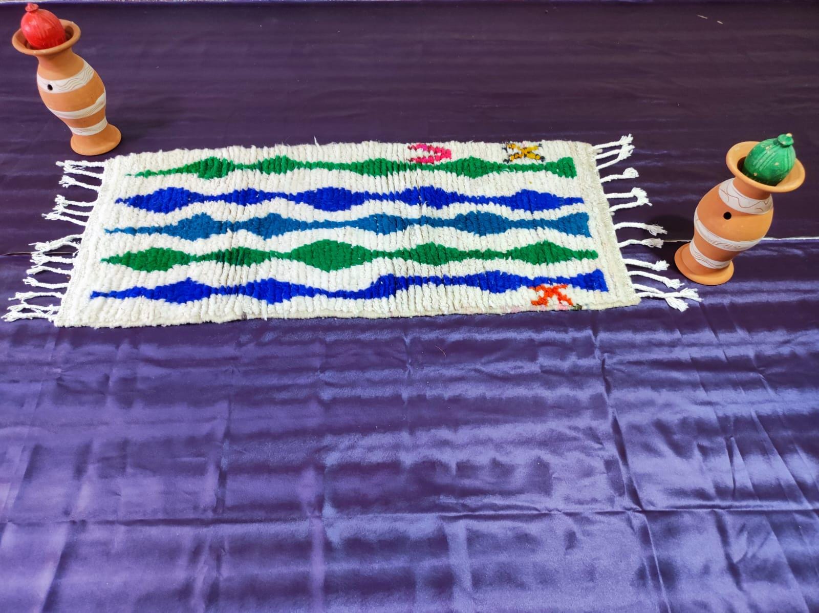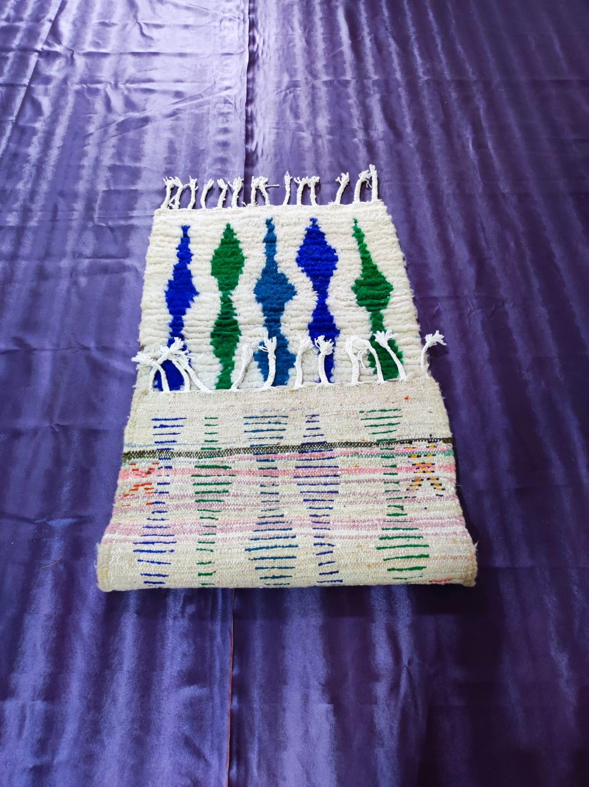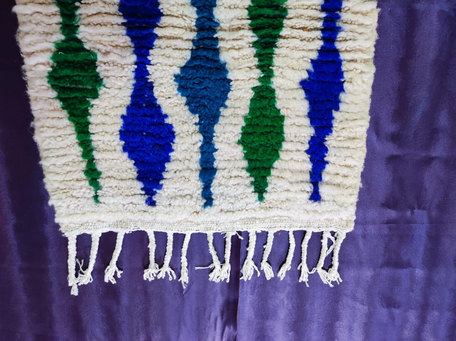 A Moroccan Berber Colorful rug is a traditional handwoven floor covering that originates from the indigenous Berber people of Morocco. These rugs are known for their intricate patterns and bold, geometric designs, which are created using a variety of natural dyes and High-quality Wool. Moroccan boujad rugs are versatile and can be used to add a touch of bohemian chic to any room, from a living room or bedroom to a home office or entryway. They are durable and easy to maintain, making them a practical choice for high-traffic areas. Whether you're looking to add a pop of color to your space or create a warm and welcoming atmosphere, a Moroccan Berber rug is a great choice.