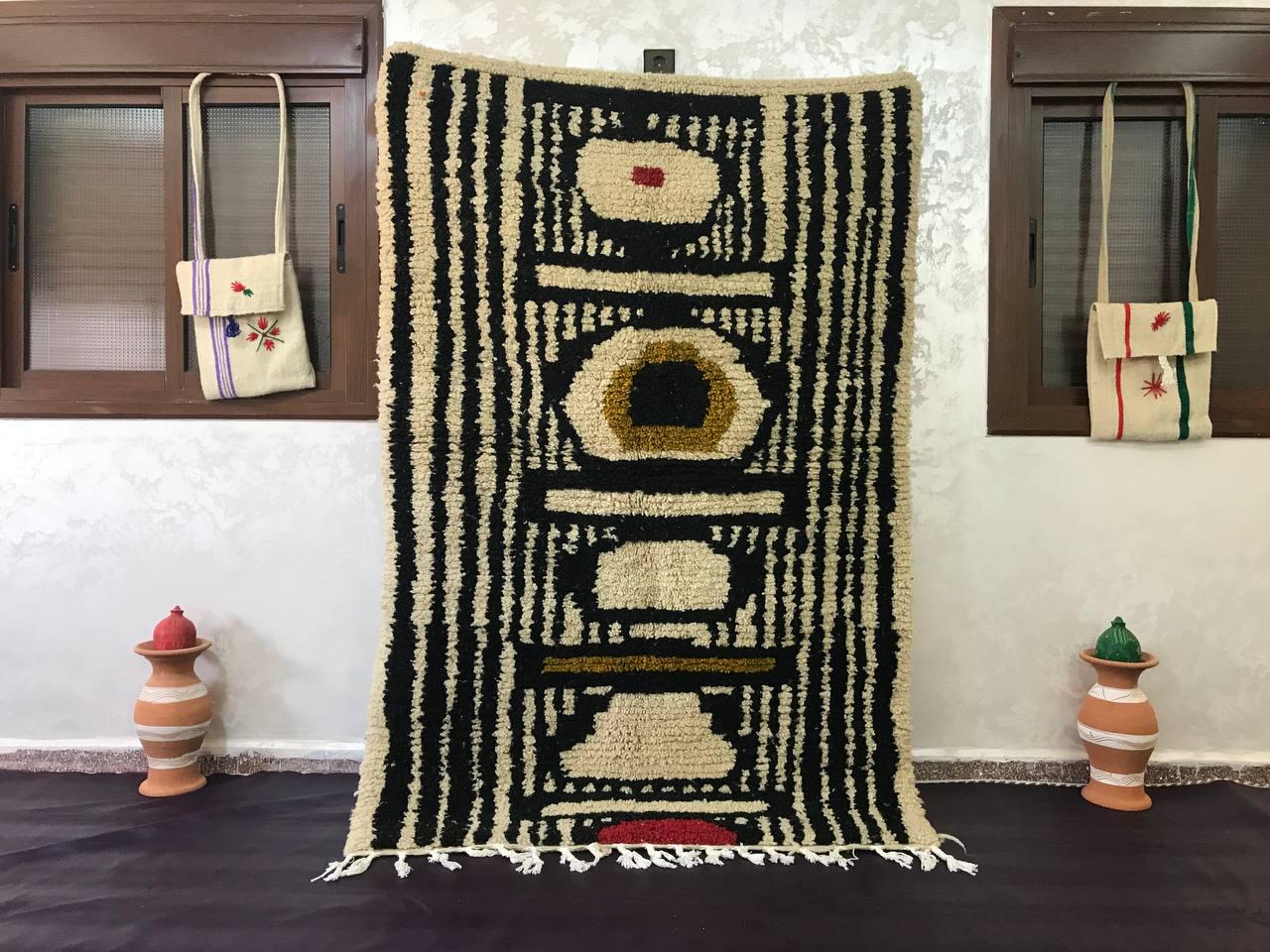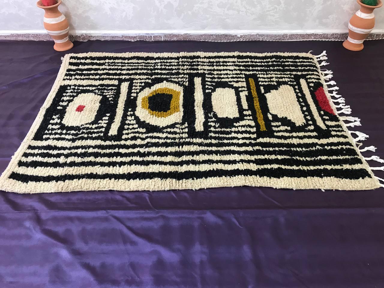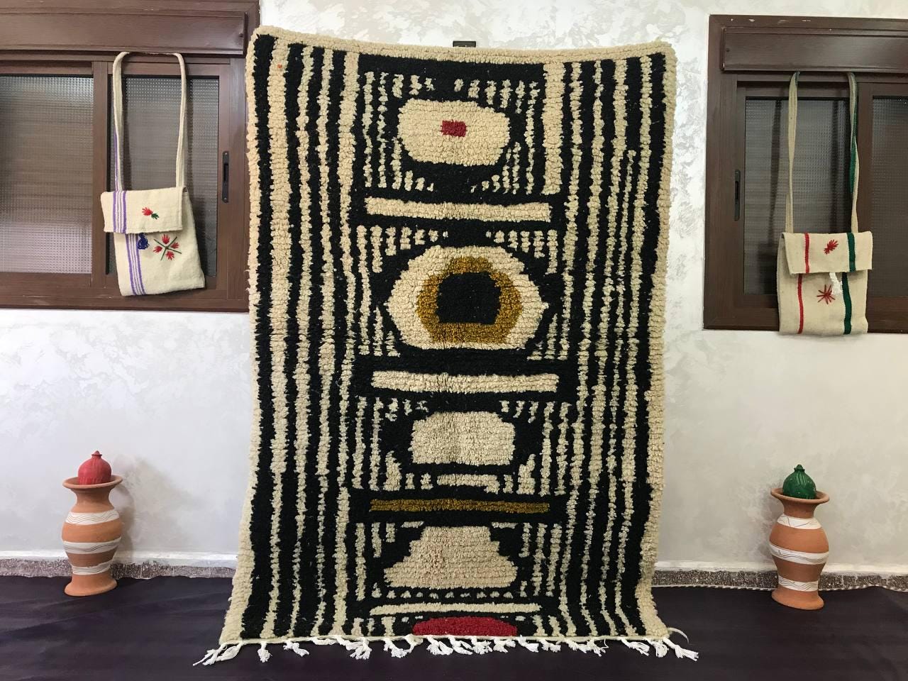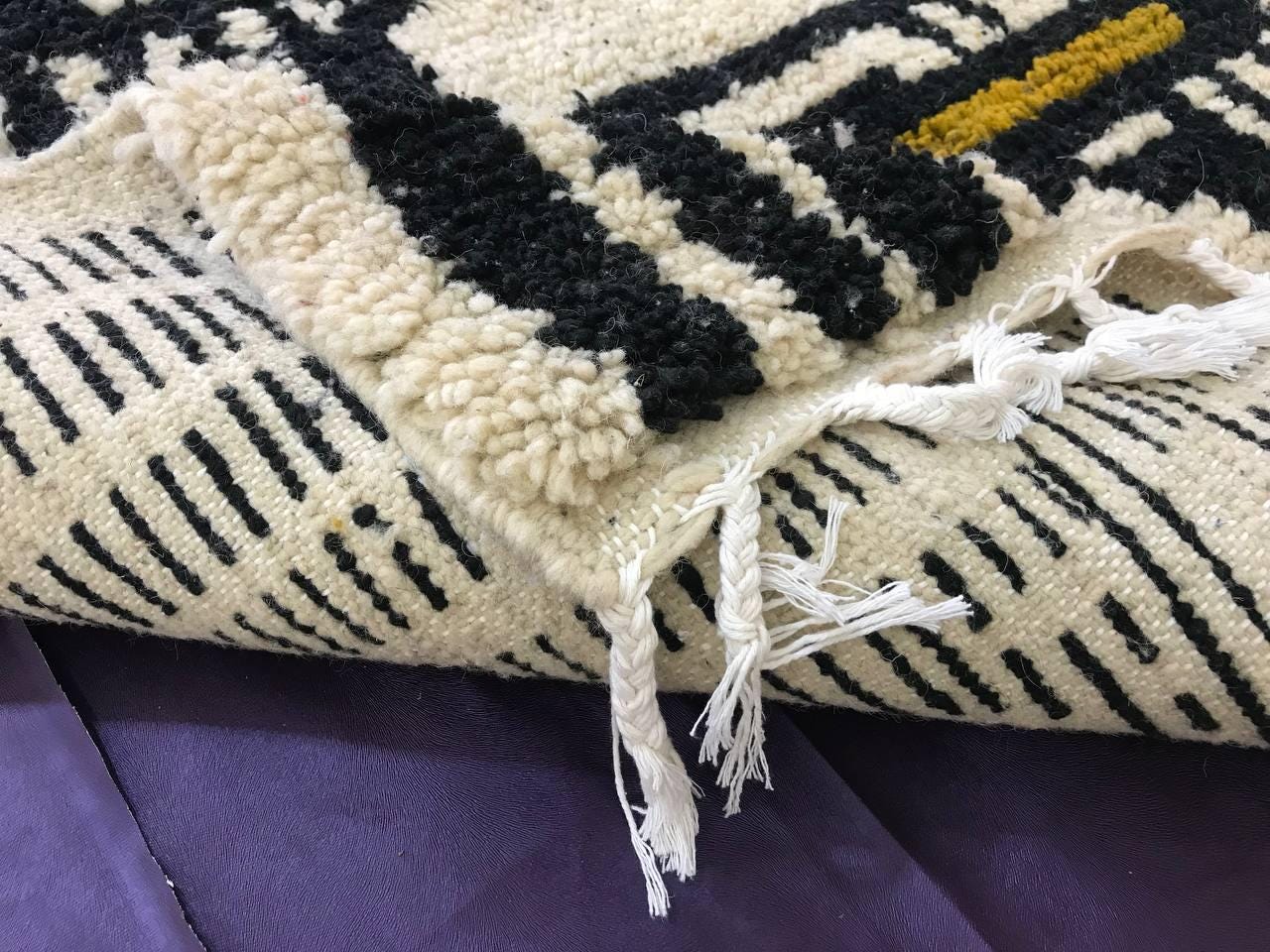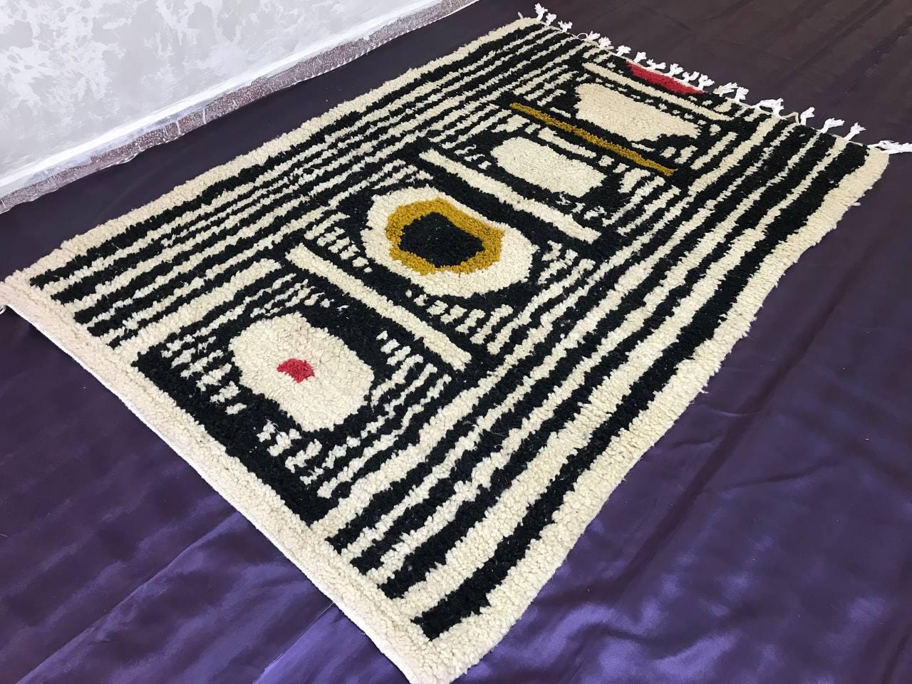 moroccan rug black and white hand knotted,black moroccan rug,moroccan wool rug 7x9 custom