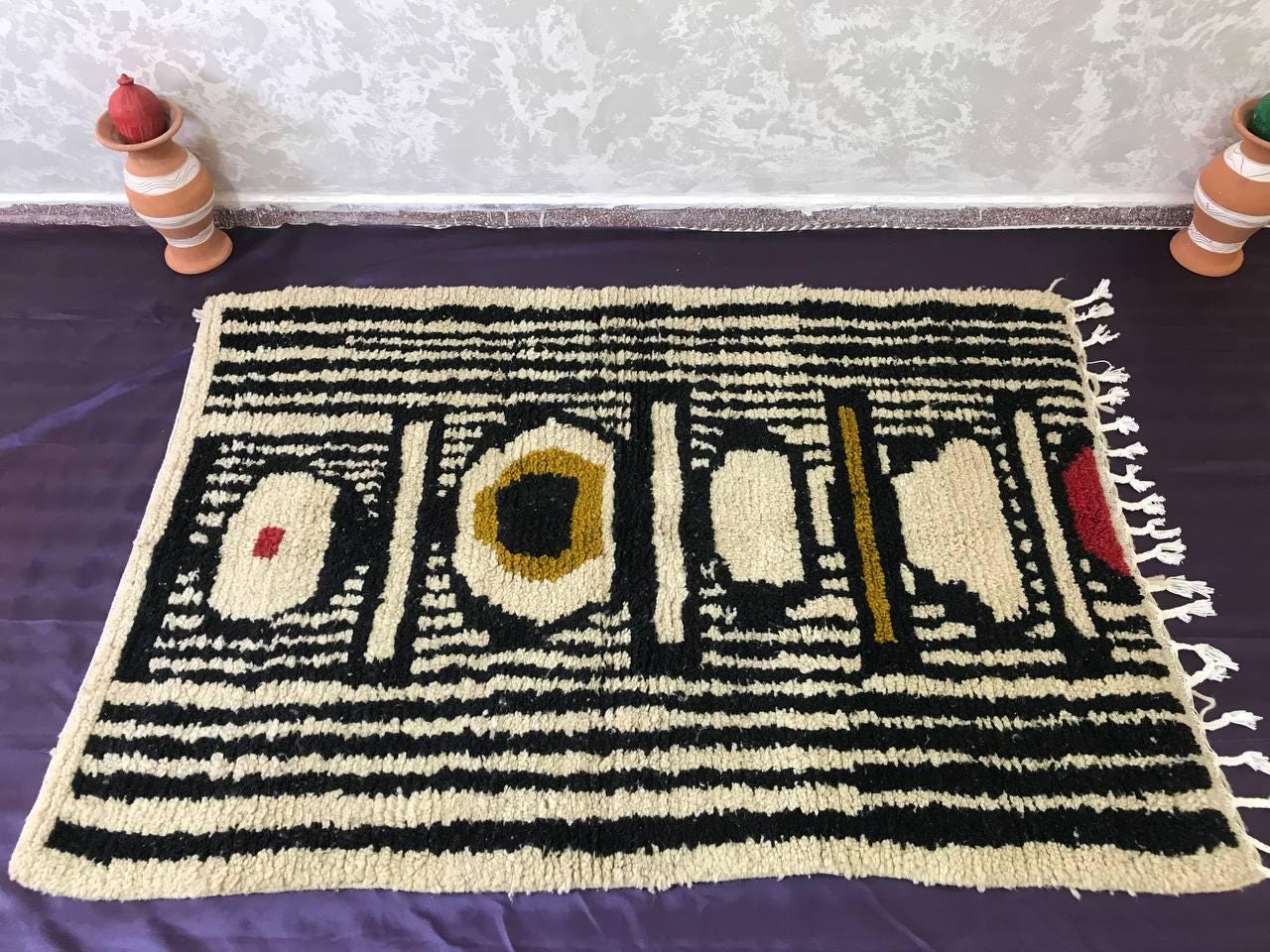 A Moroccan Berber Colorful rug is a traditional handwoven floor covering that originates from the indigenous Berber people of Morocco. These rugs are known for their intricate patterns and bold, geometric designs, which are created using a variety of natural dyes and High-quality Wool. Moroccan boujad rugs are versatile and can be used to add a touch of bohemian chic to any room, from a living room or bedroom to a home office or entryway. They are durable and easy to maintain, making them a practical choice for high-traffic areas. Whether you're looking to add a pop of color to your space or create a warm and welcoming atmosphere, a Moroccan Berber rug is a great choice. 📌 Shipping: insured, trackable, Fast, and FREE Worldwide by FedEx or DHL (2 to 5 days delivery). ❖ Cleaning: all rugs are carefully cleaned before shipping. ❖ Colors: Please take a look at the pictures. ❖ Texture: Moroccan / soft / Shag. ❖ Technique: Hand-Knotted ❖ Construction: Handmade ❖ Location: Indoor Use Only ❖ Material: Your order is made entirely by hand from natural wool, which means there will be natural (and beautiful) variations in pattern and color. Wool shrinks. ❖ Pattern: Because the product is handcrafted, the pattern and Colors may vary slightly from one piece to another. ❖ Size: While we try our best to ensure consistent sizing, it is possible for final sizes to vary by a few inches more or less. ❖ Tassels: One side is the Traditional way of making the rugs. 📌Ships tightly rolled in a protective bag. Any slight creasing will disappear within a few days. Shedding loose fibers is normal with new rugs. Shedding will diminish with regular vacuuming. If you have any questions or queries, please feel free to contact me via messages.