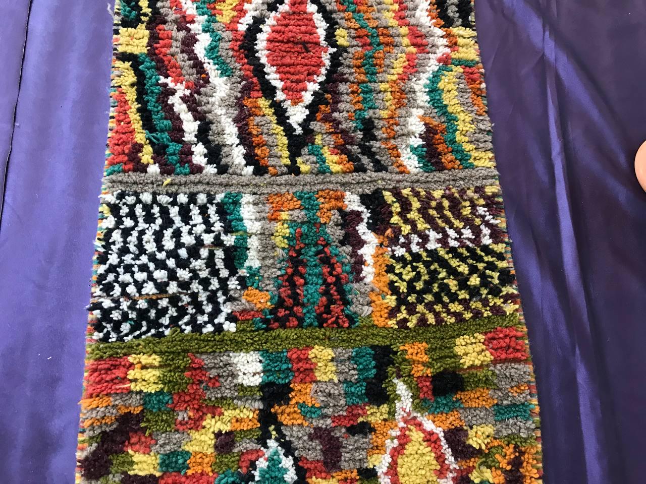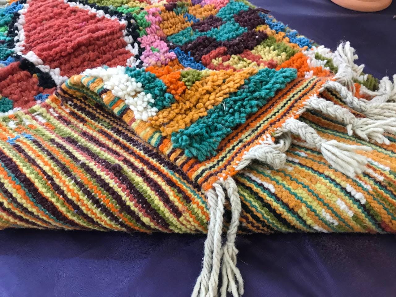 A Moroccan Berber Colorful rug is a traditional handwoven floor covering that originates from the indigenous Berber people of Morocco. These rugs are known for their intricate patterns and bold, geometric designs, which are created using a variety of natural dyes and High-quality Wool. Moroccan boujad rugs are versatile and can be used to add a touch of bohemian chic to any room, from a living room or bedroom to a home office or entryway. They are durable and easy to maintain, making them a practical choice for high-traffic areas. Whether you're looking to add a pop of color to your space or create a warm and welcoming atmosphere, a Moroccan Berber rug is a great choice.