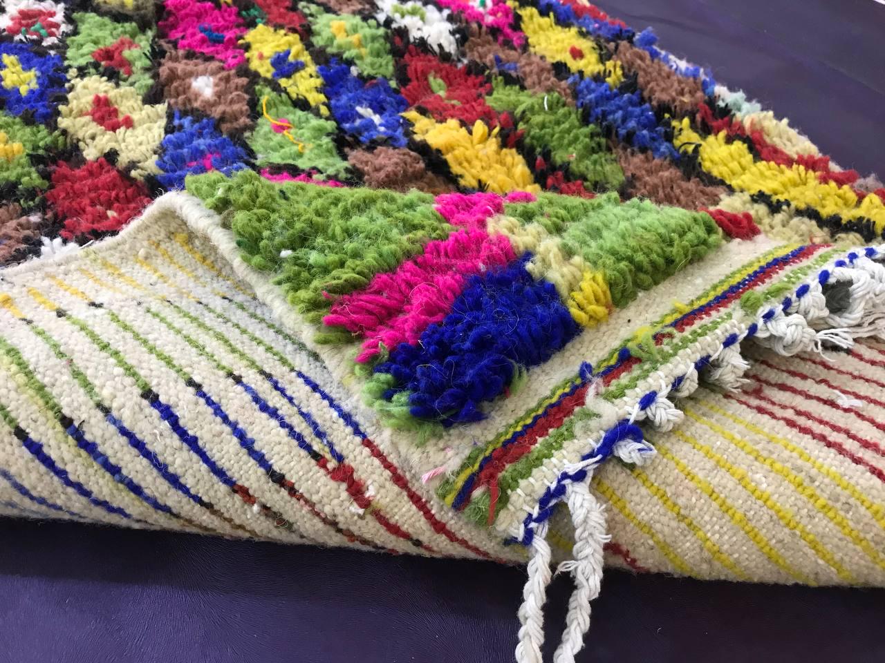 A Moroccan Berber Colorful rug is a traditional handwoven floor covering that originates from the indigenous Berber people of Morocco. These rugs are known for their intricate patterns and bold, geometric designs, which are created using a variety of natural dyes and High-quality Wool. Moroccan boujad rugs are versatile and can be used to add a touch of bohemian chic to any room, from a living room or bedroom to a home office or entryway. They are durable and easy to maintain, making them a practical choice for high-traffic areas. Whether you're looking to add a pop of color to your space or create a warm and welcoming atmosphere, a Moroccan Berber rug is a great choice. 📌 Shipping: insured, trackable, Fast, and FREE Worldwide by FedEx or DHL (2 to 5 days delivery). ❖ Cleaning: all rugs are carefully cleaned before shipping. ❖ Colors: Please take a look at the pictures. ❖ Texture: Moroccan / soft / Shag. ❖ Technique: Hand-Knotted ❖ Construction: Handmade ❖ Location: Indoor Use Only ❖ Material: Your order is made entirely by hand from natural wool, which means there will be natural (and beautiful) variations in pattern and color. Wool shrinks. ❖ Pattern: Because the product is handcrafted, the pattern and Colors may vary slightly from one piece to another. ❖ Size: While we try our best to ensure consistent sizing, it is possible for final sizes to vary by a few inches more or less. ❖ Tassels: One side is the Traditional way of making the rugs. 📌Ships tightly rolled in a protective bag. Any slight creasing will disappear within a few days. Shedding loose fibers is normal with new rugs. Shedding will diminish with regular vacuuming. If you have any questions or queries, please feel free to contact me via messages.