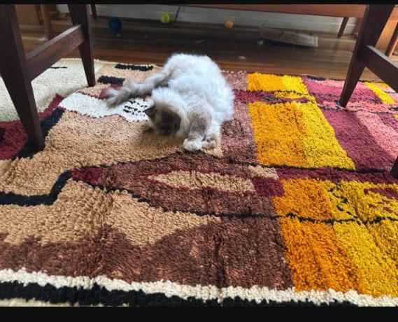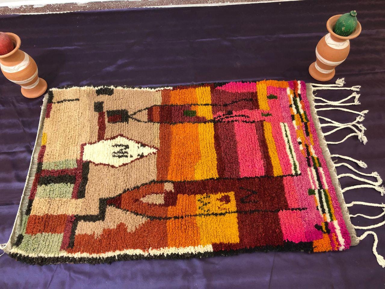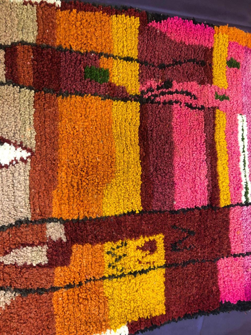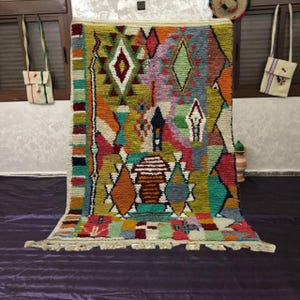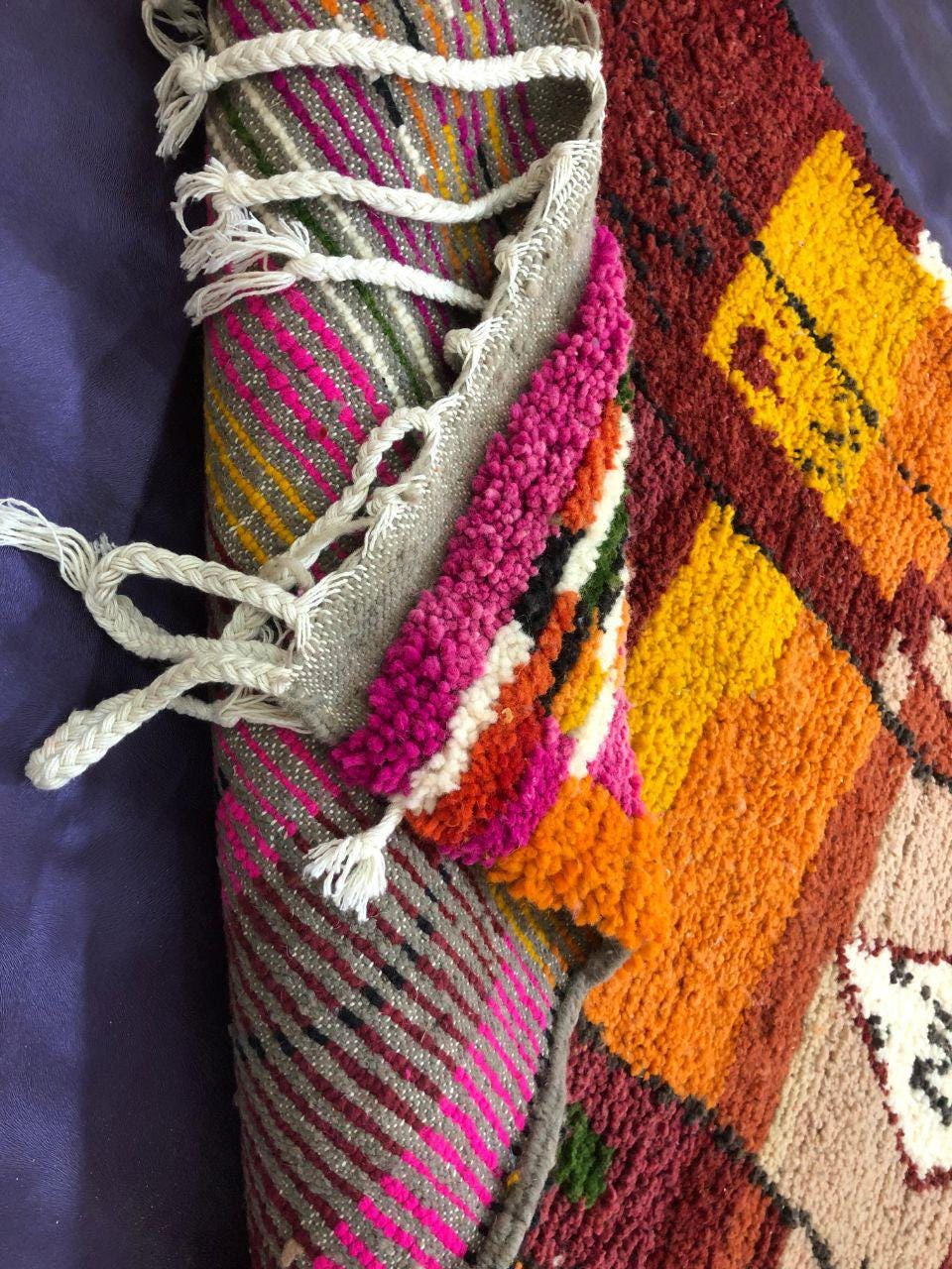 A Moroccan Berber Colorful rug is a traditional handwoven floor covering that originates from the indigenous Berber people of Morocco. These rugs are known for their intricate patterns and bold, geometric designs, which are created using a variety of natural dyes and High-quality Wool. Moroccan boujad rugs are versatile and can be used to add a touch of bohemian chic to any room, from a living room or bedroom to a home office or entryway. They are durable and easy to maintain, making them a practical choice for high-traffic areas. Whether you're looking to add a pop of color to your space or create a warm and welcoming atmosphere, a Moroccan Berber rug is a great choice. 📌 Shipping: insured, trackable, Fast, and FREE Worldwide by FedEx or DHL (2 to 5 days delivery). ❖ Cleaning: all rugs are carefully cleaned before shipping. ❖ Colors: Please take a look at the pictures. ❖ Texture: Moroccan / soft / Shag. ❖ Technique: Hand-Knotted ❖ Construction: Handmade ❖ Location: Indoor Use Only ❖ Material: Your order is made entirely by hand from natural wool, which means there will be natural (and beautiful) variations in pattern and color. Wool shrinks. ❖ Pattern: Because the product is handcrafted, the pattern and Colors may vary slightly from one piece to another. ❖ Size: While we try our best to ensure consistent sizing, it is possible for final sizes to vary by a few inches more or less. ❖ Tassels: One side is the Traditional way of making the rugs. 📌Ships tightly rolled in a protective bag. Any slight creasing will disappear within a few days. Shedding loose fibers is normal with new rugs. Shedding will diminish with regular vacuuming. If you have any questions or queries, please feel free to contact me via messages.