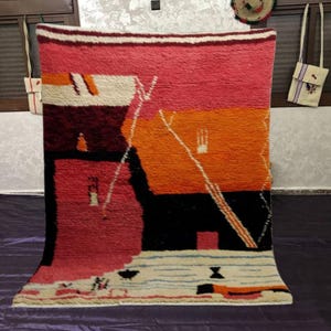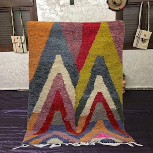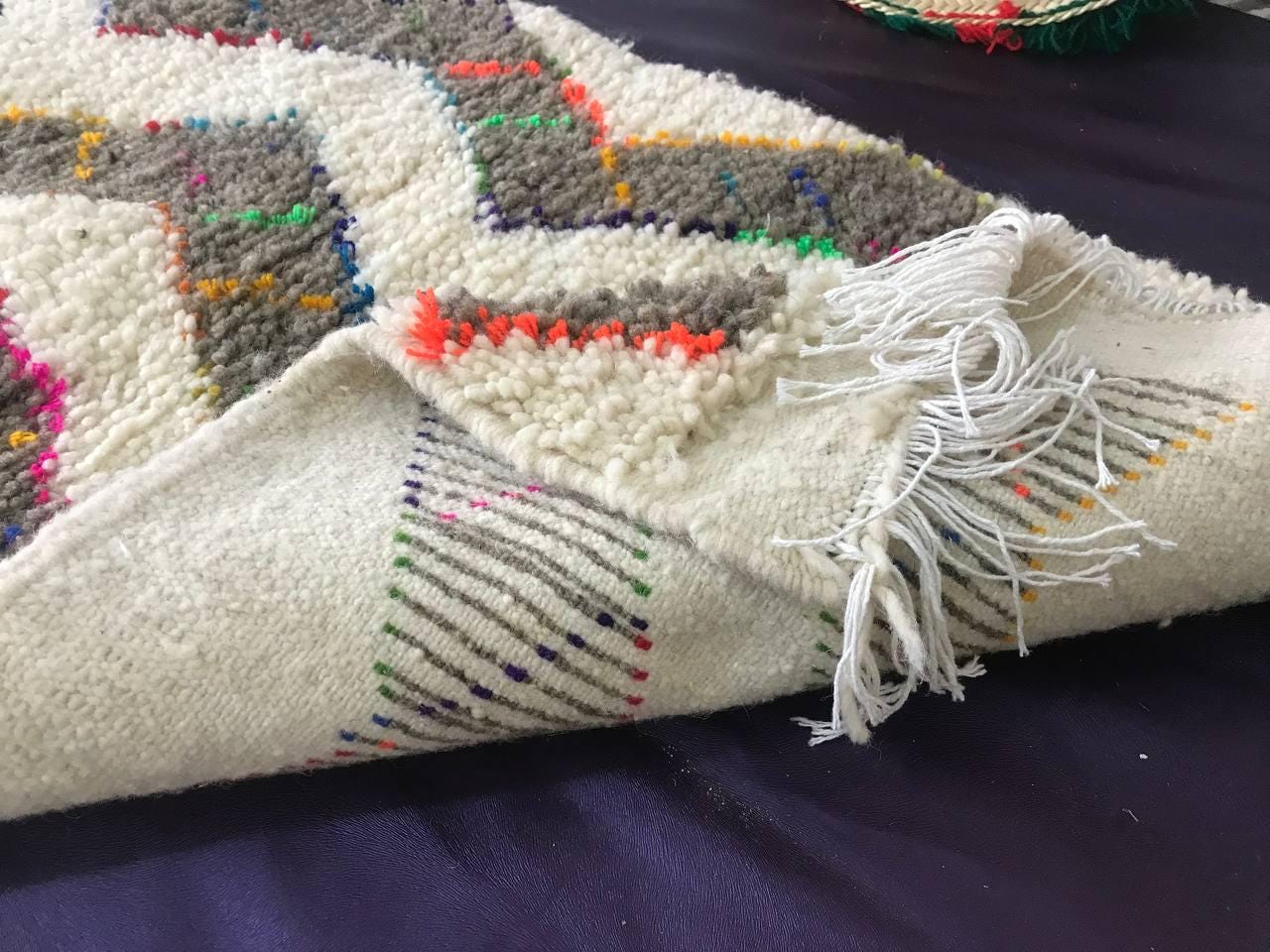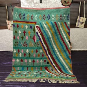 A Moroccan Berber Colorful rug is a traditional handwoven floor covering that originates from the indigenous Berber people of Morocco. These rugs are known for their intricate patterns and bold, geometric designs, which are created using a variety of natural dyes and High-quality Wool. Moroccan boujad rugs are versatile and can be used to add a touch of bohemian chic to any room, from a living room or bedroom to a home office or entryway. They are durable and easy to maintain, making them a practical choice for high-traffic areas. Whether you're looking to add a pop of color to your space or create a warm and welcoming atmosphere, a Moroccan Berber rug is a great choice. 📌 Shipping: insured, trackable, Fast, and FREE Worldwide by FedEx or DHL (2 to 5 days delivery). ❖ Cleaning: all rugs are carefully cleaned before shipping. ❖ Colors: Please take a look at the pictures. ❖ Texture: Moroccan / soft / Shag. ❖ Technique: Hand-Knotted ❖ Construction: Handmade ❖ Location: Indoor Use Only ❖ Material: Your order is made entirely by hand from natural wool, which means there will be natural (and beautiful) variations in pattern and color. Wool shrinks. ❖ Pattern: Because the product is handcrafted, the pattern and Colors may vary slightly from one piece to another. ❖ Size: While we try our best to ensure consistent sizing, it is possible for final sizes to vary by a few inches more or less. ❖ Tassels: One side is the Traditional way of making the rugs. 📌Ships tightly rolled in a protective bag. Any slight creasing will disappear within a few days. Shedding loose fibers is normal with new rugs. Shedding will diminish with regular vacuuming. If you have any questions or queries, please feel free to contact me via messages.