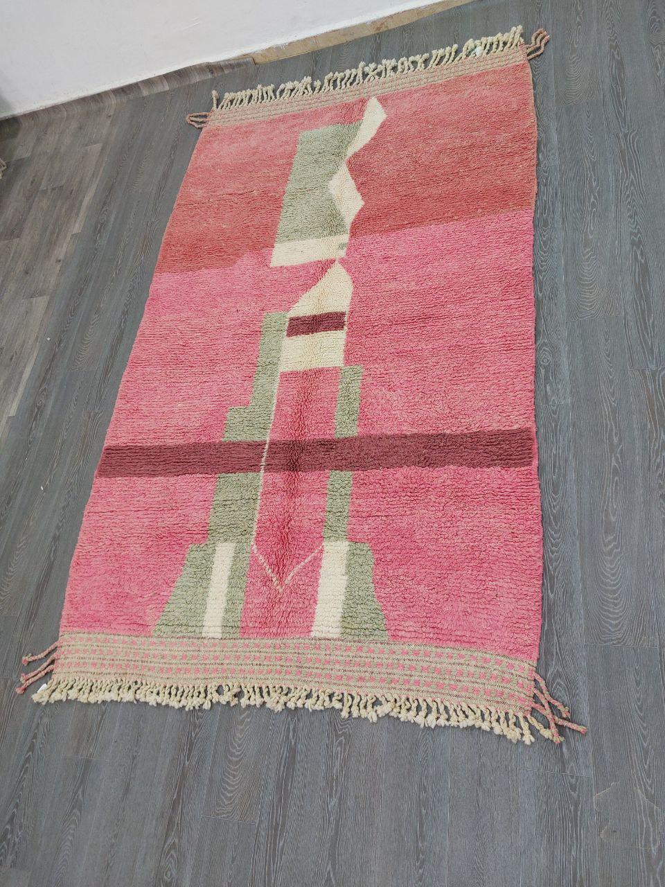 custom moroccan rug pink contemporary berber ,moroccan rug handcrafted for living room,moroccan rug gorgeous pink knotted wool area