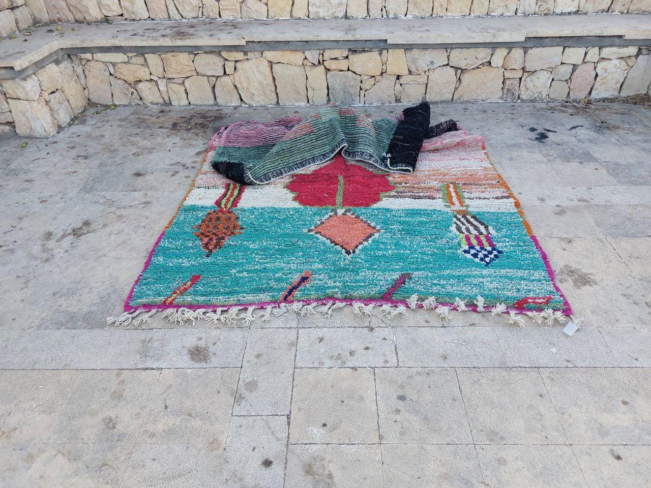 A Moroccan Berber Colorful rug is a traditional handwoven floor covering that originates from the indigenous Berber people of Morocco. These rugs are known for their intricate patterns and bold, geometric designs, which are created using a variety of natural dyes and High-quality Wool. Moroccan boujad rugs are versatile and can be used to add a touch of bohemian chic to any room, from a living room or bedroom to a home office or entryway. They are durable and easy to maintain, making them a practical choice for high-traffic areas. Whether you're looking to add a pop of color to your space or create a warm and welcoming atmosphere, a Moroccan Berber rug is a great choice. 📌 Shipping: insured, trackable, Fast, and FREE Worldwide by FedEx or DHL (2 to 5 days delivery). ❖ Cleaning: all rugs are carefully cleaned before shipping. ❖ Colors: Please take a look at the pictures. ❖ Texture: Moroccan / soft / Shag. ❖ Technique: Hand-Knotted ❖ Construction: Handmade ❖ Location: Indoor Use Only ❖ Material: Your order is made entirely by hand from natural wool, which means there will be natural (and beautiful) variations in pattern and color. Wool shrinks. ❖ Pattern: Because the product is handcrafted, the pattern and Colors may vary slightly from one piece to another. ❖ Size: While we try our best to ensure consistent sizing, it is possible for final sizes to vary by a few inches more or less. ❖ Tassels: One side is the Traditional way of making the rugs. 📌Ships tightly rolled in a protective bag. Any slight creasing will disappear within a few days. Shedding loose fibers is normal with new rugs. Shedding will diminish with regular vacuuming. If you have any questions or queries, please feel free to contact me via messages.