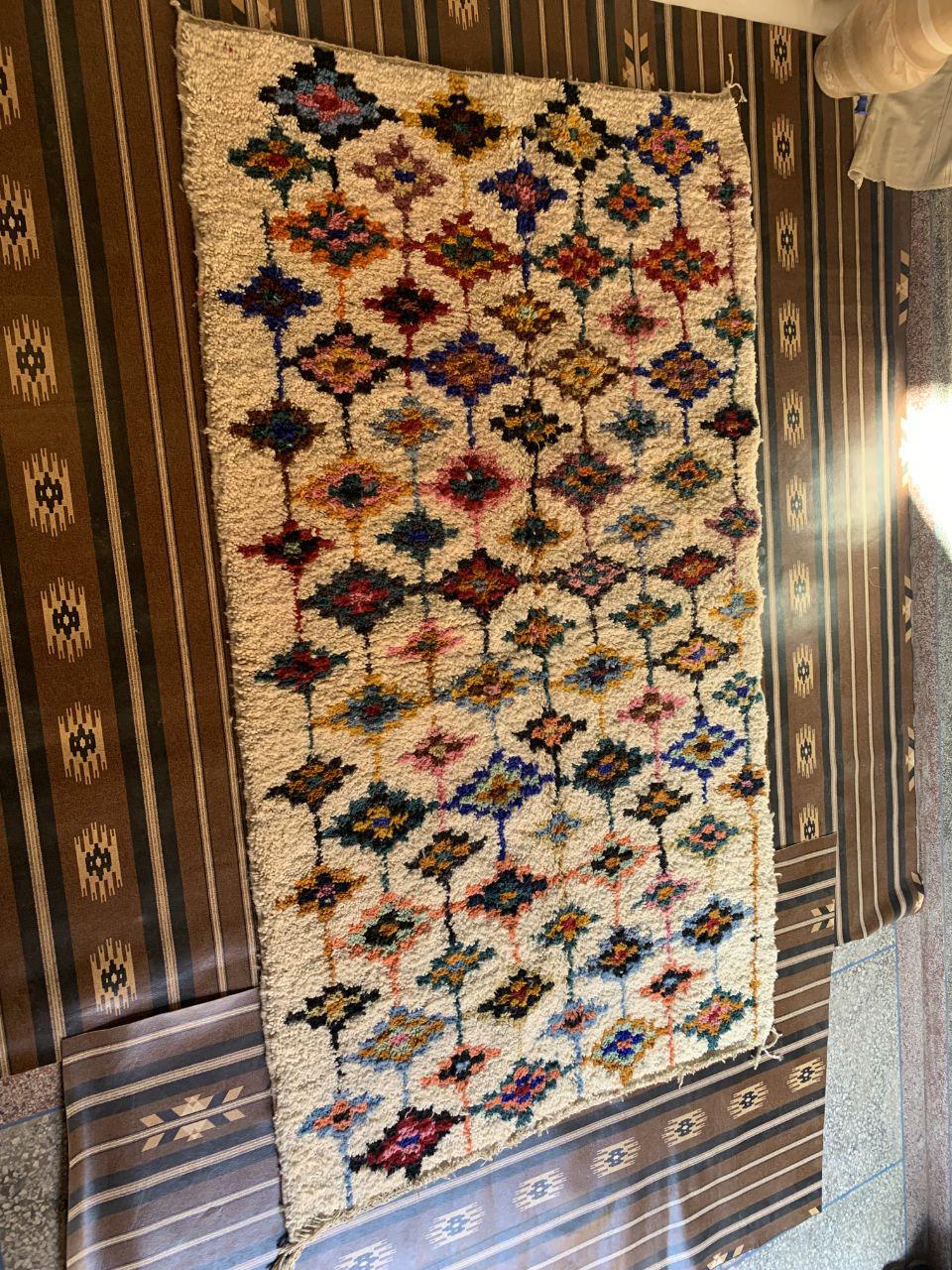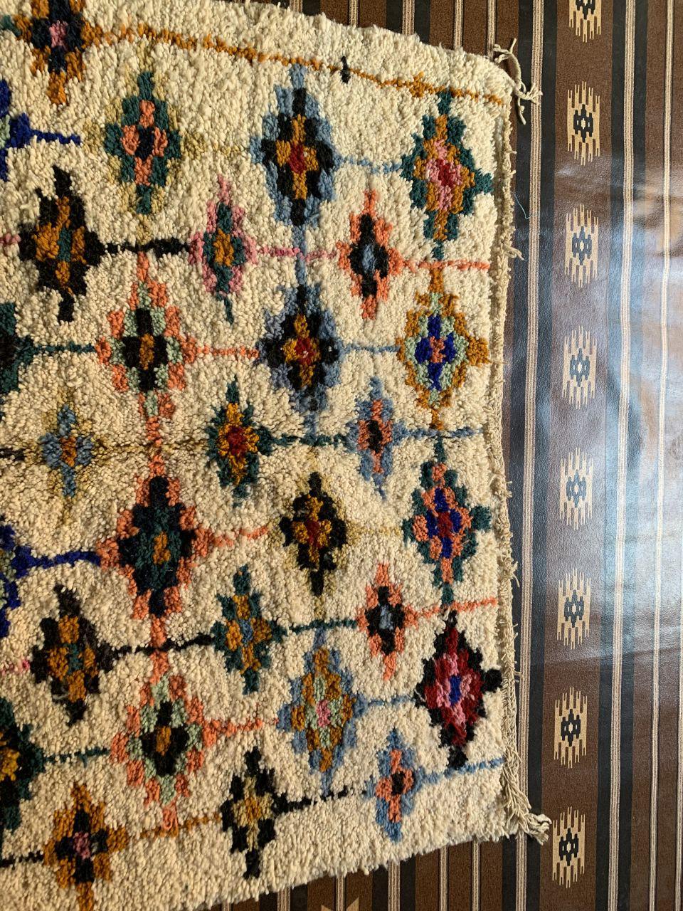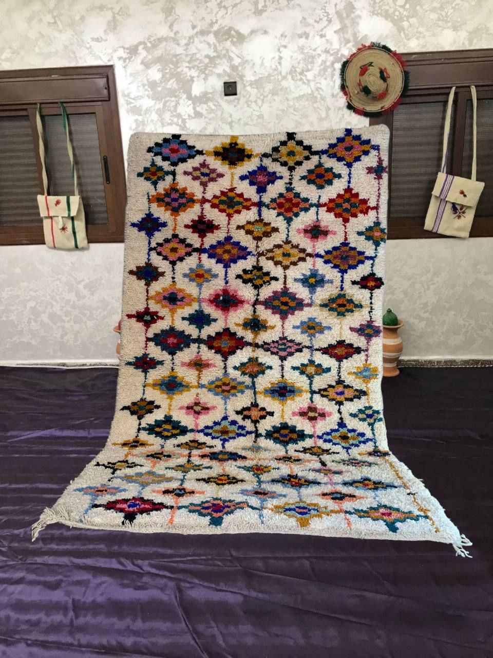 A Moroccan Berber Colorful rug is a traditional handwoven floor covering that originates from the indigenous Berber people of Morocco. These rugs are known for their intricate patterns and bold, geometric designs, which are created using a variety of natural dyes and High-quality Wool. Moroccan boujad rugs are versatile and can be used to add a touch of bohemian chic to any room, from a living room or bedroom to a home office or entryway. They are durable and easy to maintain, making them a practical choice for high-traffic areas. Whether you're looking to add a pop of color to your space or create a warm and welcoming atmosphere, a Moroccan Berber rug is a great choice.