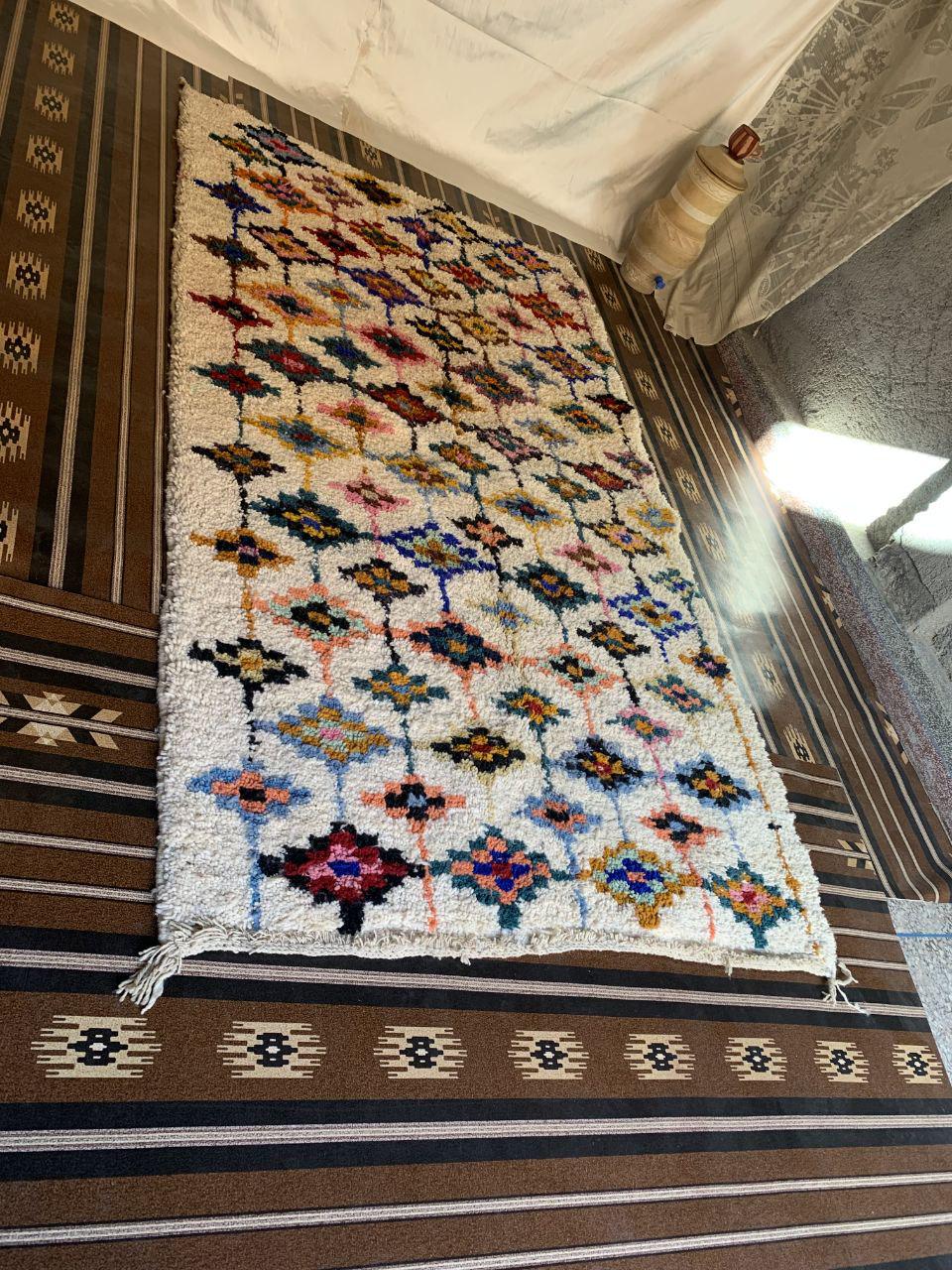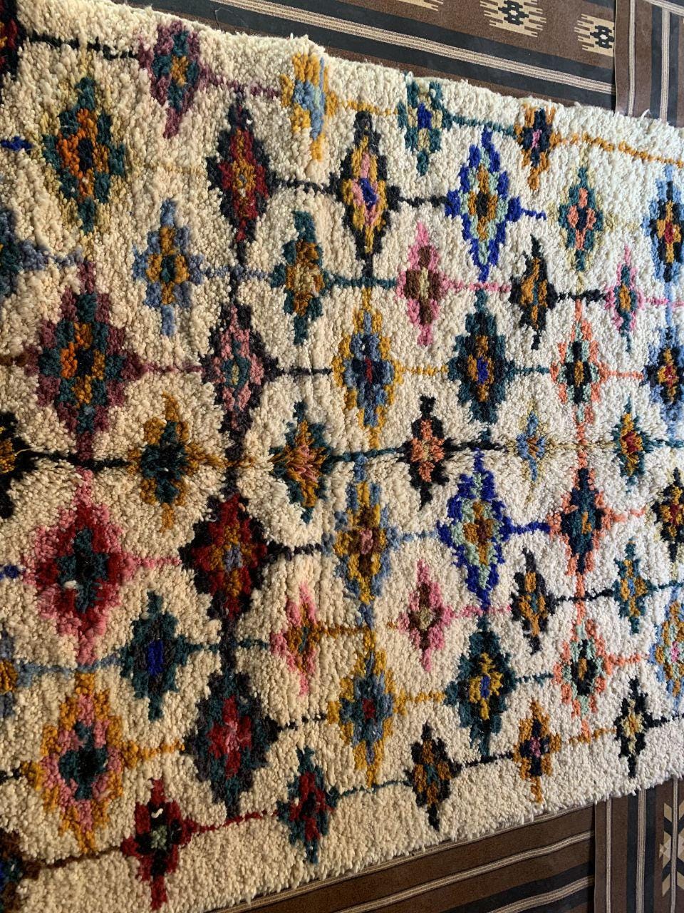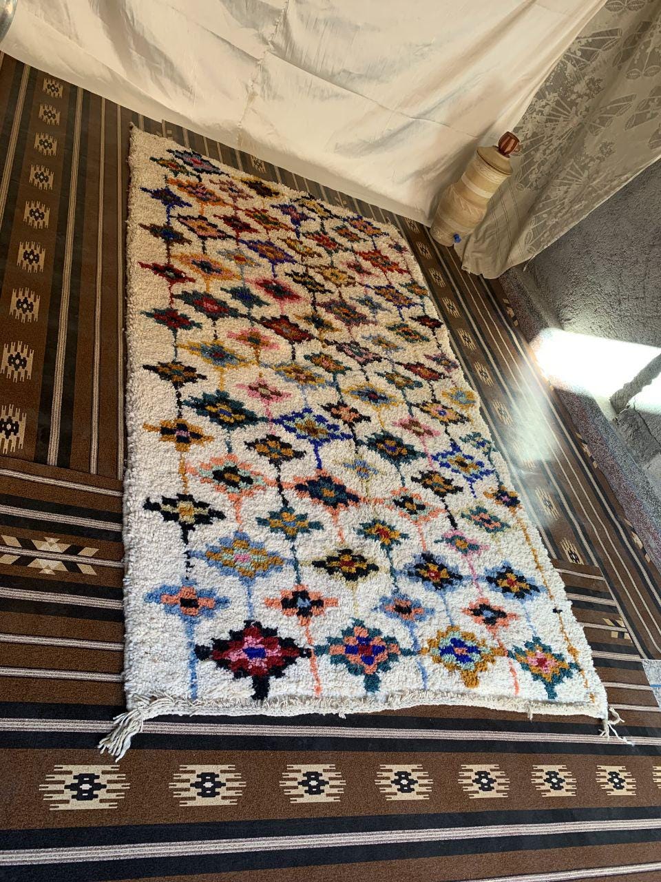 A Moroccan Berber Colorful rug is a traditional handwoven floor covering that originates from the indigenous Berber people of Morocco. These rugs are known for their intricate patterns and bold, geometric designs, which are created using a variety of natural dyes and High-quality Wool. Moroccan boujad rugs are versatile and can be used to add a touch of bohemian chic to any room, from a living room or bedroom to a home office or entryway. They are durable and easy to maintain, making them a practical choice for high-traffic areas. Whether you're looking to add a pop of color to your space or create a warm and welcoming atmosphere, a Moroccan Berber rug is a great choice.