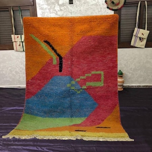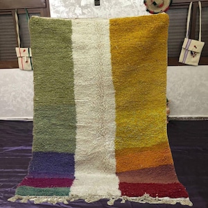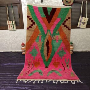 A Moroccan Berber Colorful rug is a traditional handwoven floor covering that originates from the indigenous Berber people of Morocco. These rugs are known for their intricate patterns and bold, geometric designs, which are created using a variety of natural dyes and High-quality Wool. Moroccan boujad rugs are versatile and can be used to add a touch of bohemian chic to any room, from a living room or bedroom to a home office or entryway. They are durable and easy to maintain, making them a practical choice for high-traffic areas. Whether you're looking to add a pop of color to your space or create a warm and welcoming atmosphere, a Moroccan Berber rug is a great choice.