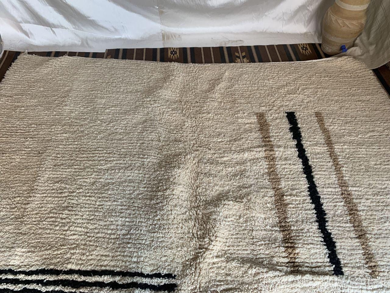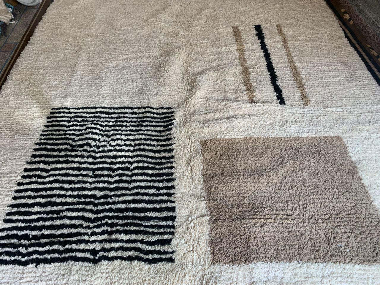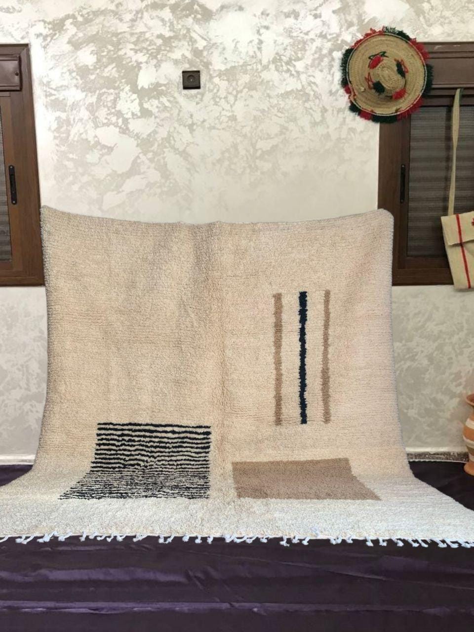 A Moroccan Berber Colorful rug is a traditional handwoven floor covering that originates from the indigenous Berber people of Morocco. These rugs are known for their intricate patterns and bold, geometric designs, which are created using a variety of natural dyes and High-quality Wool. Moroccan boujad rugs are versatile and can be used to add a touch of bohemian chic to any room, from a living room or bedroom to a home office or entryway. They are durable and easy to maintain, making them a practical choice for high-traffic areas. Whether you're looking to add a pop of color to your space or create a warm and welcoming atmosphere, a Moroccan Berber rug is a great choice. 📌 Shipping: insured, trackable, Fast, and FREE Worldwide by FedEx or DHL (2 to 5 days delivery). ❖ Cleaning: all rugs are carefully cleaned before shipping. ❖ Colors: Please take a look at the pictures. ❖ Texture: Moroccan / soft / Shag. ❖ Technique: Hand-Knotted ❖ Construction: Handmade ❖ Location: Indoor Use Only ❖ Material: Your order is made entirely by hand from natural wool, which means there will be natural (and beautiful) variations in pattern and color. Wool shrinks. ❖ Pattern: Because the product is handcrafted, the pattern and Colors may vary slightly from one piece to another. ❖ Size: While we try our best to ensure consistent sizing, it is possible for final sizes to vary by a few inches more or less. ❖ Tassels: One side is the Traditional way of making the rugs. 📌Ships tightly rolled in a protective bag. Any slight creasing will disappear within a few days. Shedding loose fibers is normal with new rugs. Shedding will diminish with regular vacuuming. If you have any questions or queries, please feel free to contact me via messages.