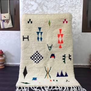 A Moroccan Berber Colorful rug is a traditional handwoven floor covering that originates from the indigenous Berber people of Morocco. These rugs are known for their intricate patterns and bold, geometric designs, which are created using a variety of natural dyes and High-quality Wool. Moroccan boujad rugs are versatile and can be used to add a touch of bohemian chic to any room, from a living room or bedroom to a home office or entryway. They are durable and easy to maintain, making them a practical choice for high-traffic areas. Whether you're looking to add a pop of color to your space or create a warm and welcoming atmosphere, a Moroccan Berber rug is a great choice. 📌 Shipping: insured, trackable, Fast, and FREE Worldwide by FedEx or DHL (2 to 5 days delivery). ❖ Cleaning: all rugs are carefully cleaned before shipping. ❖ Colors: Please take a look at the pictures. ❖ Texture: Moroccan / soft / Shag. ❖ Technique: Hand-Knotted ❖ Construction: Handmade ❖ Location: Indoor Use Only ❖ Material: Your order is made entirely by hand from natural wool, which means there will be natural (and beautiful) variations in pattern and color. Wool shrinks. ❖ Pattern: Because the product is handcrafted, the pattern and Colors may vary slightly from one piece to another. ❖ Size: While we try our best to ensure consistent sizing, it is possible for final sizes to vary by a few inches more or less. ❖ Tassels: One side is the Traditional way of making the rugs. 📌Ships tightly rolled in a protective bag. Any slight creasing will disappear within a few days. Shedding loose fibers is normal with new rugs. Shedding will diminish with regular vacuuming. If you have any questions or queries, please feel free to contact me via messages.