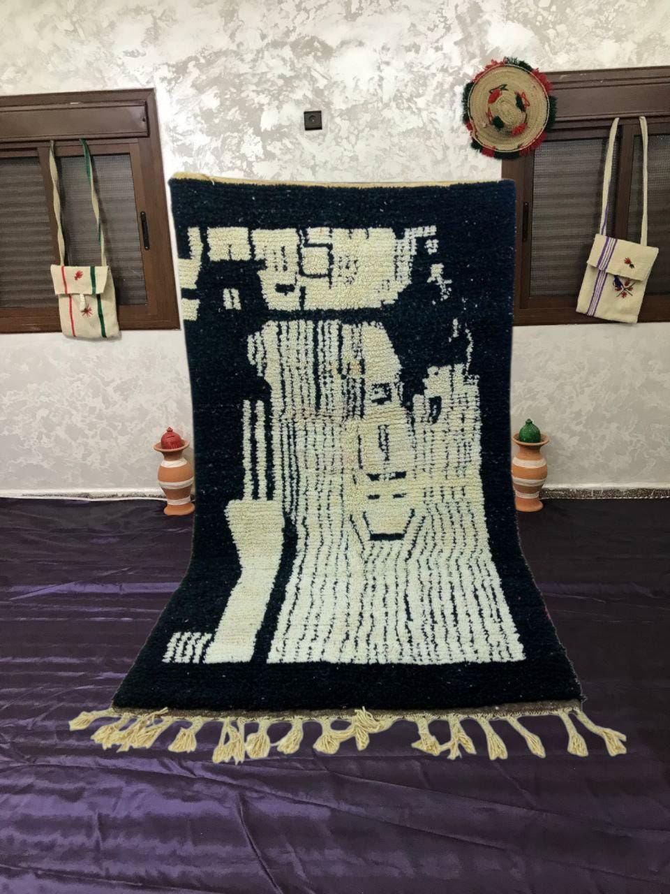 authentic beni ourain moroccan rug black and white , black/white handmad moroccan wool rug , black/white handmad moroccan wool rug