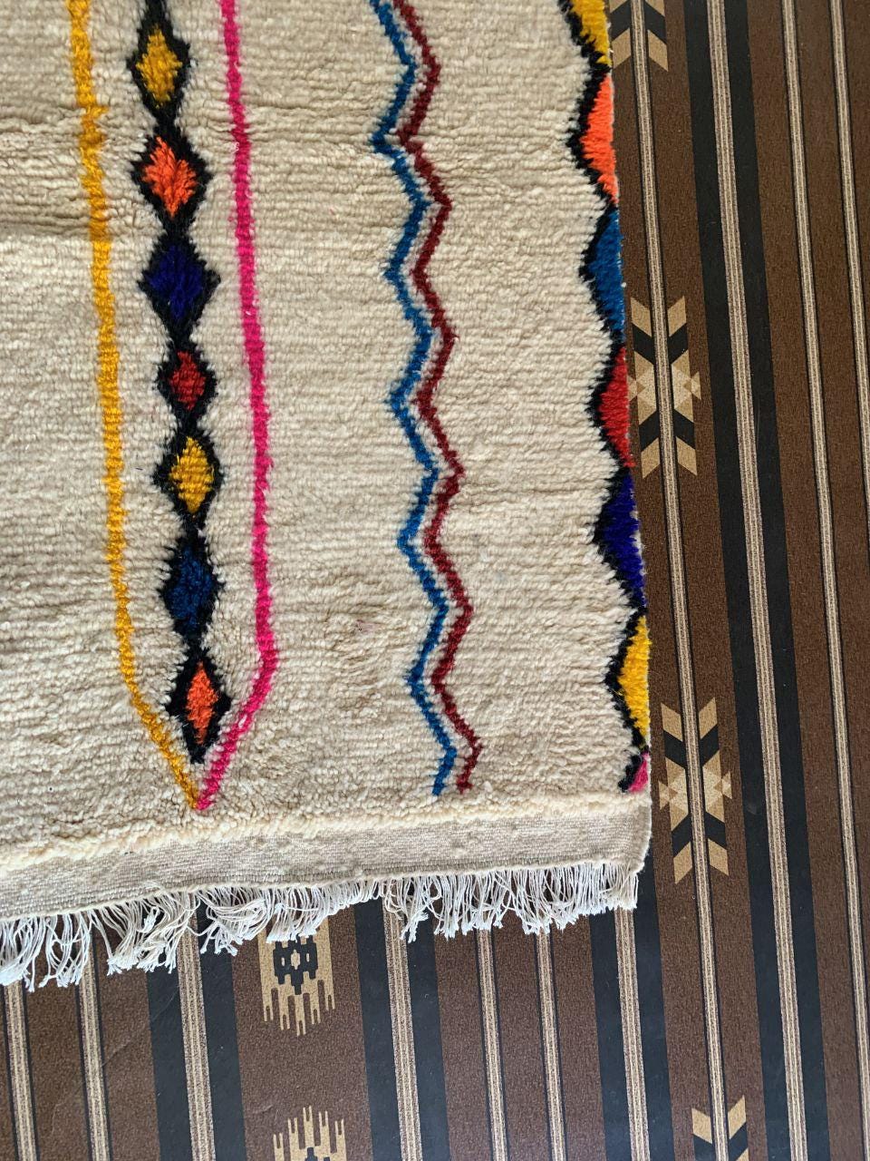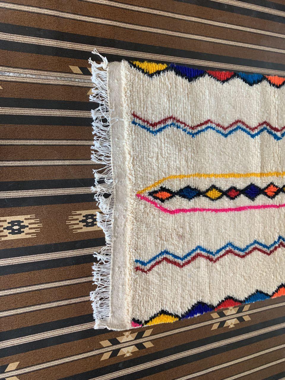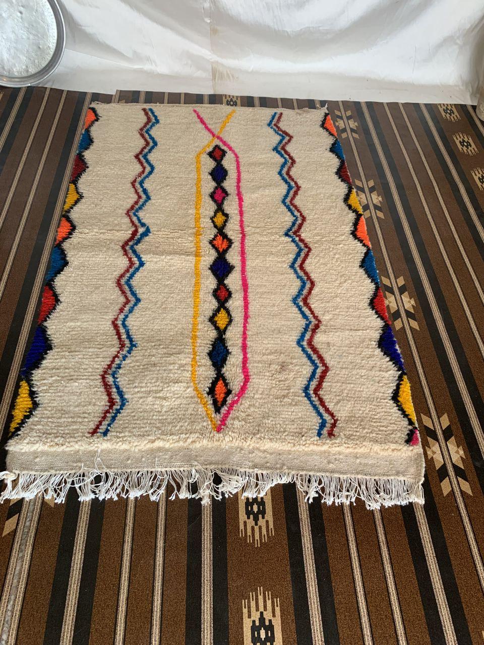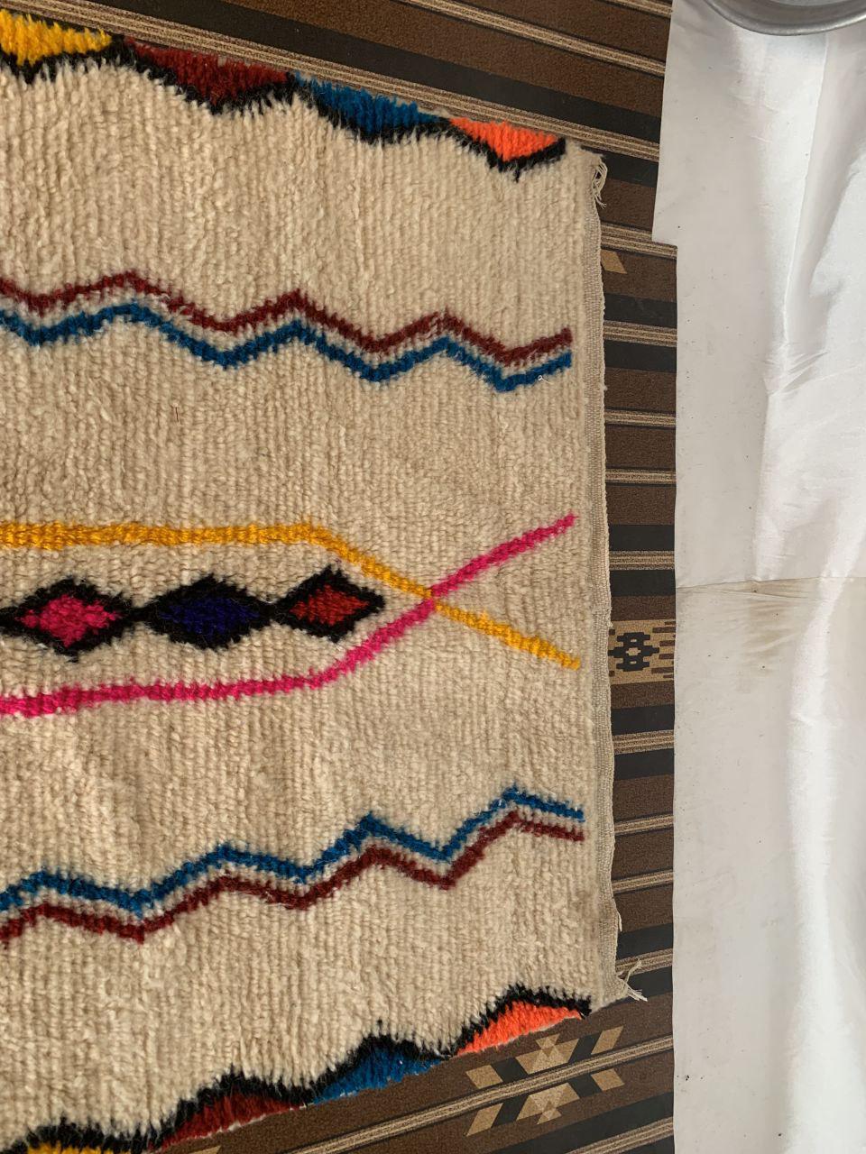 A Moroccan Berber Colorful rug is a traditional handwoven floor covering that originates from the indigenous Berber people of Morocco. These rugs are known for their intricate patterns and bold, geometric designs, which are created using a variety of natural dyes and High-quality Wool. Moroccan boujad rugs are versatile and can be used to add a touch of bohemian chic to any room, from a living room or bedroom to a home office or entryway. They are durable and easy to maintain, making them a practical choice for high-traffic areas. Whether you're looking to add a pop of color to your space or create a warm and welcoming atmosphere, a Moroccan Berber rug is a great choice. 📌 Shipping: insured, trackable, Fast, and FREE Worldwide by FedEx or DHL (2 to 5 days delivery). ❖ Cleaning: all rugs are carefully cleaned before shipping. ❖ Colors: Please take a look at the pictures. ❖ Texture: Moroccan / soft / Shag. ❖ Technique: Hand-Knotted ❖ Construction: Handmade ❖ Location: Indoor Use Only ❖ Material: Your order is made entirely by hand from natural wool, which means there will be natural (and beautiful) variations in pattern and color. Wool shrinks. ❖ Pattern: Because the product is handcrafted, the pattern and Colors may vary slightly from one piece to another. ❖ Size: While we try our best to ensure consistent sizing, it is possible for final sizes to vary by a few inches more or less. ❖ Tassels: One side is the Traditional way of making the rugs. 📌Ships tightly rolled in a protective bag. Any slight creasing will disappear within a few days. Shedding loose fibers is normal with new rugs. Shedding will diminish with regular vacuuming. If you have any questions or queries, please feel free to contact me via messages.