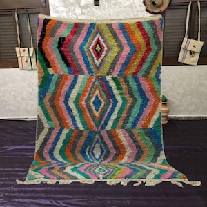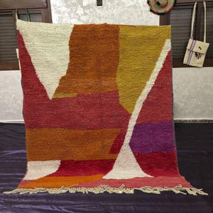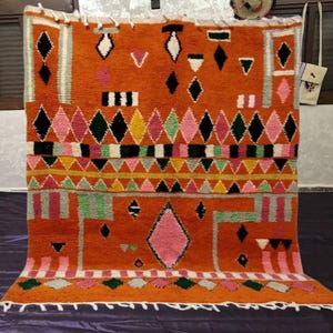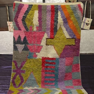 A Moroccan Berber Colorful rug is a traditional handwoven floor covering that originates from the indigenous Berber people of Morocco. These rugs are known for their intricate patterns and bold, geometric designs, which are created using a variety of natural dyes and High-quality Wool. Moroccan boujad rugs are versatile and can be used to add a touch of bohemian chic to any room, from a living room or bedroom to a home office or entryway. They are durable and easy to maintain, making them a practical choice for high-traffic areas. Whether you're looking to add a pop of color to your space or create a warm and welcoming atmosphere, a Moroccan Berber rug is a great choice. 📌 Shipping: insured, trackable, Fast, and FREE Worldwide by FedEx or DHL (2 to 5 days delivery). ❖ Cleaning: all rugs are carefully cleaned before shipping. ❖ Colors: Please take a look at the pictures. ❖ Texture: Moroccan / soft / Shag. ❖ Technique: Hand-Knotted ❖ Construction: Handmade ❖ Location: Indoor Use Only ❖ Material: Your order is made entirely by hand from natural wool, which means there will be natural (and beautiful) variations in pattern and color. Wool shrinks. ❖ Pattern: Because the product is handcrafted, the pattern and Colors may vary slightly from one piece to another. ❖ Size: While we try our best to ensure consistent sizing, it is possible for final sizes to vary by a few inches more or less. ❖ Tassels: One side is the Traditional way of making the rugs. 📌Ships tightly rolled in a protective bag. Any slight creasing will disappear within a few days. Shedding loose fibers is normal with new rugs. Shedding will diminish with regular vacuuming. If you have any questions or queries, please feel free to contact me via messages.