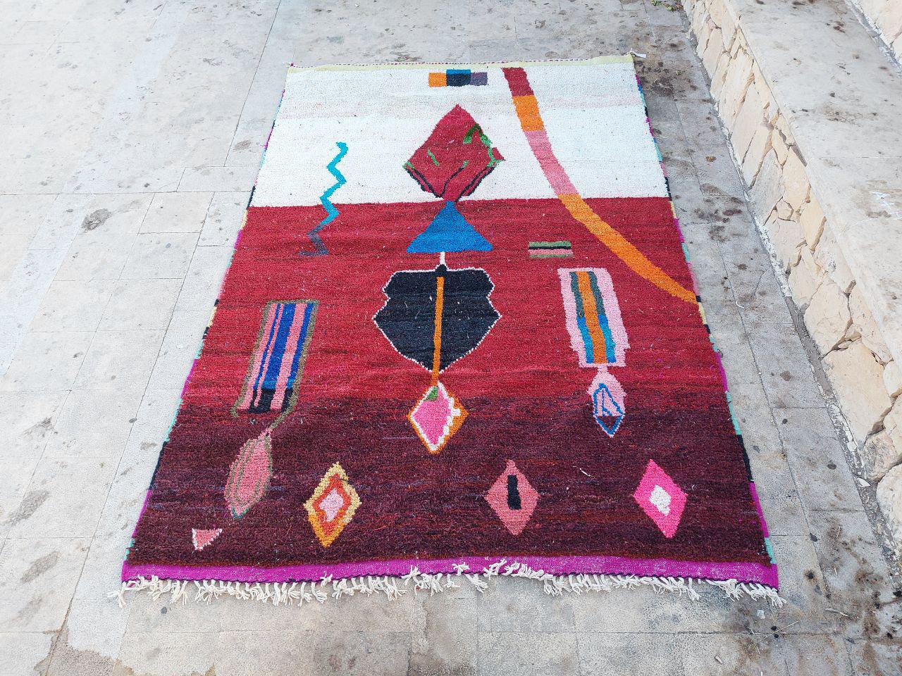 moroccan rug red white carpet,rug red multucolored boujaad ,Red Moroccan Rug