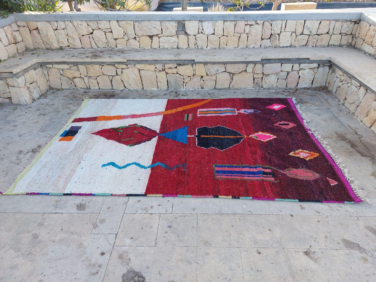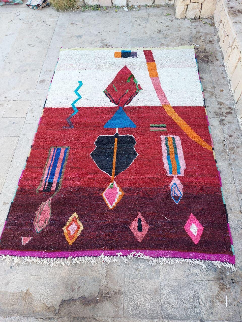 A Moroccan Berber Colorful rug is a traditional handwoven floor covering that originates from the indigenous Berber people of Morocco. These rugs are known for their intricate patterns and bold, geometric designs, which are created using a variety of natural dyes and High-quality Wool. Moroccan boujad rugs are versatile and can be used to add a touch of bohemian chic to any room, from a living room or bedroom to a home office or entryway. They are durable and easy to maintain, making them a practical choice for high-traffic areas. Whether you're looking to add a pop of color to your space or create a warm and welcoming atmosphere, a Moroccan Berber rug is a great choice. 📌 Shipping: insured, trackable, Fast, and FREE Worldwide by FedEx or DHL (2 to 5 days delivery). ❖ Cleaning: all rugs are carefully cleaned before shipping. ❖ Colors: Please take a look at the pictures. ❖ Texture: Moroccan / soft / Shag. ❖ Technique: Hand-Knotted ❖ Construction: Handmade ❖ Location: Indoor Use Only ❖ Material: Your order is made entirely by hand from natural wool, which means there will be natural (and beautiful) variations in pattern and color. Wool shrinks. ❖ Pattern: Because the product is handcrafted, the pattern and Colors may vary slightly from one piece to another. ❖ Size: While we try our best to ensure consistent sizing, it is possible for final sizes to vary by a few inches more or less. ❖ Tassels: One side is the Traditional way of making the rugs. 📌Ships tightly rolled in a protective bag. Any slight creasing will disappear within a few days. Shedding loose fibers is normal with new rugs. Shedding will diminish with regular vacuuming. If you have any questions or queries, please feel free to contact me via messages.
