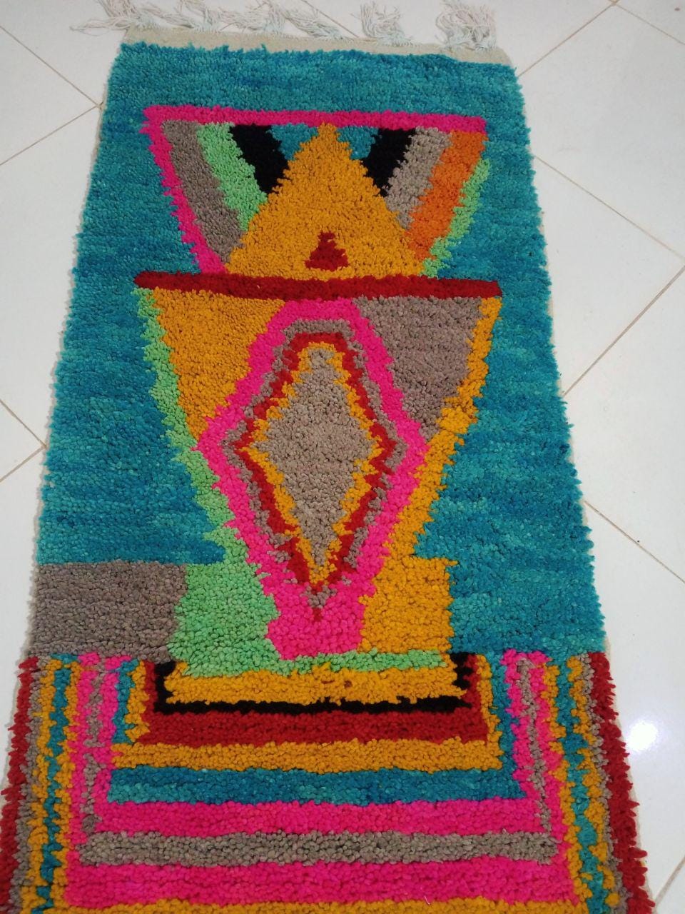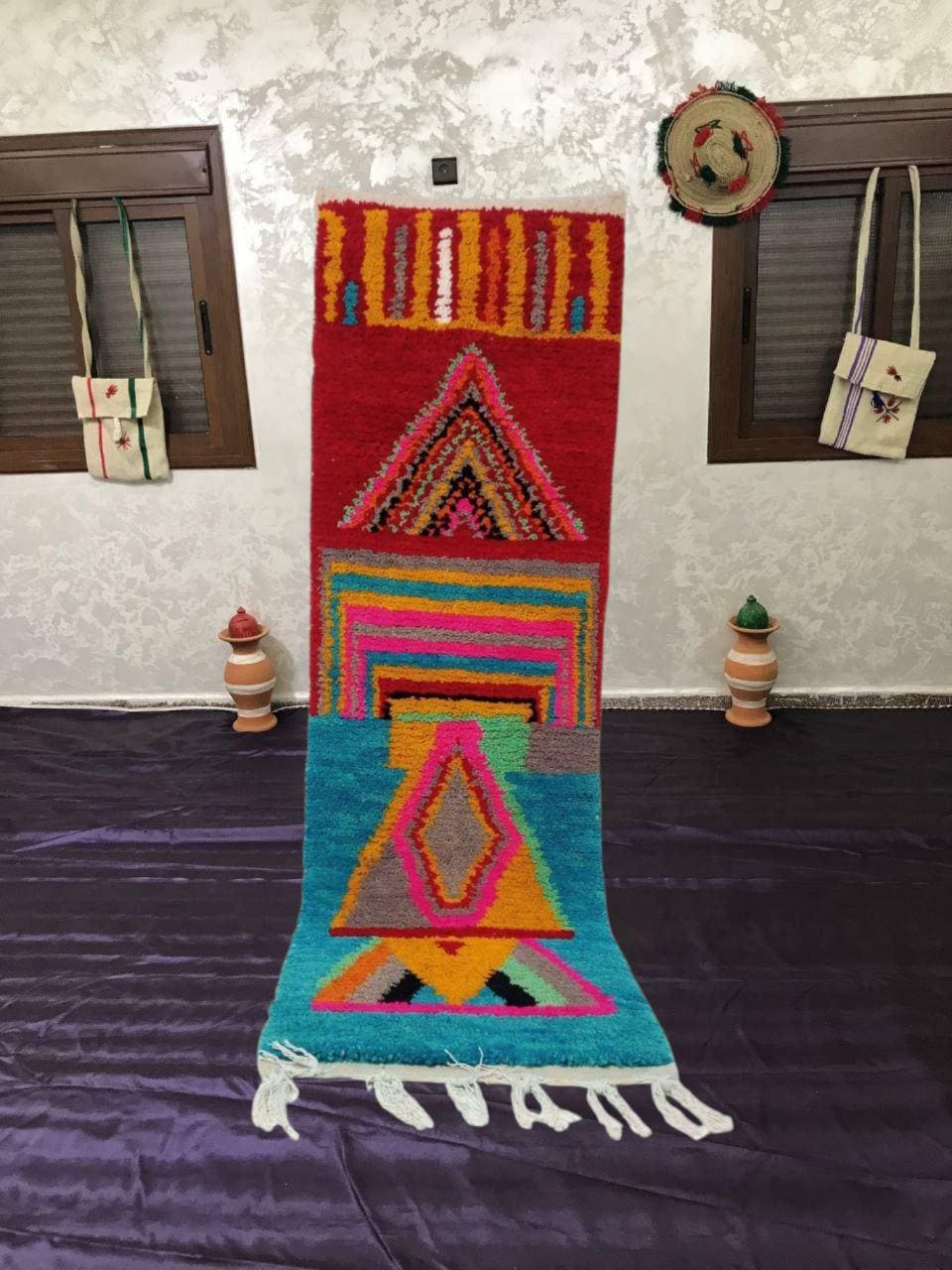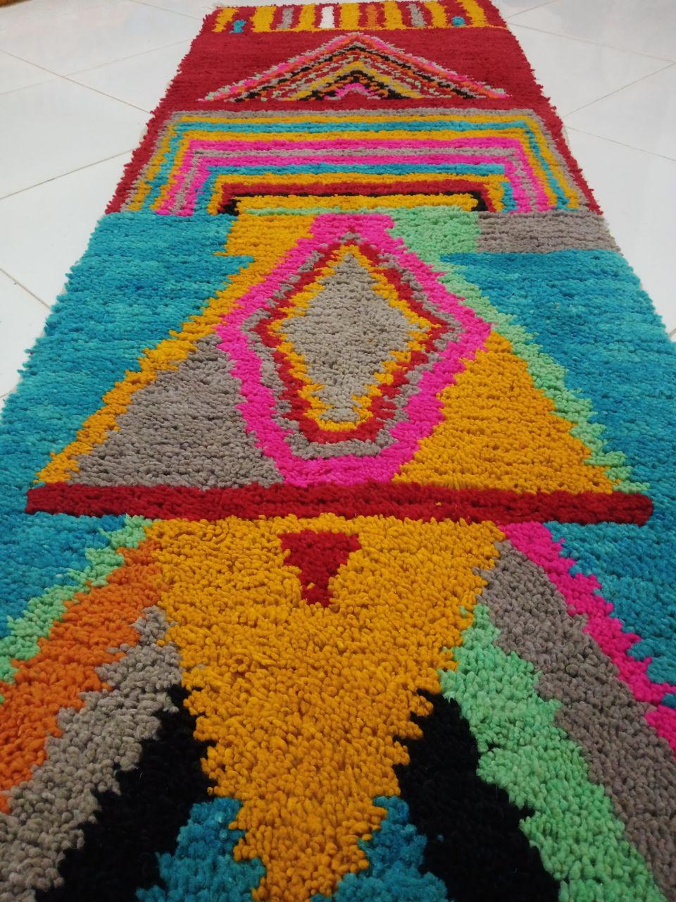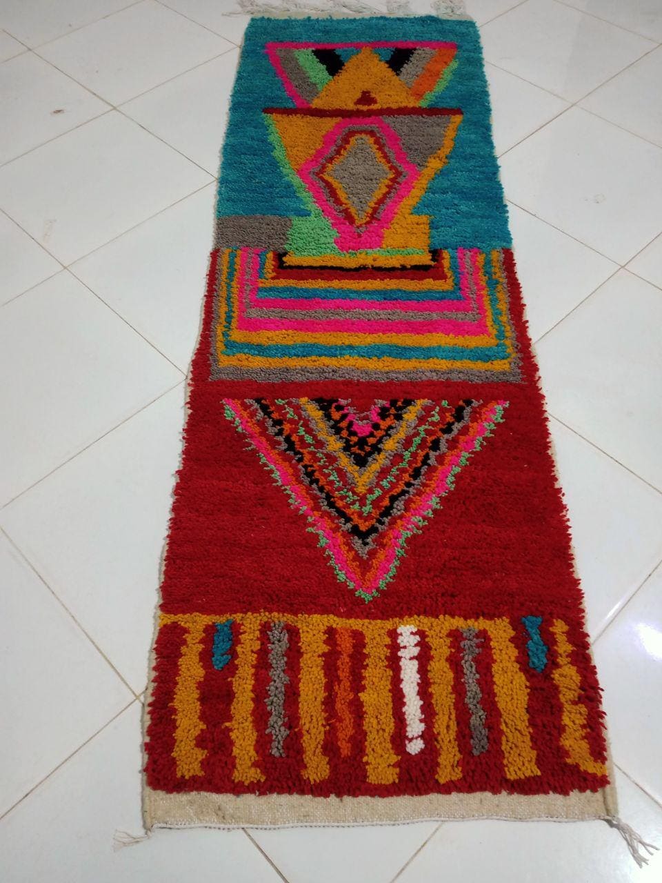 A Moroccan Berber Colorful rug is a traditional handwoven floor covering that originates from the indigenous Berber people of Morocco. These rugs are known for their intricate patterns and bold, geometric designs, which are created using a variety of natural dyes and High-quality Wool. Moroccan boujad rugs are versatile and can be used to add a touch of bohemian chic to any room, from a living room or bedroom to a home office or entryway. They are durable and easy to maintain, making them a practical choice for high-traffic areas. Whether you're looking to add a pop of color to your space or create a warm and welcoming atmosphere, a Moroccan Berber rug is a great choice.
