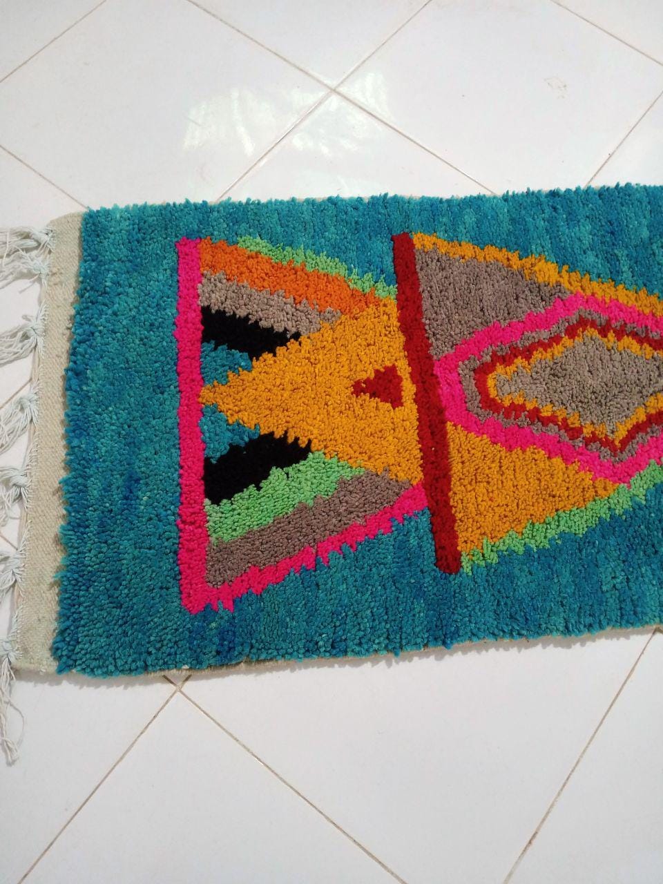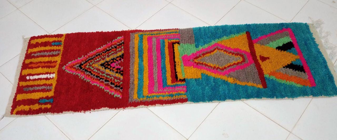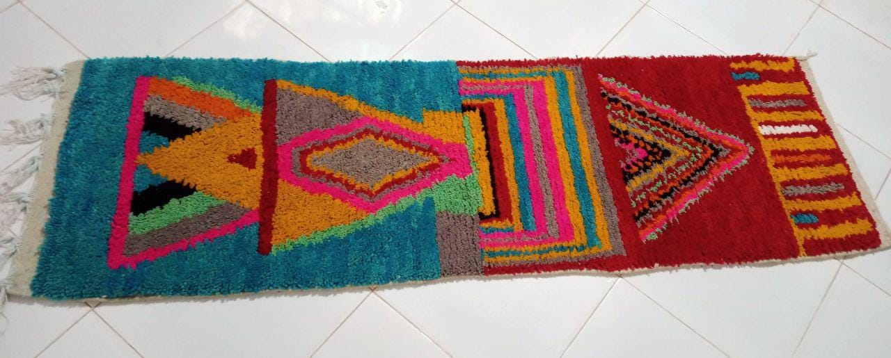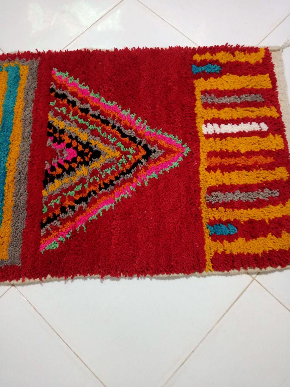A Moroccan Berber Colorful rug is a traditional handwoven floor covering that originates from the indigenous Berber people of Morocco. These rugs are known for their intricate patterns and bold, geometric designs, which are created using a variety of natural dyes and High-quality Wool. Moroccan boujad rugs are versatile and can be used to add a touch of bohemian chic to any room, from a living room or bedroom to a home office or entryway. They are durable and easy to maintain, making them a practical choice for high-traffic areas. Whether you're looking to add a pop of color to your space or create a warm and welcoming atmosphere, a Moroccan Berber rug is a great choice.