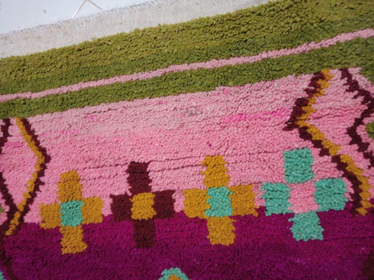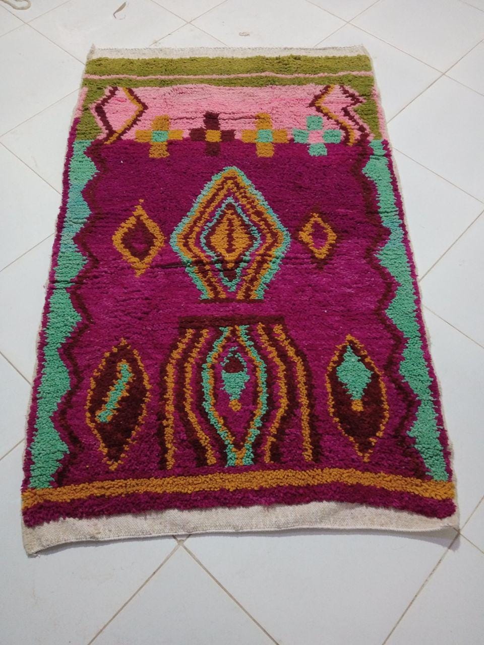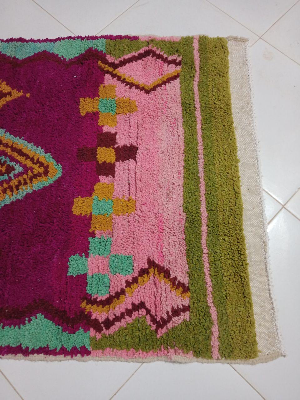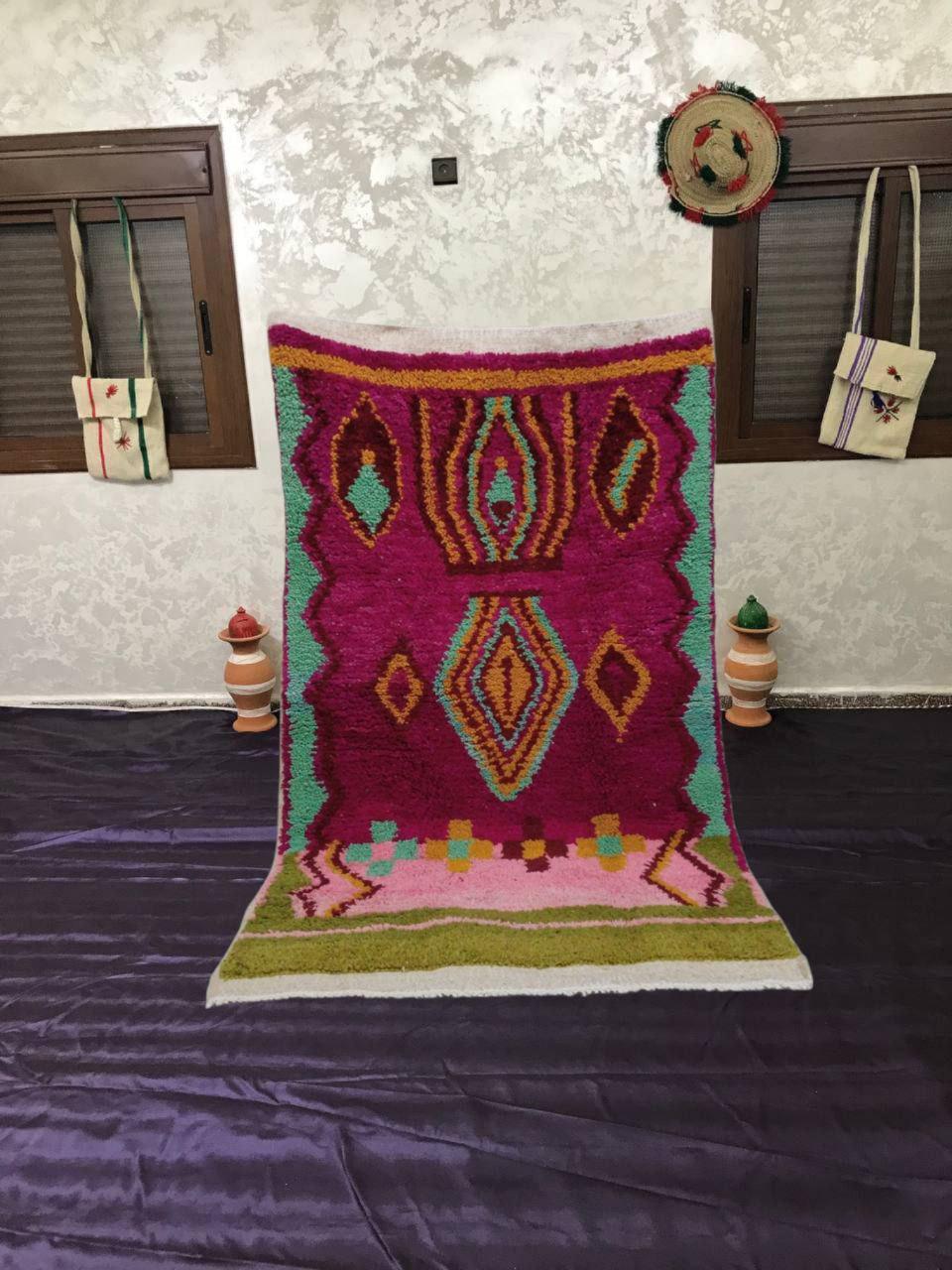 A Moroccan Berber Colorful rug is a traditional handwoven floor covering that originates from the indigenous Berber people of Morocco. These rugs are known for their intricate patterns and bold, geometric designs, which are created using a variety of natural dyes and High-quality Wool. Moroccan boujad rugs are versatile and can be used to add a touch of bohemian chic to any room, from a living room or bedroom to a home office or entryway. They are durable and easy to maintain, making them a practical choice for high-traffic areas. Whether you're looking to add a pop of color to your space or create a warm and welcoming atmosphere, a Moroccan Berber rug is a great choice.