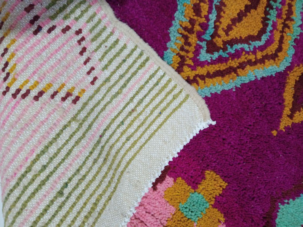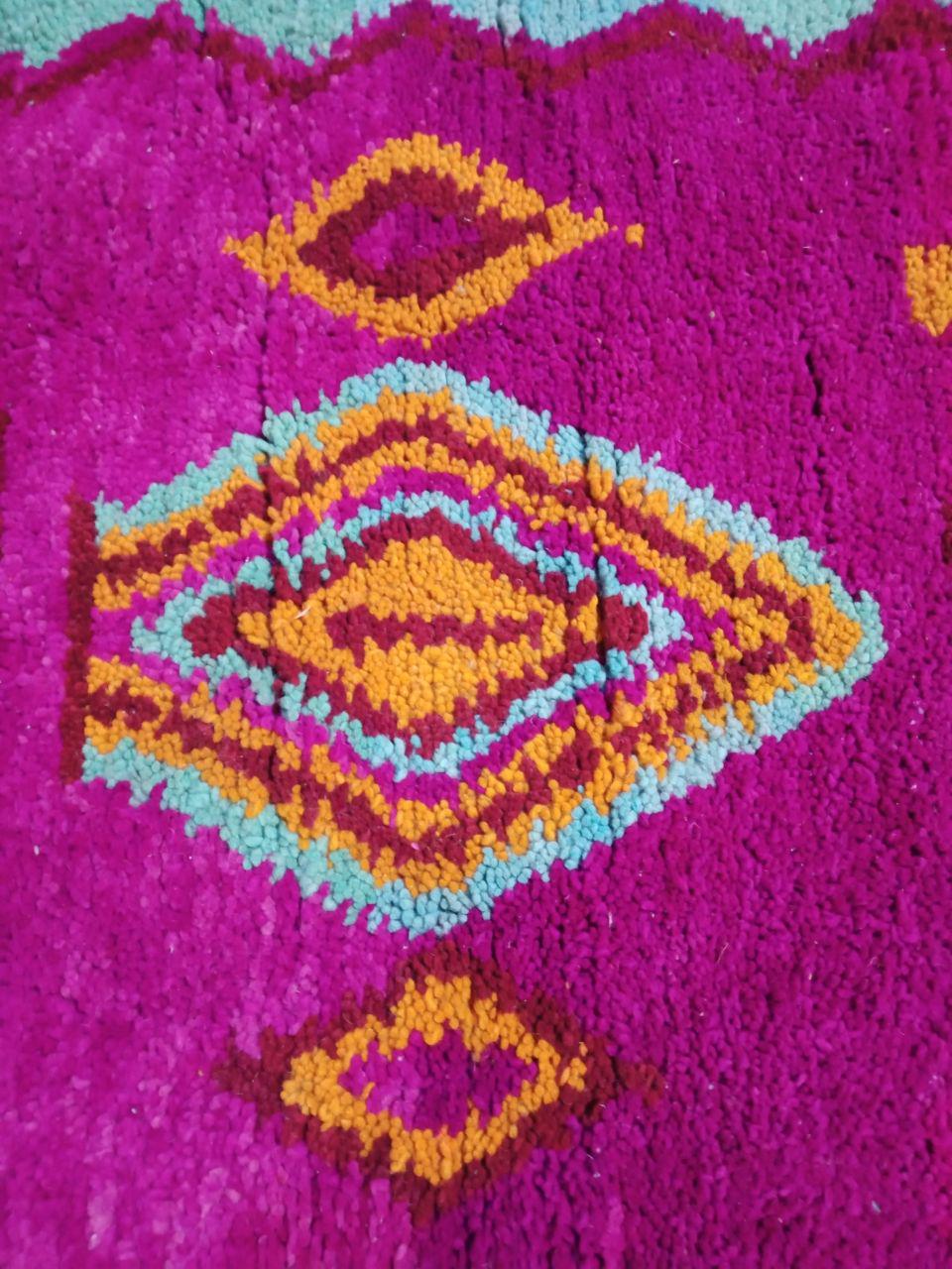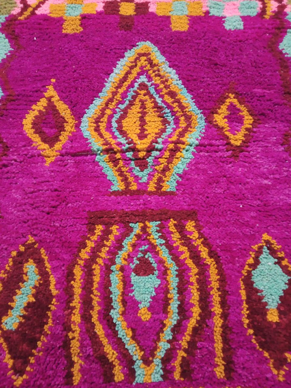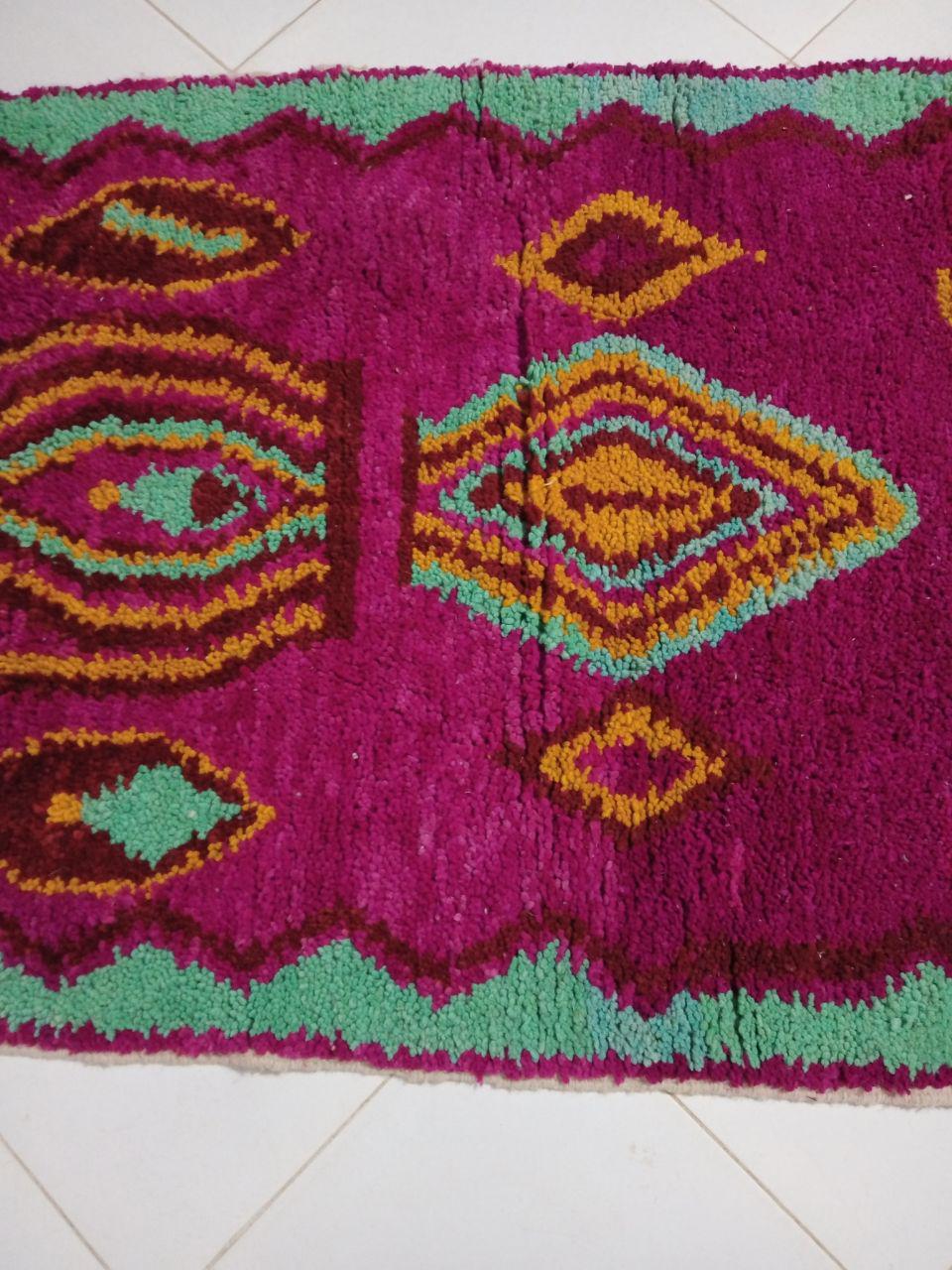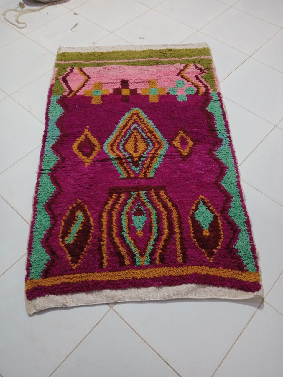 A Moroccan Berber Colorful rug is a traditional handwoven floor covering that originates from the indigenous Berber people of Morocco. These rugs are known for their intricate patterns and bold, geometric designs, which are created using a variety of natural dyes and High-quality Wool. Moroccan boujad rugs are versatile and can be used to add a touch of bohemian chic to any room, from a living room or bedroom to a home office or entryway. They are durable and easy to maintain, making them a practical choice for high-traffic areas. Whether you're looking to add a pop of color to your space or create a warm and welcoming atmosphere, a Moroccan Berber rug is a great choice.