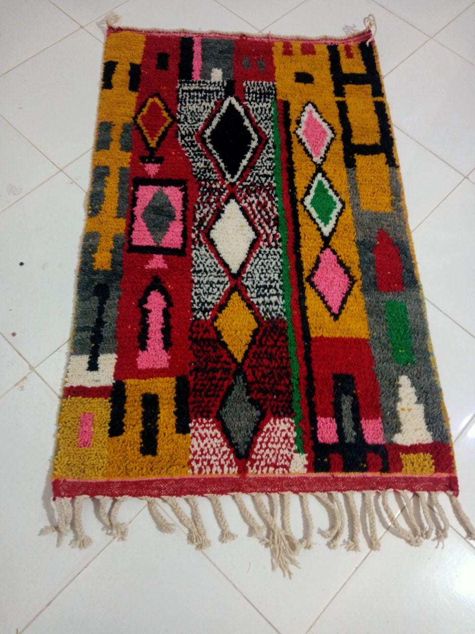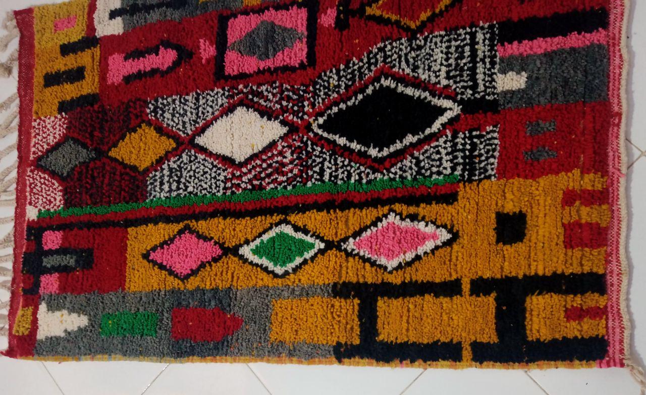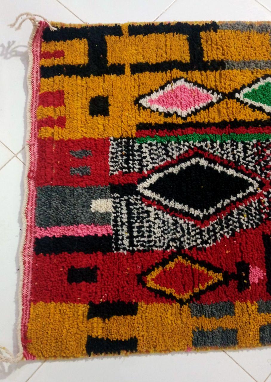 A Moroccan Berber Colorful rug is a traditional handwoven floor covering that originates from the indigenous Berber people of Morocco. These rugs are known for their intricate patterns and bold, geometric designs, which are created using a variety of natural dyes and High-quality Wool. Moroccan boujad rugs are versatile and can be used to add a touch of bohemian chic to any room, from a living room or bedroom to a home office or entryway. They are durable and easy to maintain, making them a practical choice for high-traffic areas. Whether you're looking to add a pop of color to your space or create a warm and welcoming atmosphere, a Moroccan Berber rug is a great choice.
