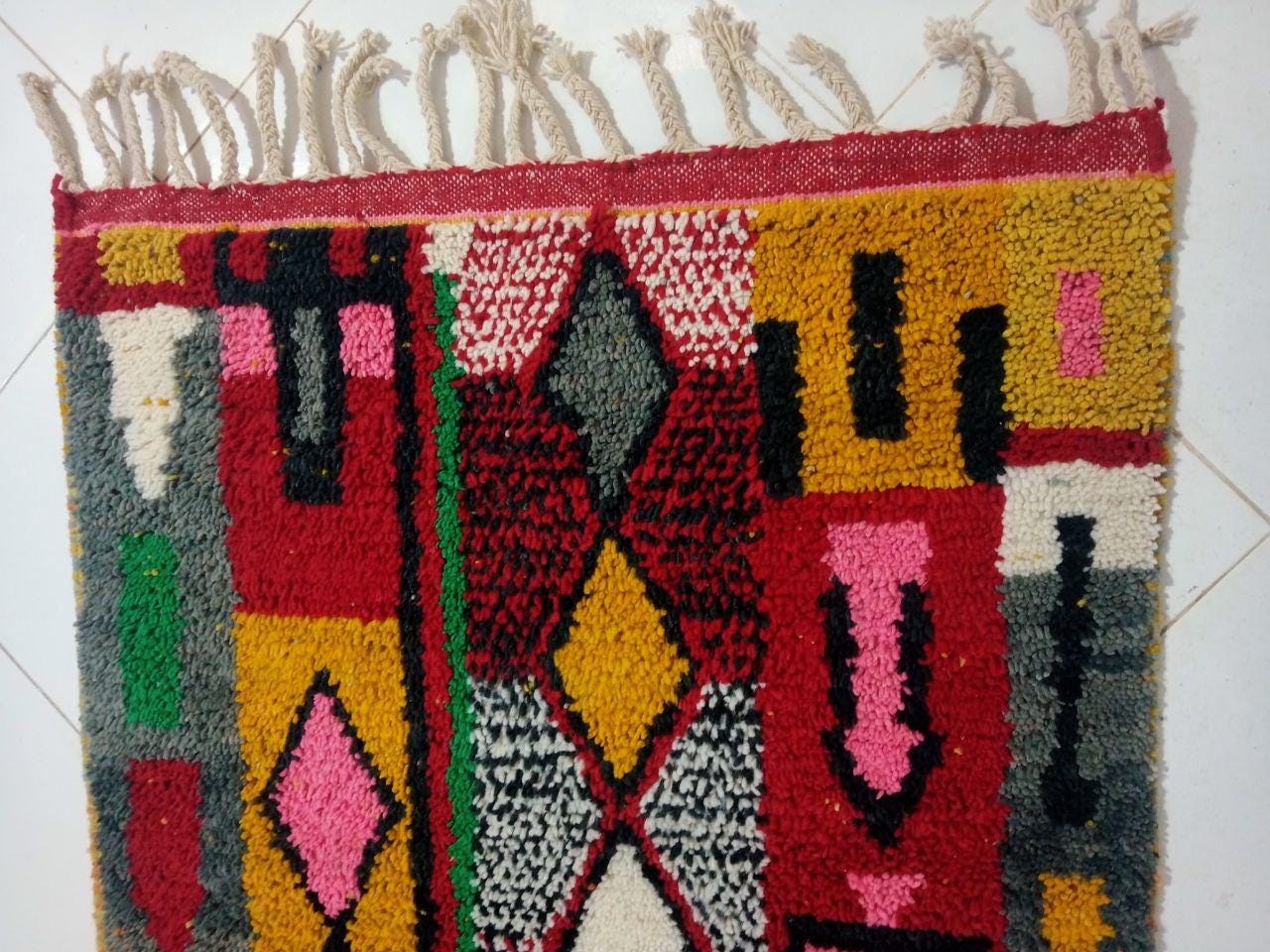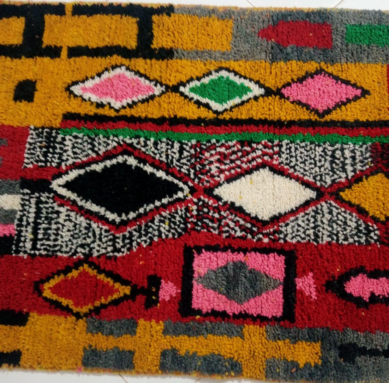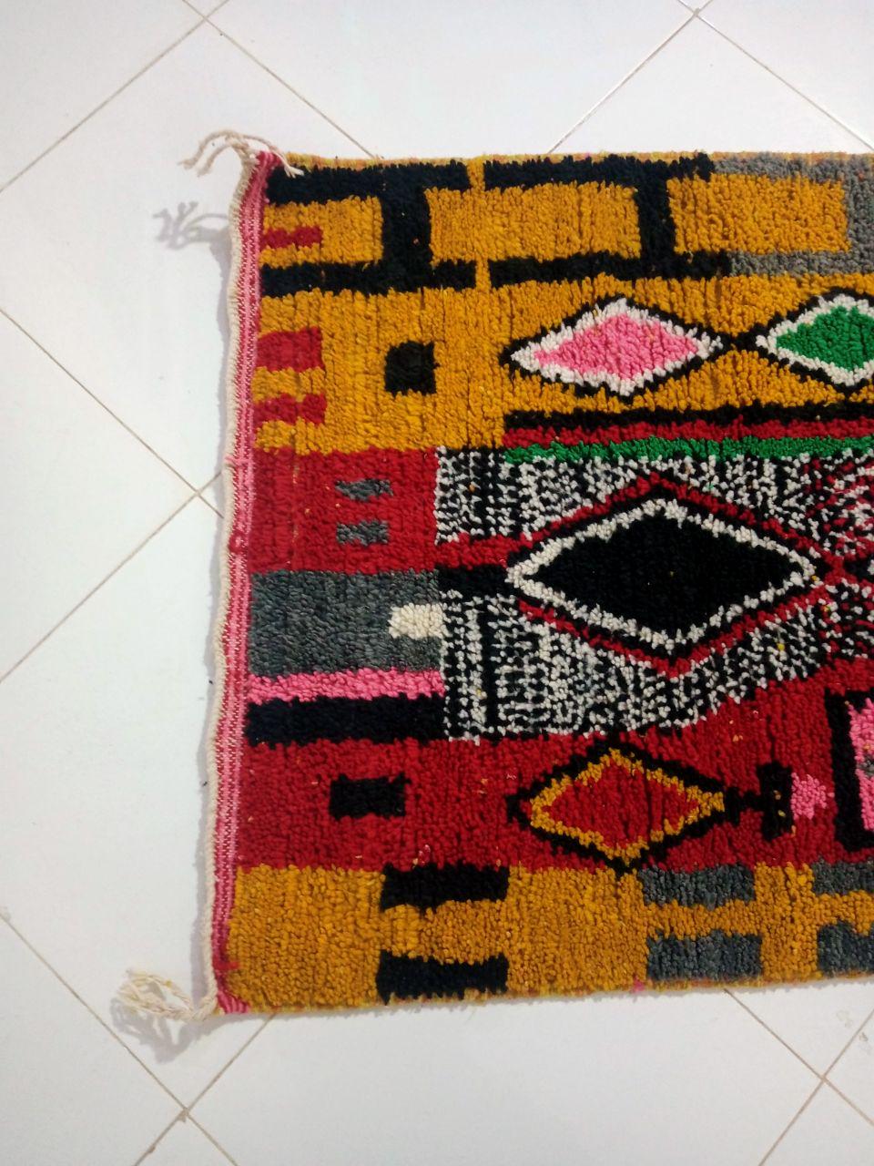 A Moroccan Berber Colorful rug is a traditional handwoven floor covering that originates from the indigenous Berber people of Morocco. These rugs are known for their intricate patterns and bold, geometric designs, which are created using a variety of natural dyes and High-quality Wool. Moroccan boujad rugs are versatile and can be used to add a touch of bohemian chic to any room, from a living room or bedroom to a home office or entryway. They are durable and easy to maintain, making them a practical choice for high-traffic areas. Whether you're looking to add a pop of color to your space or create a warm and welcoming atmosphere, a Moroccan Berber rug is a great choice.