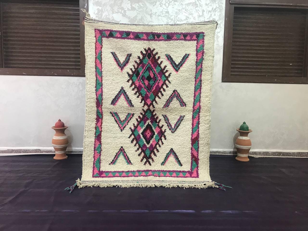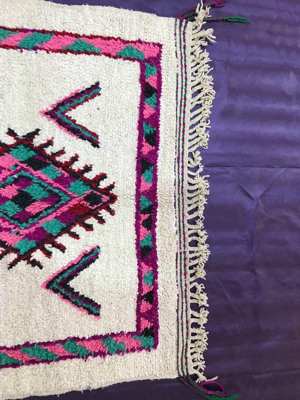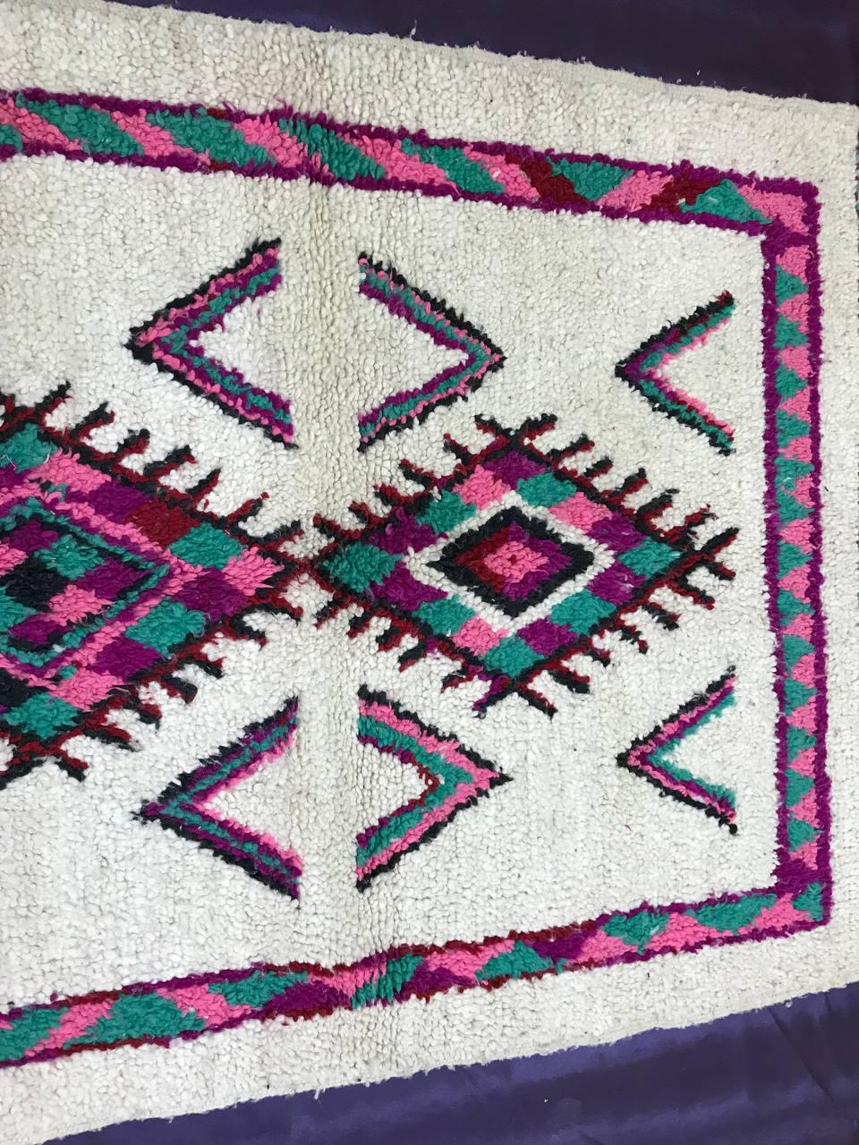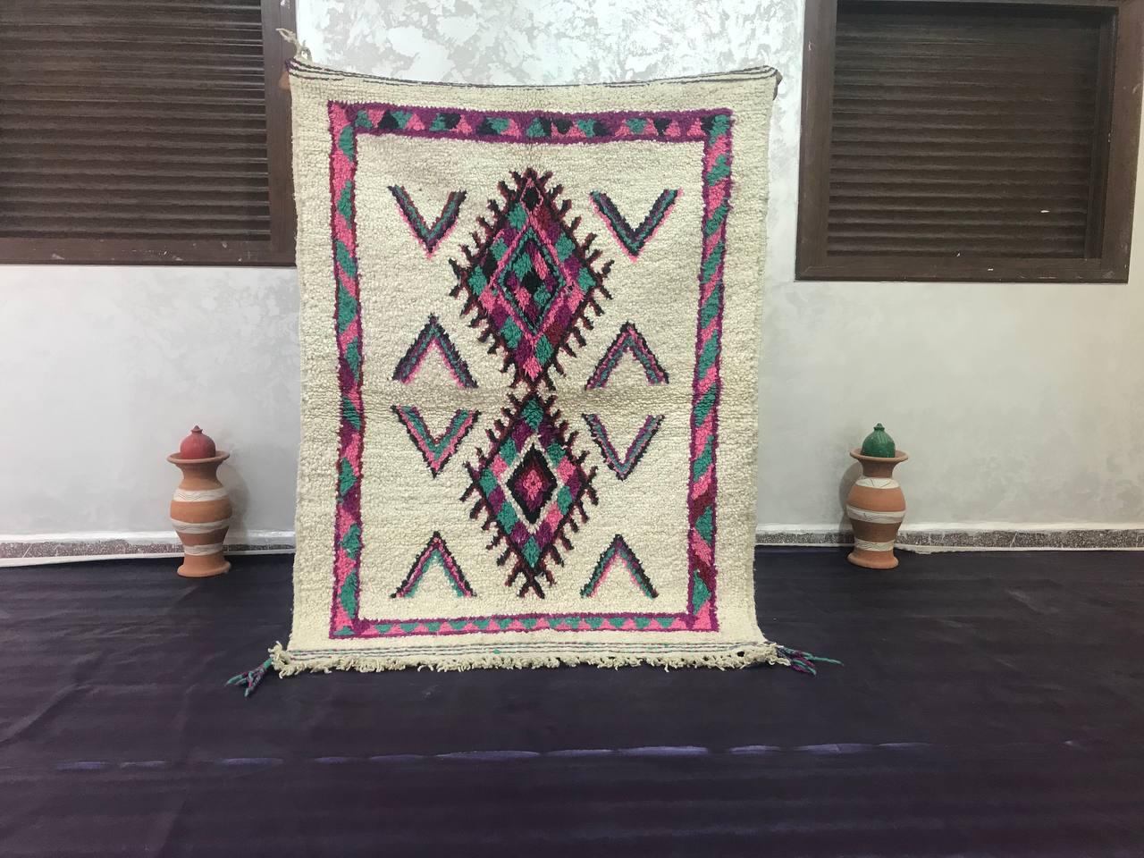 A Moroccan Berber Colorful rug is a traditional handwoven floor covering that originates from the indigenous Berber people of Morocco. These rugs are known for their intricate patterns and bold, geometric designs, which are created using a variety of natural dyes and High-quality Wool. Moroccan boujad rugs are versatile and can be used to add a touch of bohemian chic to any room, from a living room or bedroom to a home office or entryway. They are durable and easy to maintain, making them a practical choice for high-traffic areas. Whether you're looking to add a pop of color to your space or create a warm and welcoming atmosphere, a Moroccan Berber rug is a great choice.