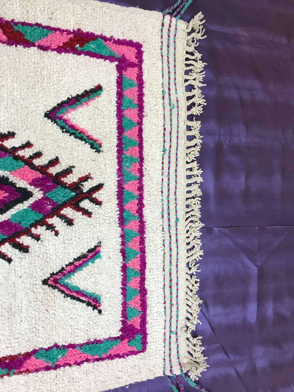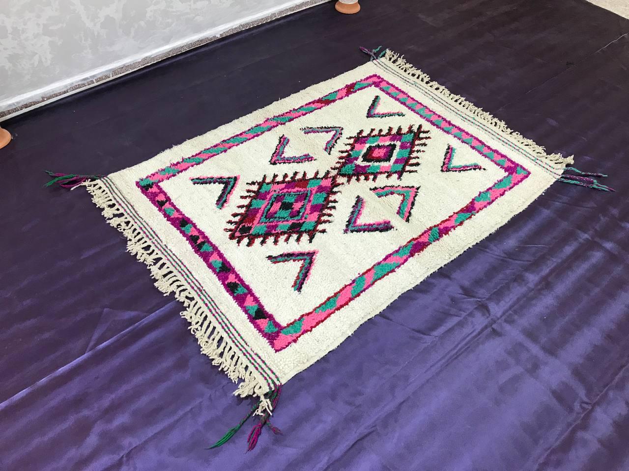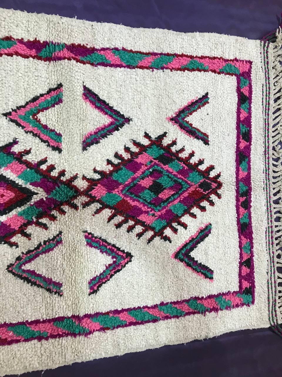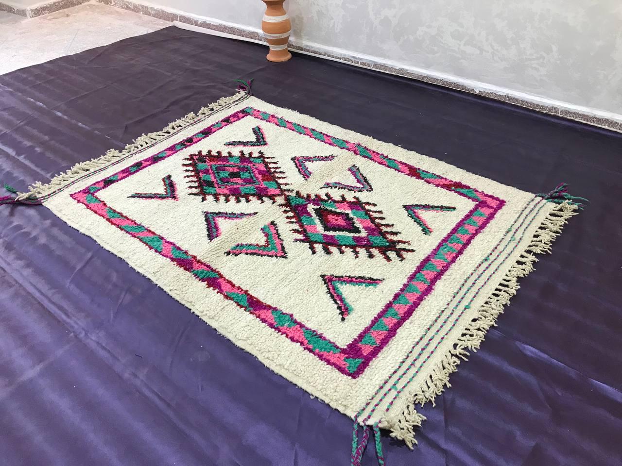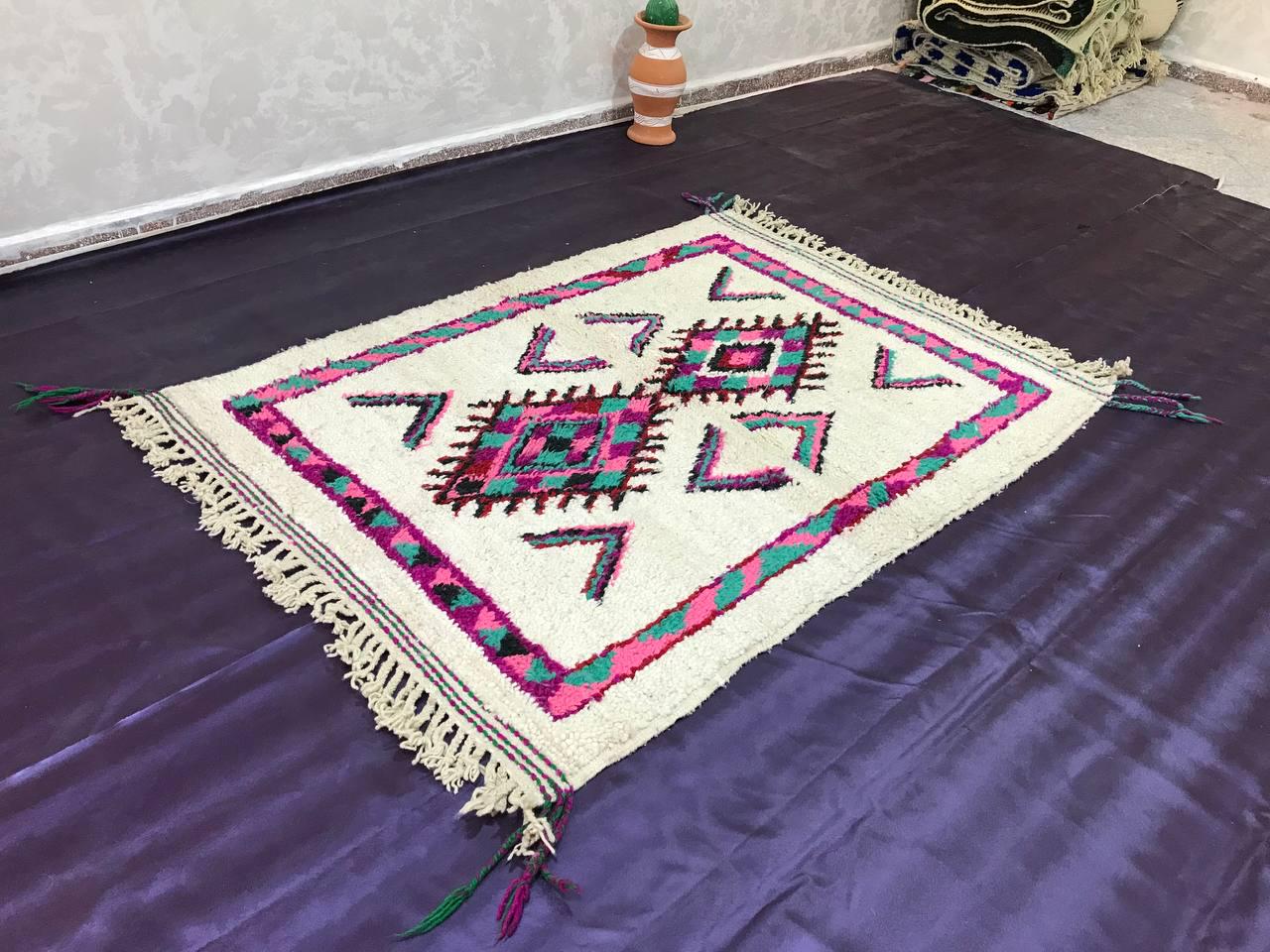 A Moroccan Berber Colorful rug is a traditional handwoven floor covering that originates from the indigenous Berber people of Morocco. These rugs are known for their intricate patterns and bold, geometric designs, which are created using a variety of natural dyes and High-quality Wool. Moroccan boujad rugs are versatile and can be used to add a touch of bohemian chic to any room, from a living room or bedroom to a home office or entryway. They are durable and easy to maintain, making them a practical choice for high-traffic areas. Whether you're looking to add a pop of color to your space or create a warm and welcoming atmosphere, a Moroccan Berber rug is a great choice.