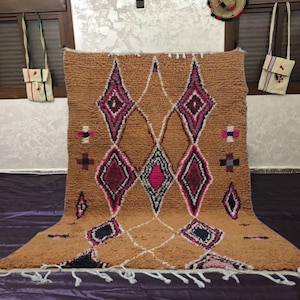 A Moroccan Berber Colorful rug is a traditional handwoven floor covering that originates from the indigenous Berber people of Morocco. These rugs are known for their intricate patterns and bold, geometric designs, which are created using a variety of natural dyes and High-quality Wool. Moroccan boujad rugs are versatile and can be used to add a touch of bohemian chic to any room, from a living room or bedroom to a home office or entryway. They are durable and easy to maintain, making them a practical choice for high-traffic areas. Whether you're looking to add a pop of color to your space or create a warm and welcoming atmosphere, a Moroccan Berber rug is a great choice.