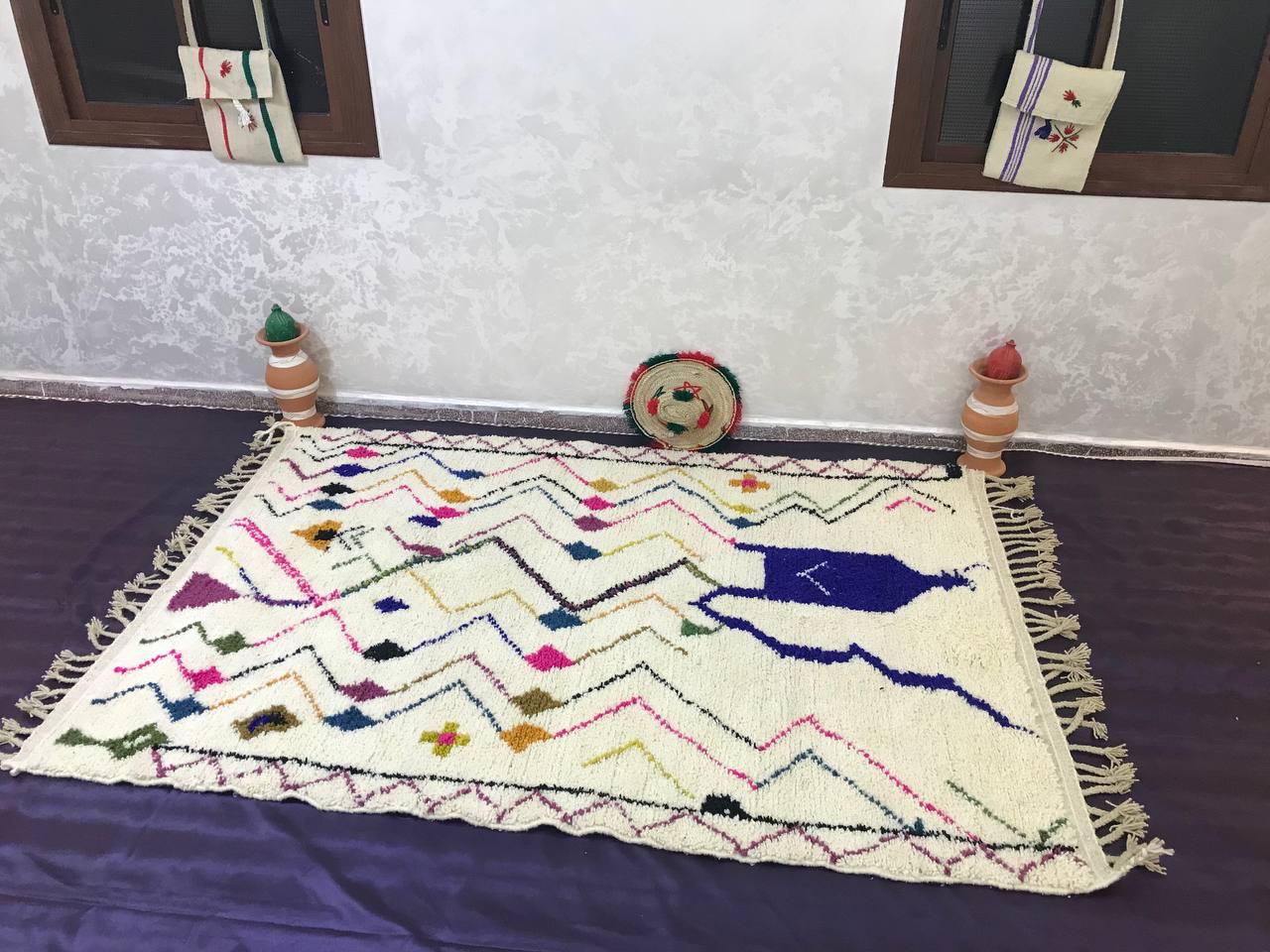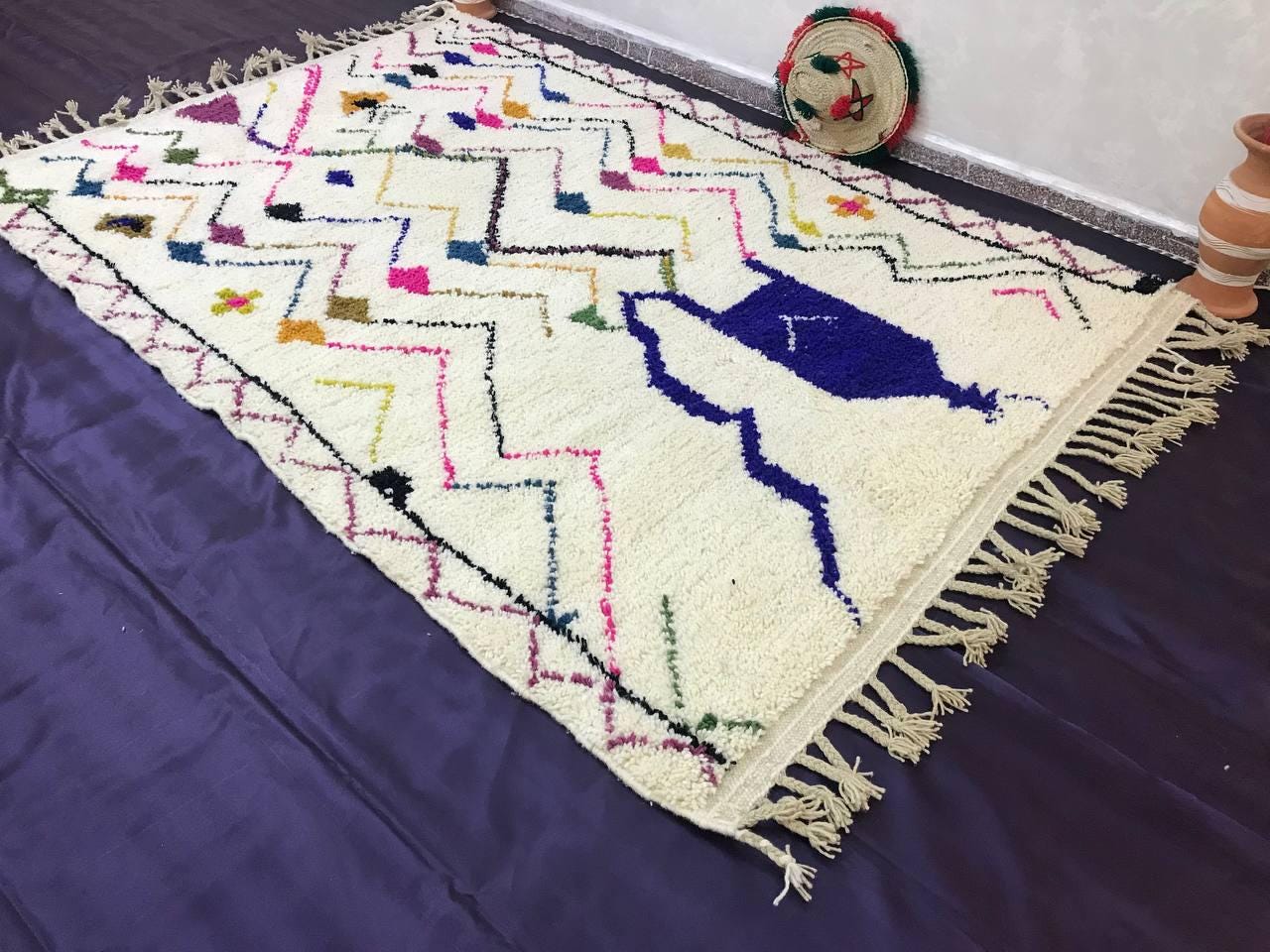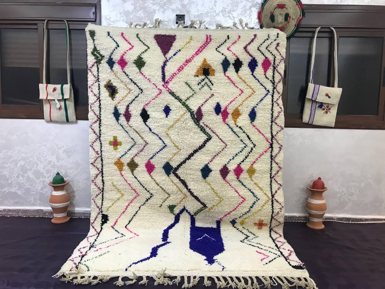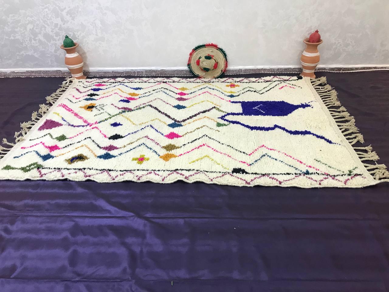 A Moroccan Berber Colorful rug is a traditional handwoven floor covering that originates from the indigenous Berber people of Morocco. These rugs are known for their intricate patterns and bold, geometric designs, which are created using a variety of natural dyes and High-quality Wool. Moroccan boujad rugs are versatile and can be used to add a touch of bohemian chic to any room, from a living room or bedroom to a home office or entryway. They are durable and easy to maintain, making them a practical choice for high-traffic areas. Whether you're looking to add a pop of color to your space or create a warm and welcoming atmosphere, a Moroccan Berber rug is a great choice. 📌 Shipping: insured, trackable, Fast, and FREE Worldwide by FedEx or DHL (2 to 5 days delivery). ❖ Cleaning: all rugs are carefully cleaned before shipping. ❖ Colors: Please take a look at the pictures. ❖ Texture: Moroccan / soft / Shag. ❖ Technique: Hand-Knotted ❖ Construction: Handmade ❖ Location: Indoor Use Only ❖ Material: Your order is made entirely by hand from natural wool, which means there will be natural (and beautiful) variations in pattern and color. Wool shrinks. ❖ Pattern: Because the product is handcrafted, the pattern and Colors may vary slightly from one piece to another. ❖ Size: While we try our best to ensure consistent sizing, it is possible for final sizes to vary by a few inches more or less. ❖ Tassels: One side is the Traditional way of making the rugs. 📌Ships tightly rolled in a protective bag. Any slight creasing will disappear within a few days. Shedding loose fibers is normal with new rugs. Shedding will diminish with regular vacuuming. If you have any questions or queries, please feel free to contact me via messages.