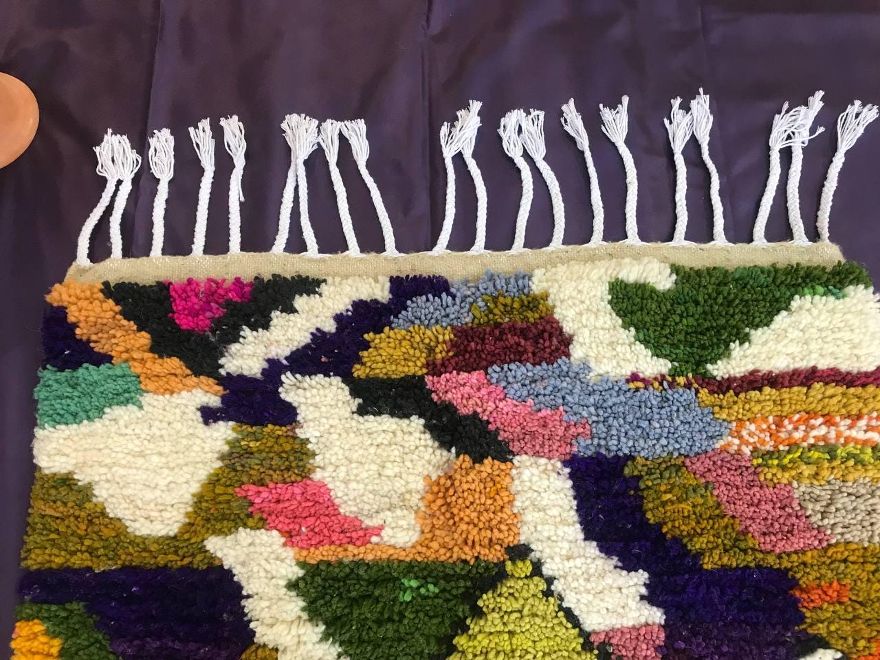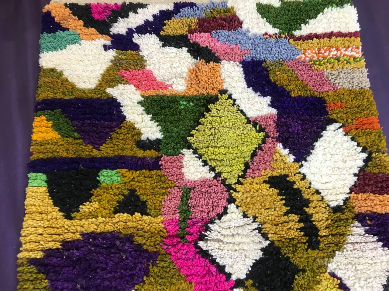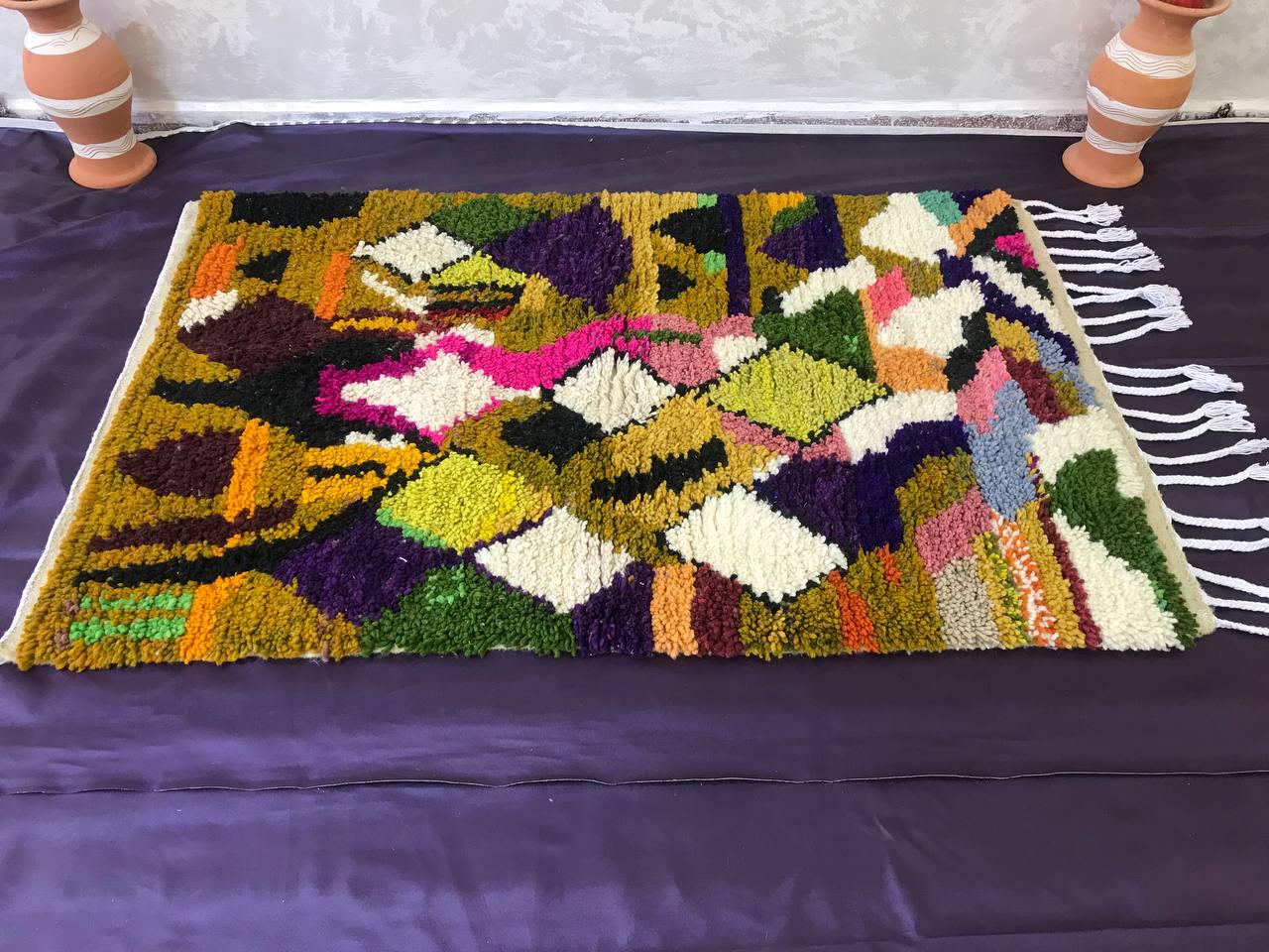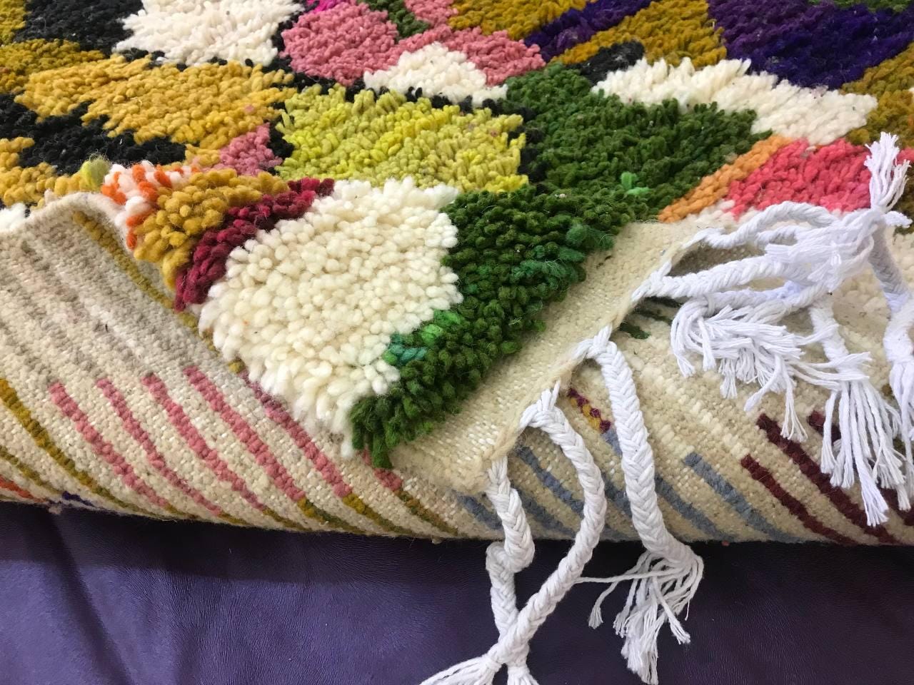 A Moroccan Berber Colorful rug is a traditional handwoven floor covering that originates from the indigenous Berber people of Morocco. These rugs are known for their intricate patterns and bold, geometric designs, which are created using a variety of natural dyes and High-quality Wool. Moroccan boujad rugs are versatile and can be used to add a touch of bohemian chic to any room, from a living room or bedroom to a home office or entryway. They are durable and easy to maintain, making them a practical choice for high-traffic areas. Whether you're looking to add a pop of color to your space or create a warm and welcoming atmosphere, a Moroccan Berber rug is a great choice. 📌 Shipping: insured, trackable, Fast, and FREE Worldwide by FedEx or DHL (2 to 5 days delivery). ❖ Cleaning: all rugs are carefully cleaned before shipping. ❖ Colors: Please take a look at the pictures. ❖ Texture: Moroccan / soft / Shag. ❖ Technique: Hand-Knotted ❖ Construction: Handmade ❖ Location: Indoor Use Only ❖ Material: Your order is made entirely by hand from natural wool, which means there will be natural (and beautiful) variations in pattern and color. Wool shrinks. ❖ Pattern: Because the product is handcrafted, the pattern and Colors may vary slightly from one piece to another. ❖ Size: While we try our best to ensure consistent sizing, it is possible for final sizes to vary by a few inches more or less. ❖ Tassels: One side is the Traditional way of making the rugs. 📌Ships tightly rolled in a protective bag. Any slight creasing will disappear within a few days. Shedding loose fibers is normal with new rugs. Shedding will diminish with regular vacuuming. If you have any questions or queries, please feel free to contact me via messages. Mountain Rug green boujaad custom,custom moroccan rug green wool,Berber Rug Green wool moroccan rug