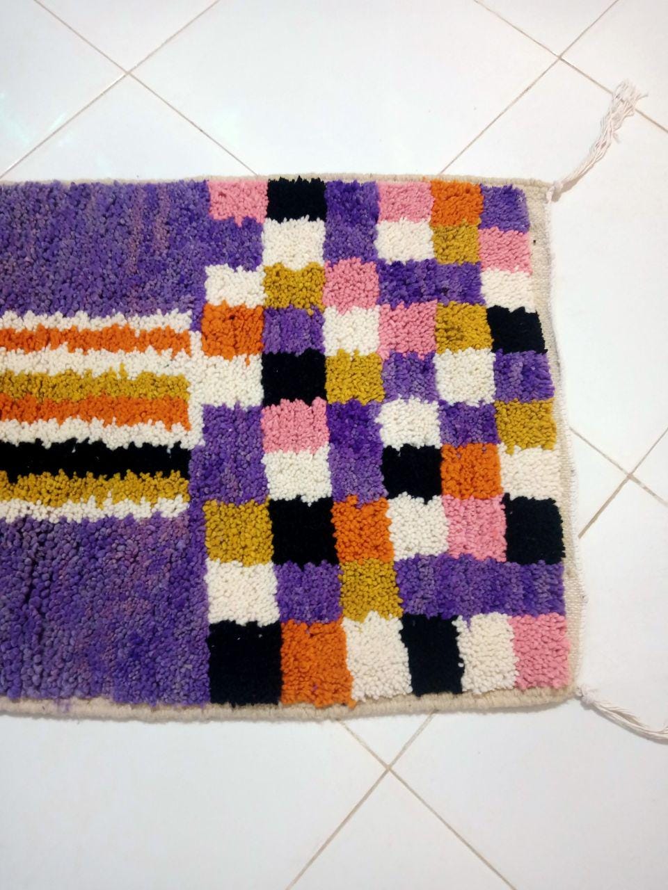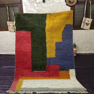 A Moroccan Berber Colorful rug is a traditional handwoven floor covering that originates from the indigenous Berber people of Morocco. These rugs are known for their intricate patterns and bold, geometric designs, which are created using a variety of natural dyes and High-quality Wool. Moroccan boujad rugs are versatile and can be used to add a touch of bohemian chic to any room, from a living room or bedroom to a home office or entryway. They are durable and easy to maintain, making them a practical choice for high-traffic areas. Whether you're looking to add a pop of color to your space or create a warm and welcoming atmosphere, a Moroccan Berber rug is a great choice.