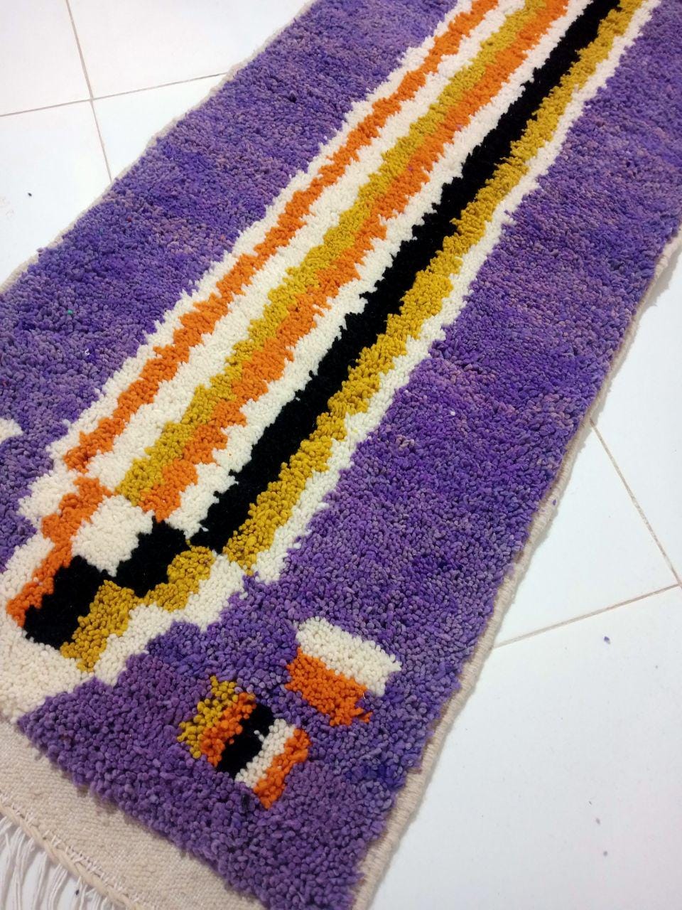 solid lavender purple wool rug,medium lavender carpet runner moroccan,custom carpet lavender runner rug boujaad