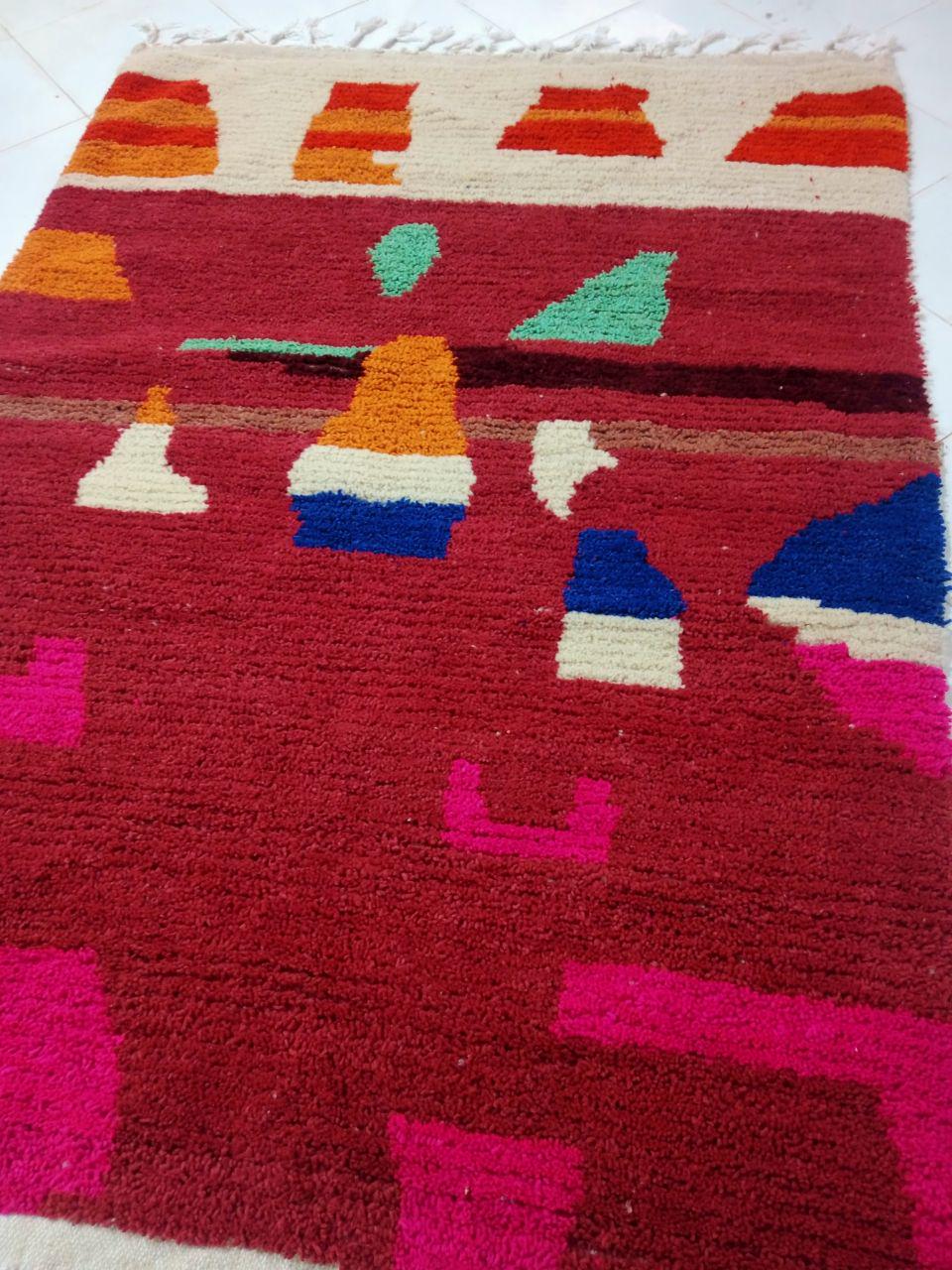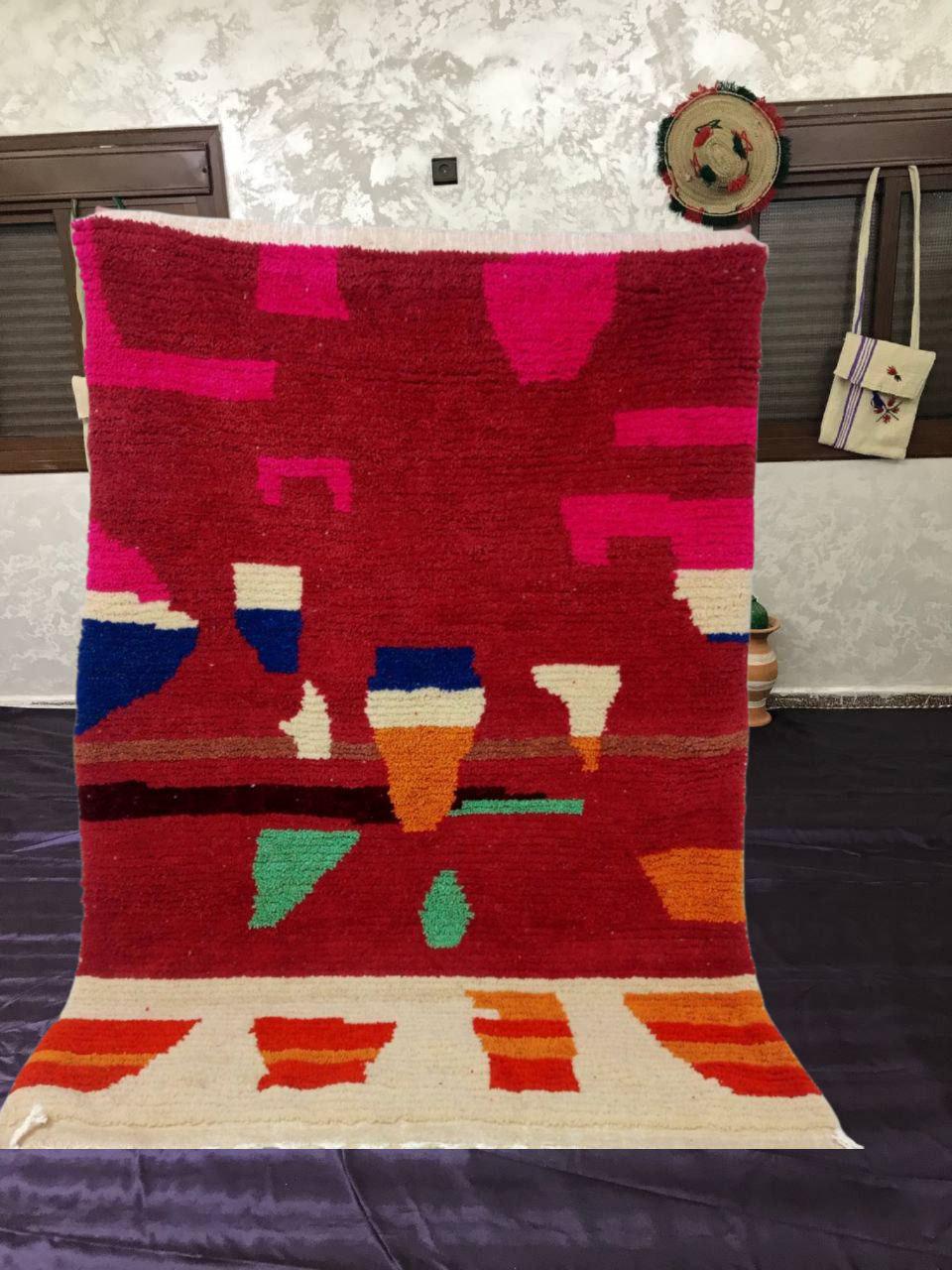 moroccan rug custom red for living room, moroccan rug boho bedroom colour ,moroccan berber rug boujaad handmade carpet
