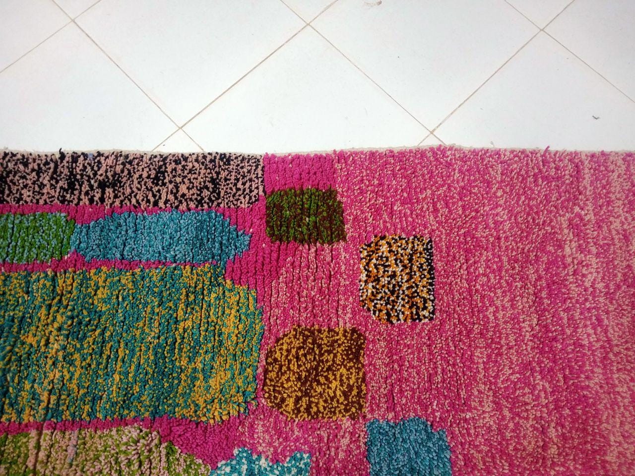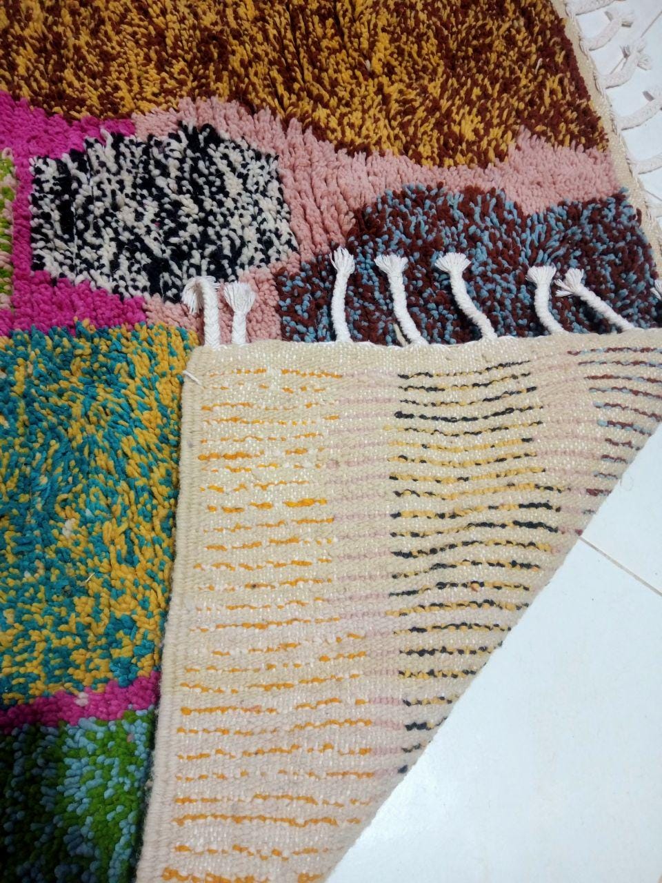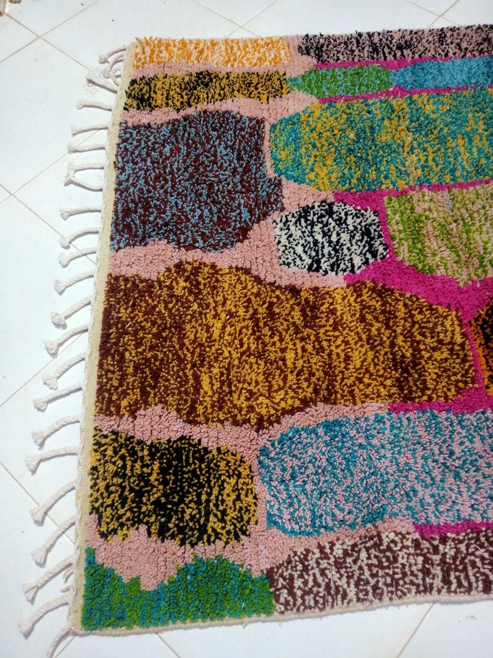 A Moroccan Berber Colorful rug is a traditional handwoven floor covering that originates from the indigenous Berber people of Morocco. These rugs are known for their intricate patterns and bold, geometric designs, which are created using a variety of natural dyes and High-quality Wool. Moroccan boujad rugs are versatile and can be used to add a touch of bohemian chic to any room, from a living room or bedroom to a home office or entryway. They are durable and easy to maintain, making them a practical choice for high-traffic areas. Whether you're looking to add a pop of color to your space or create a warm and welcoming atmosphere, a Moroccan Berber rug is a great choice. 📌 Shipping: insured, trackable, Fast, and FREE Worldwide by FedEx or DHL (2 to 5 days delivery). ❖ Cleaning: all rugs are carefully cleaned before shipping. ❖ Colors: Please take a look at the pictures. ❖ Texture: Moroccan / soft / Shag. ❖ Technique: Hand-Knotted ❖ Construction: Handmade ❖ Location: Indoor Use Only ❖ Material: Your order is made entirely by hand from natural wool, which means there will be natural (and beautiful) variations in pattern and color. Wool shrinks. ❖ Pattern: Because the product is handcrafted, the pattern and Colors may vary slightly from one piece to another. ❖ Size: While we try our best to ensure consistent sizing, it is possible for final sizes to vary by a few inches more or less. ❖ Tassels: One side is the Traditional way of making the rugs. 📌Ships tightly rolled in a protective bag. Any slight creasing will disappear within a few days. Shedding loose fibers is normal with new rugs. Shedding will diminish with regular vacuuming. If you have any questions or queries, please feel free to contact me via messages.