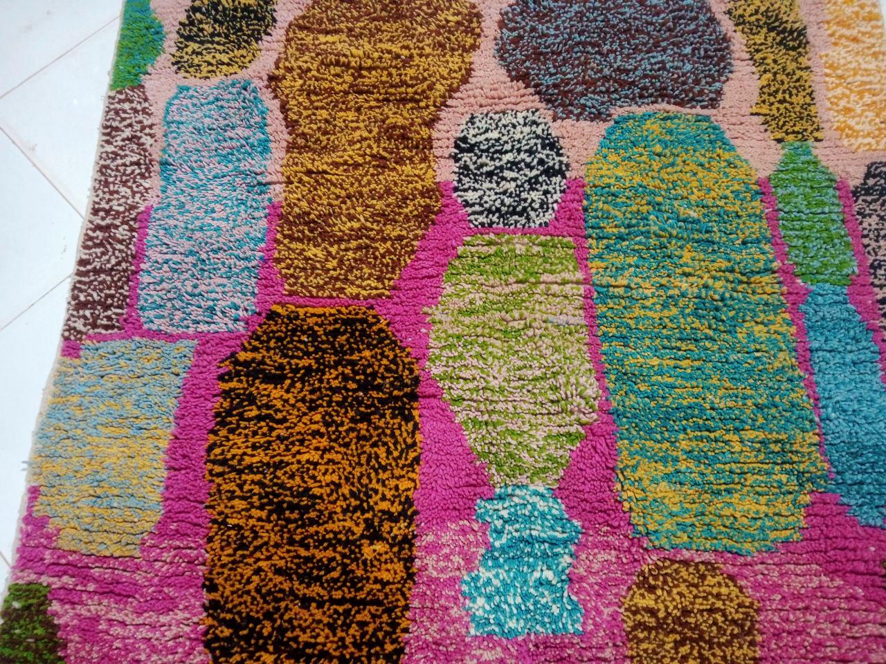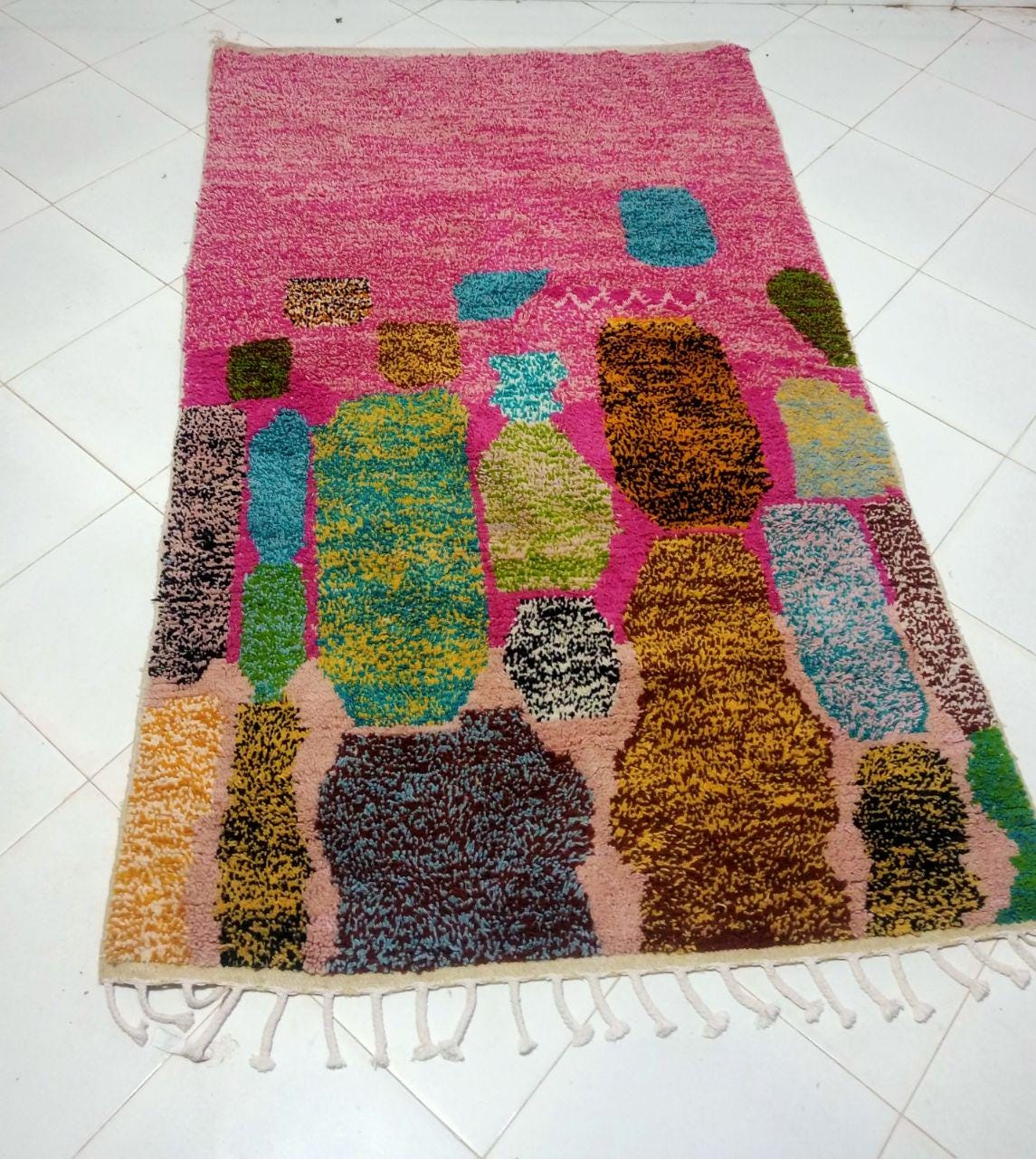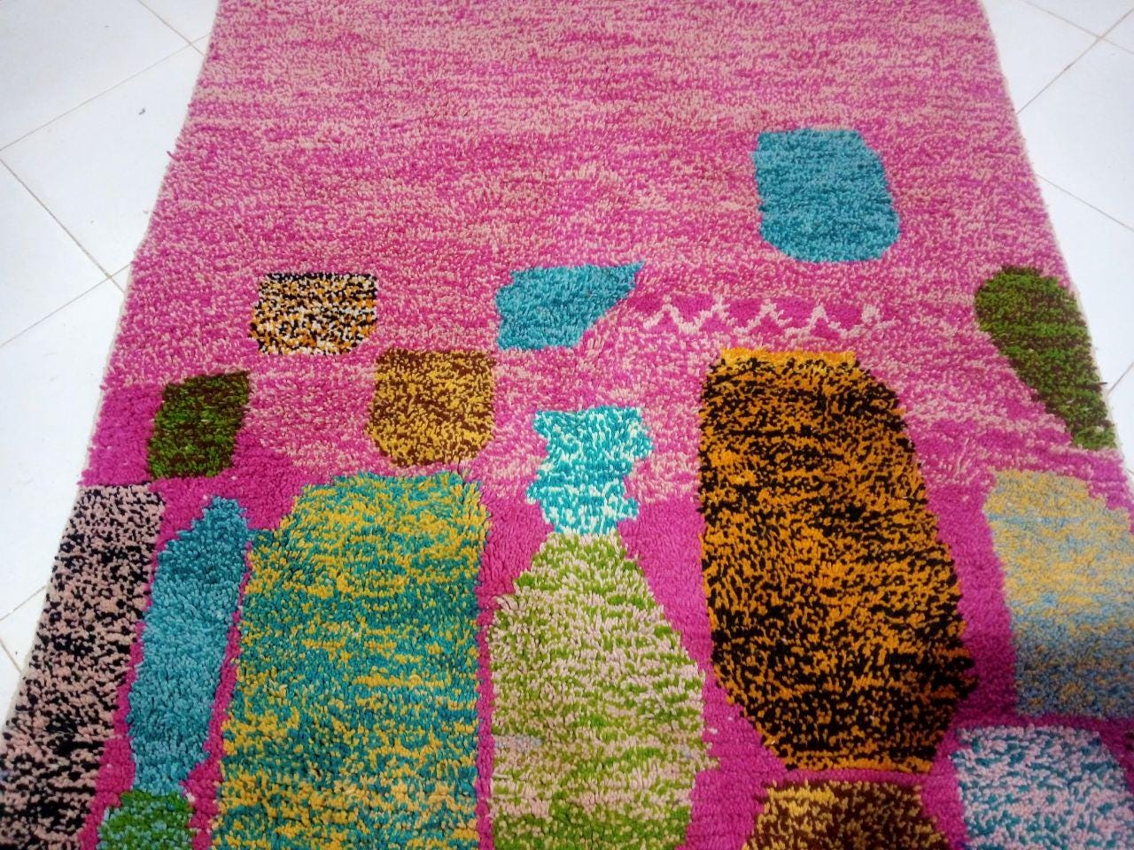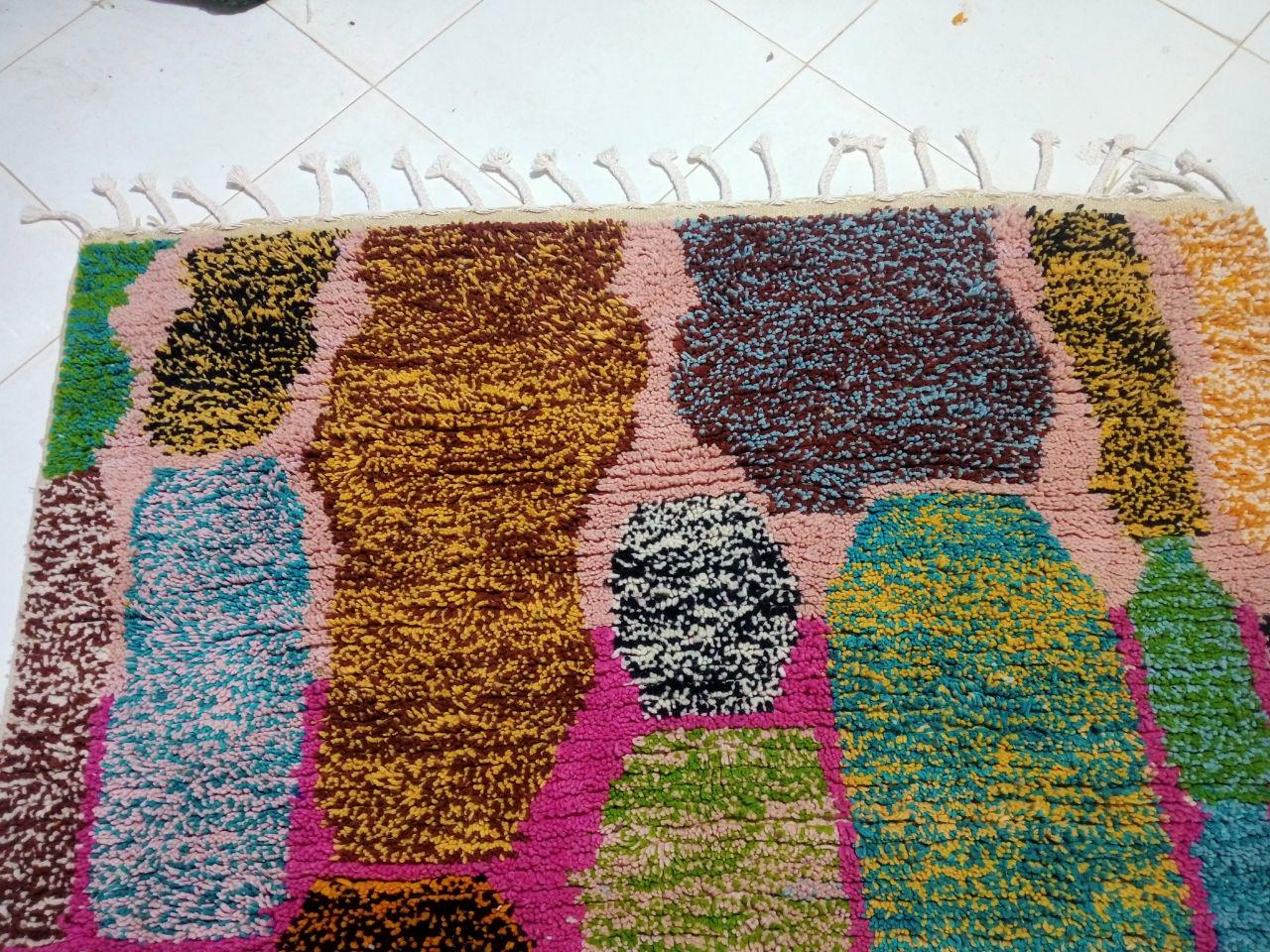 A Moroccan Berber Colorful rug is a traditional handwoven floor covering that originates from the indigenous Berber people of Morocco. These rugs are known for their intricate patterns and bold, geometric designs, which are created using a variety of natural dyes and High-quality Wool. Moroccan boujad rugs are versatile and can be used to add a touch of bohemian chic to any room, from a living room or bedroom to a home office or entryway. They are durable and easy to maintain, making them a practical choice for high-traffic areas. Whether you're looking to add a pop of color to your space or create a warm and welcoming atmosphere, a Moroccan Berber rug is a great choice. 📌 Shipping: insured, trackable, Fast, and FREE Worldwide by FedEx or DHL (2 to 5 days delivery). ❖ Cleaning: all rugs are carefully cleaned before shipping. ❖ Colors: Please take a look at the pictures. ❖ Texture: Moroccan / soft / Shag. ❖ Technique: Hand-Knotted ❖ Construction: Handmade ❖ Location: Indoor Use Only ❖ Material: Your order is made entirely by hand from natural wool, which means there will be natural (and beautiful) variations in pattern and color. Wool shrinks. ❖ Pattern: Because the product is handcrafted, the pattern and Colors may vary slightly from one piece to another. ❖ Size: While we try our best to ensure consistent sizing, it is possible for final sizes to vary by a few inches more or less. ❖ Tassels: One side is the Traditional way of making the rugs. 📌Ships tightly rolled in a protective bag. Any slight creasing will disappear within a few days. Shedding loose fibers is normal with new rugs. Shedding will diminish with regular vacuuming. If you have any questions or queries, please feel free to contact me via messages.