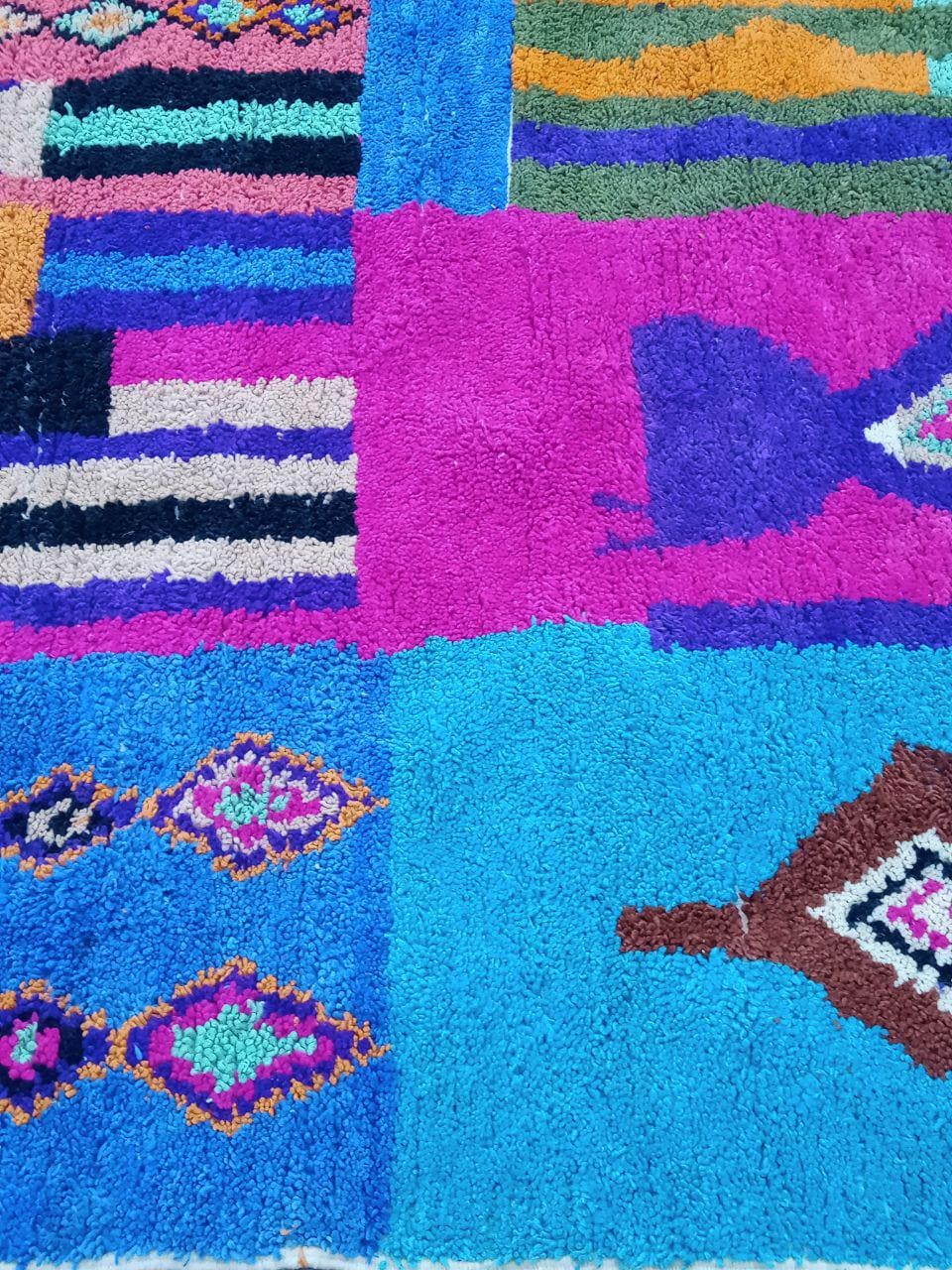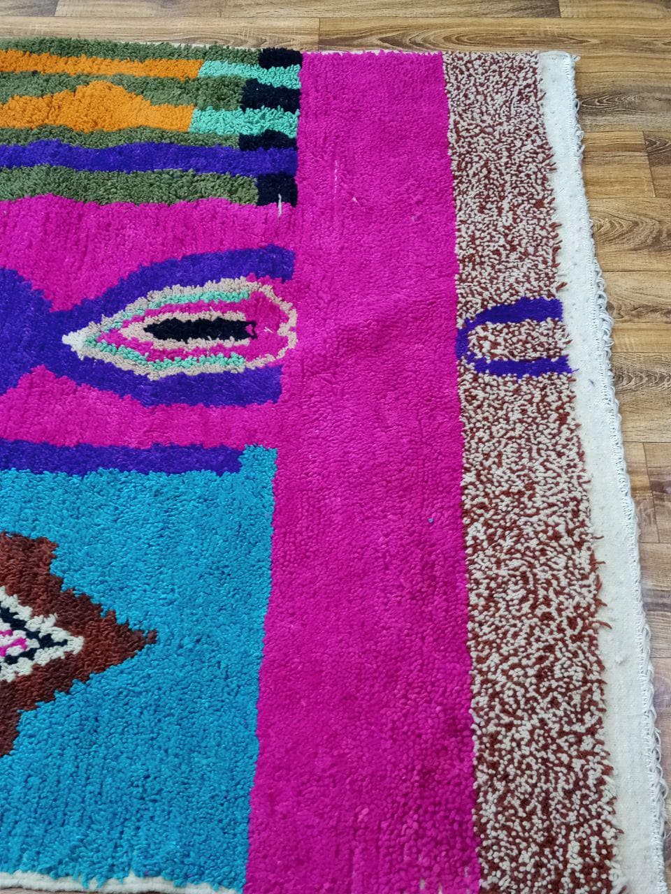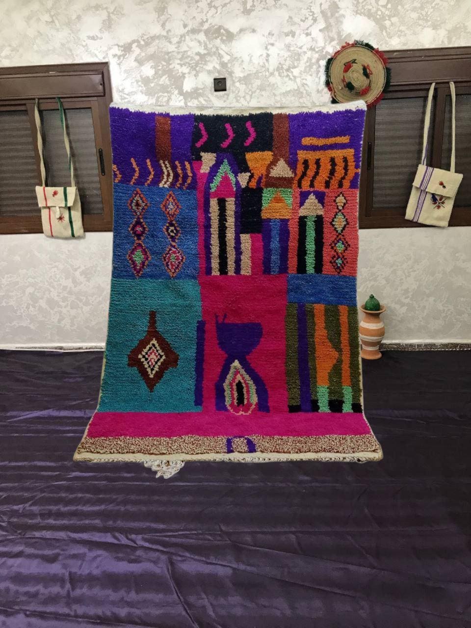 A Moroccan Berber Colorful rug is a traditional handwoven floor covering that originates from the indigenous Berber people of Morocco. These rugs are known for their intricate patterns and bold, geometric designs, which are created using a variety of natural dyes and High-quality Wool. Moroccan boujad rugs are versatile and can be used to add a touch of bohemian chic to any room, from a living room or bedroom to a home office or entryway. They are durable and easy to maintain, making them a practical choice for high-traffic areas. Whether you're looking to add a pop of color to your space or create a warm and welcoming atmosphere, a Moroccan Berber rug is a great choice. 📌 Shipping: insured, trackable, Fast, and FREE Worldwide by FedEx or DHL (2 to 5 days delivery). ❖ Cleaning: all rugs are carefully cleaned before shipping. ❖ Colors: Please take a look at the pictures. ❖ Texture: Moroccan / soft / Shag. ❖ Technique: Hand-Knotted ❖ Construction: Handmade ❖ Location: Indoor Use Only ❖ Material: Your order is made entirely by hand from natural wool, which means there will be natural (and beautiful) variations in pattern and color. Wool shrinks. ❖ Pattern: Because the product is handcrafted, the pattern and Colors may vary slightly from one piece to another. ❖ Size: While we try our best to ensure consistent sizing, it is possible for final sizes to vary by a few inches more or less. ❖ Tassels: One side is the Traditional way of making the rugs. 📌Ships tightly rolled in a protective bag. Any slight creasing will disappear within a few days. Shedding loose fibers is normal with new rugs. Shedding will diminish with regular vacuuming. If you have any questions or queries, please feel free to contact me via messages.
