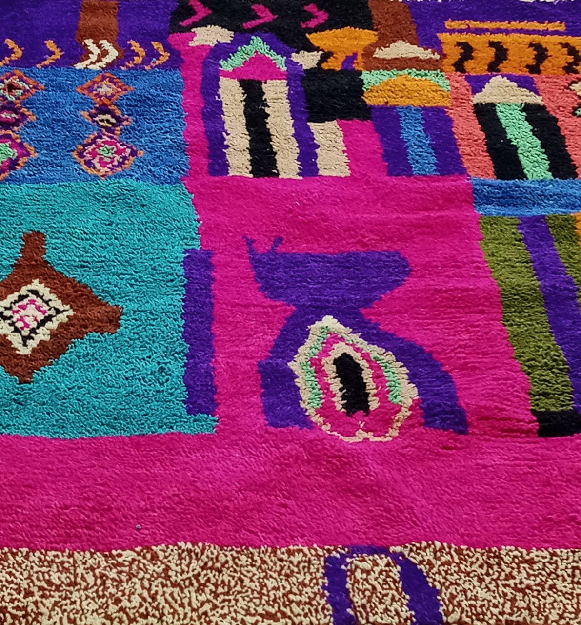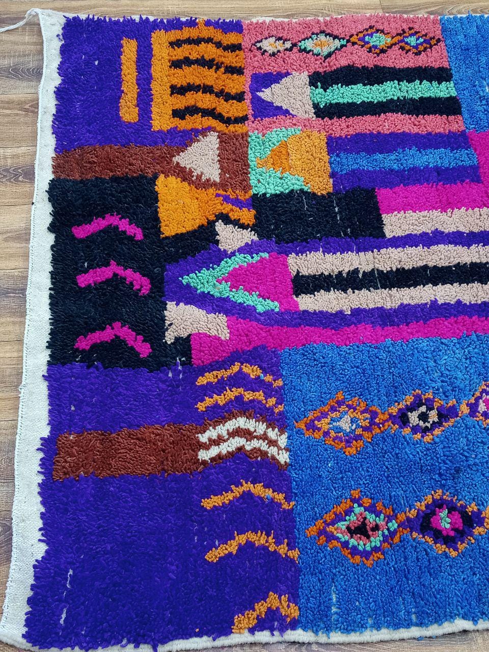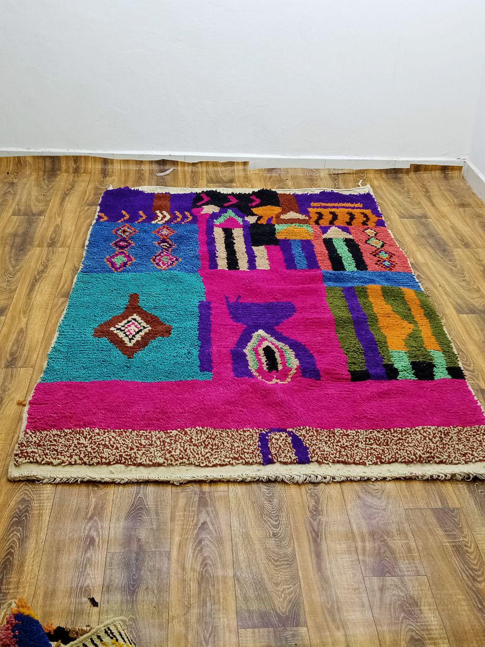 A Moroccan Berber Colorful rug is a traditional handwoven floor covering that originates from the indigenous Berber people of Morocco. These rugs are known for their intricate patterns and bold, geometric designs, which are created using a variety of natural dyes and High-quality Wool. Moroccan boujad rugs are versatile and can be used to add a touch of bohemian chic to any room, from a living room or bedroom to a home office or entryway. They are durable and easy to maintain, making them a practical choice for high-traffic areas. Whether you're looking to add a pop of color to your space or create a warm and welcoming atmosphere, a Moroccan Berber rug is a great choice. 📌 Shipping: insured, trackable, Fast, and FREE Worldwide by FedEx or DHL (2 to 5 days delivery). ❖ Cleaning: all rugs are carefully cleaned before shipping. ❖ Colors: Please take a look at the pictures. ❖ Texture: Moroccan / soft / Shag. ❖ Technique: Hand-Knotted ❖ Construction: Handmade ❖ Location: Indoor Use Only ❖ Material: Your order is made entirely by hand from natural wool, which means there will be natural (and beautiful) variations in pattern and color. Wool shrinks. ❖ Pattern: Because the product is handcrafted, the pattern and Colors may vary slightly from one piece to another. ❖ Size: While we try our best to ensure consistent sizing, it is possible for final sizes to vary by a few inches more or less. ❖ Tassels: One side is the Traditional way of making the rugs. 📌Ships tightly rolled in a protective bag. Any slight creasing will disappear within a few days. Shedding loose fibers is normal with new rugs. Shedding will diminish with regular vacuuming. If you have any questions or queries, please feel free to contact me via messages.