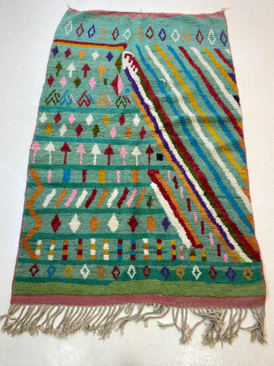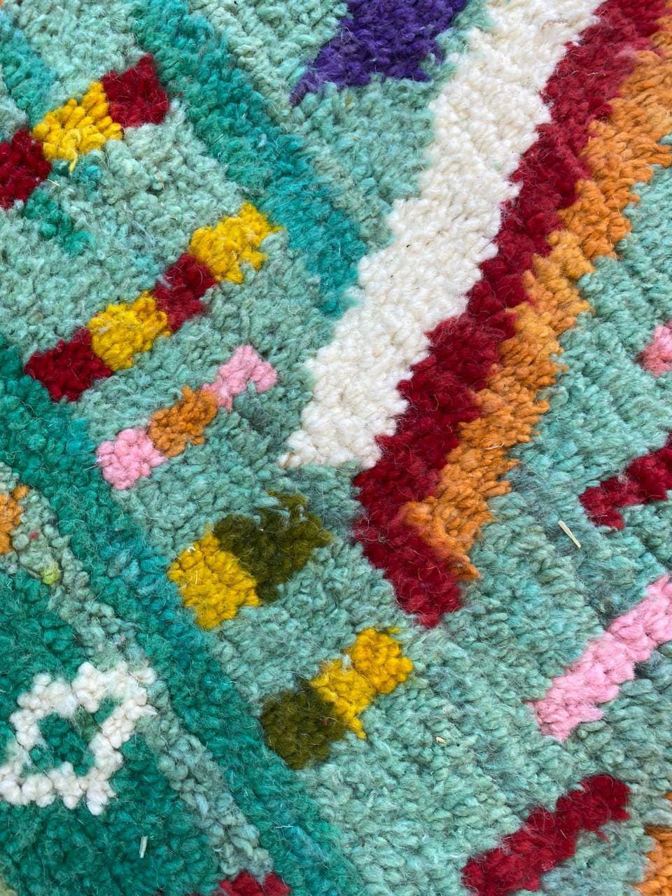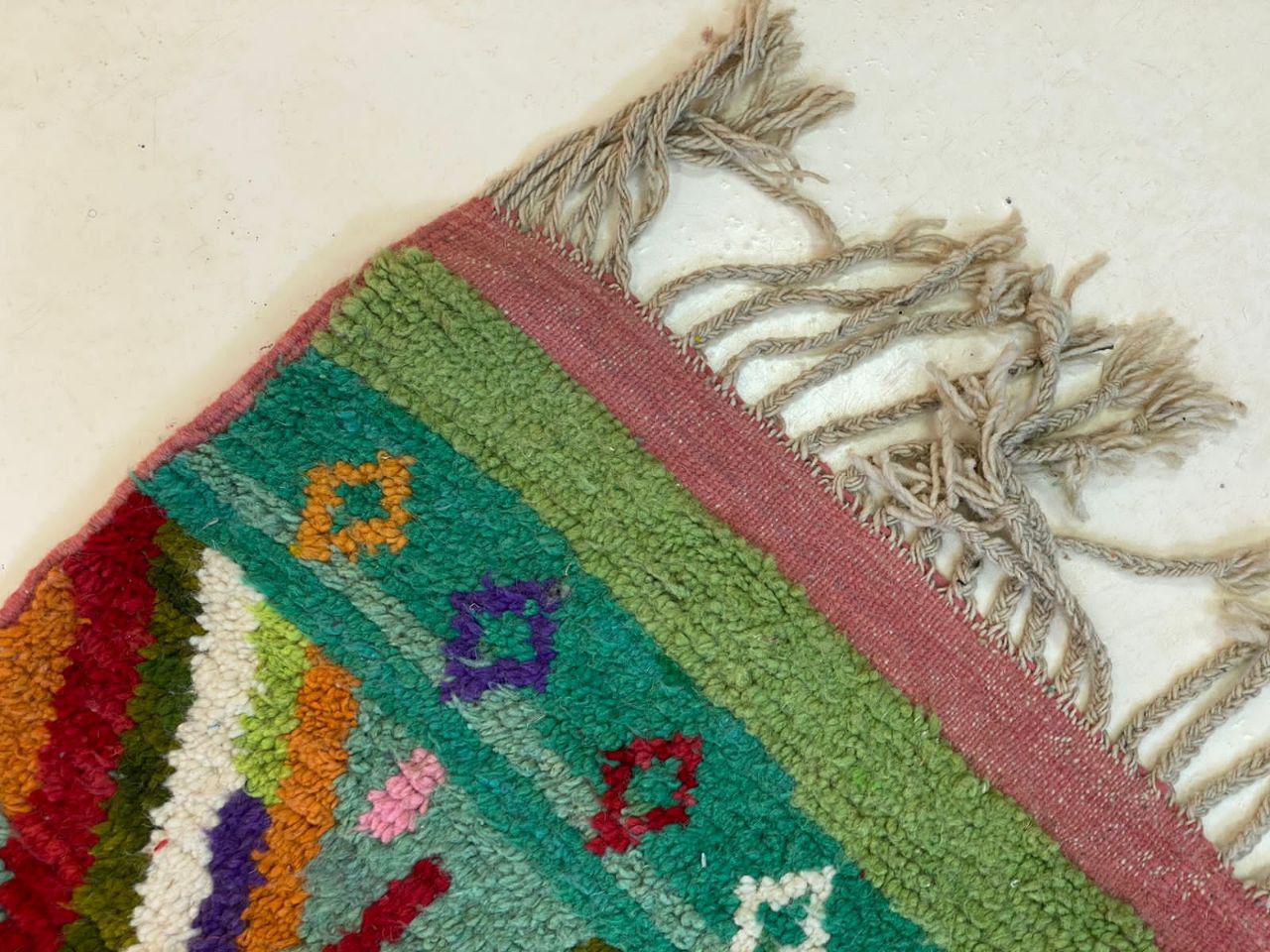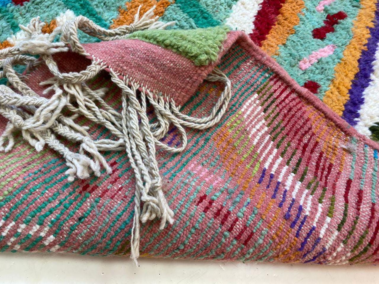 A Moroccan Berber Colorful rug is a traditional handwoven floor covering that originates from the indigenous Berber people of Morocco. These rugs are known for their intricate patterns and bold, geometric designs, which are created using a variety of natural dyes and High-quality Wool. Moroccan boujad rugs are versatile and can be used to add a touch of bohemian chic to any room, from a living room or bedroom to a home office or entryway. They are durable and easy to maintain, making them a practical choice for high-traffic areas. Whether you're looking to add a pop of color to your space or create a warm and welcoming atmosphere, a Moroccan Berber rug is a great choice. 📌 Shipping: insured, trackable, Fast, and FREE Worldwide by FedEx or DHL (2 to 5 days delivery). ❖ Cleaning: all rugs are carefully cleaned before shipping. ❖ Colors: Please take a look at the pictures. ❖ Texture: Moroccan / soft / Shag. ❖ Technique: Hand-Knotted ❖ Construction: Handmade ❖ Location: Indoor Use Only ❖ Material: Your order is made entirely by hand from natural wool, which means there will be natural (and beautiful) variations in pattern and color. Wool shrinks. ❖ Pattern: Because the product is handcrafted, the pattern and Colors may vary slightly from one piece to another. ❖ Size: While we try our best to ensure consistent sizing, it is possible for final sizes to vary by a few inches more or less. ❖ Tassels: One side is the Traditional way of making the rugs. 📌Ships tightly rolled in a protective bag. Any slight creasing will disappear within a few days. Shedding loose fibers is normal with new rugs. Shedding will diminish with regular vacuuming. If you have any questions or queries, please feel free to contact me via messages.