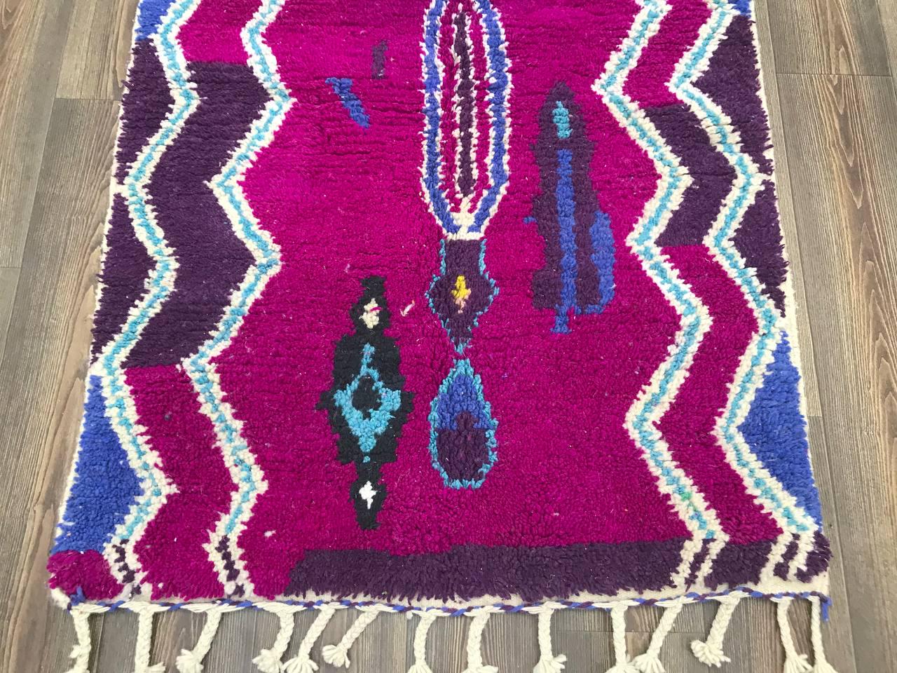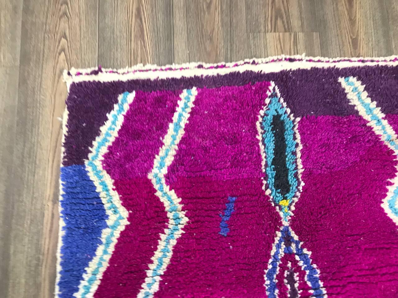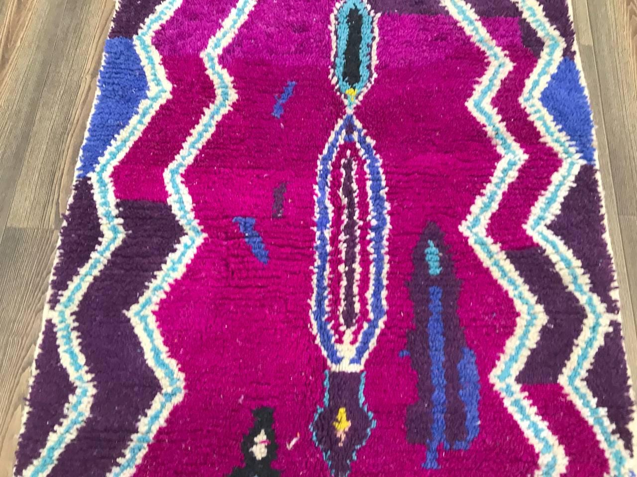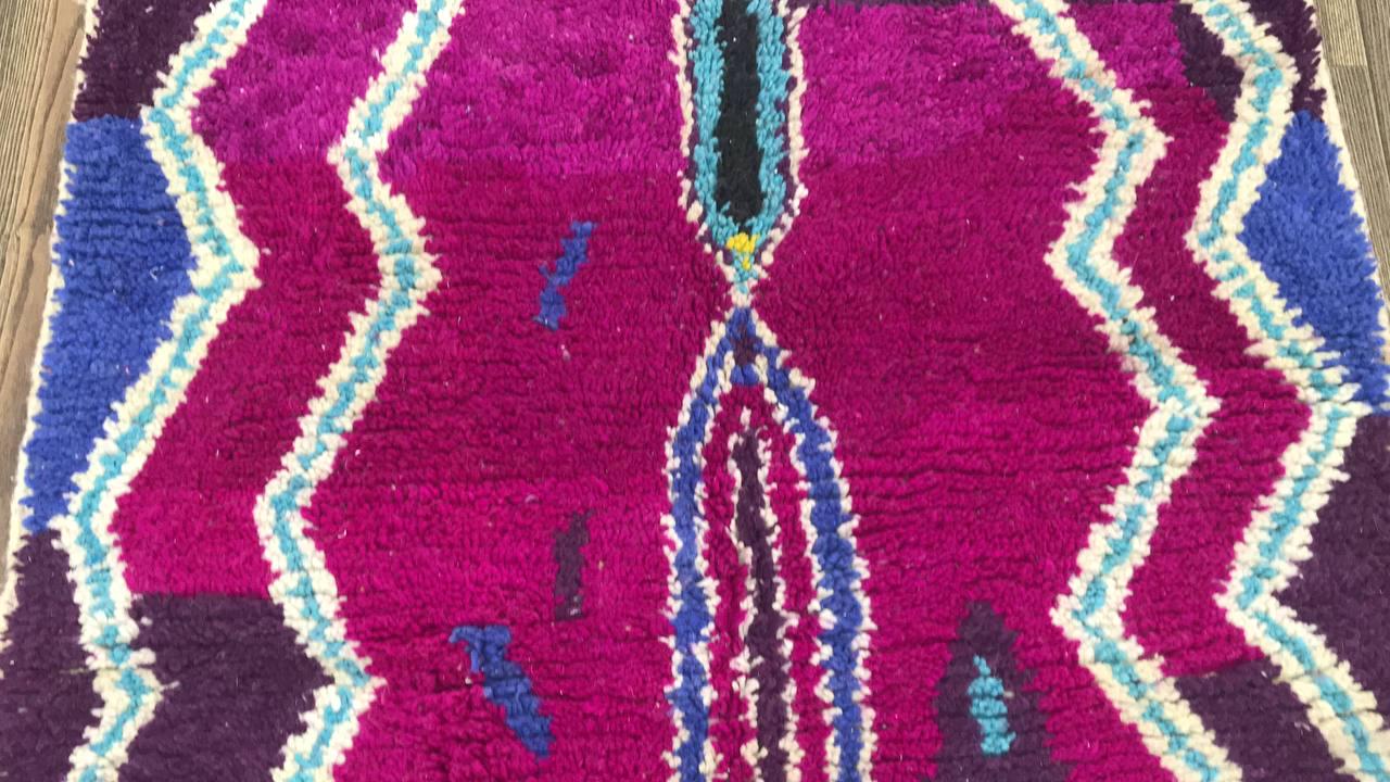 A Moroccan Berber Colorful rug is a traditional handwoven floor covering that originates from the indigenous Berber people of Morocco. These rugs are known for their intricate patterns and bold, geometric designs, which are created using a variety of natural dyes and High-quality Wool. Moroccan boujad rugs are versatile and can be used to add a touch of bohemian chic to any room, from a living room or bedroom to a home office or entryway. They are durable and easy to maintain, making them a practical choice for high-traffic areas. Whether you're looking to add a pop of color to your space or create a warm and welcoming atmosphere, a Moroccan Berber rug is a great choice.