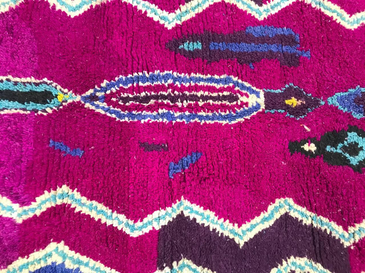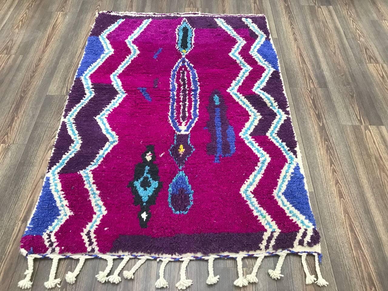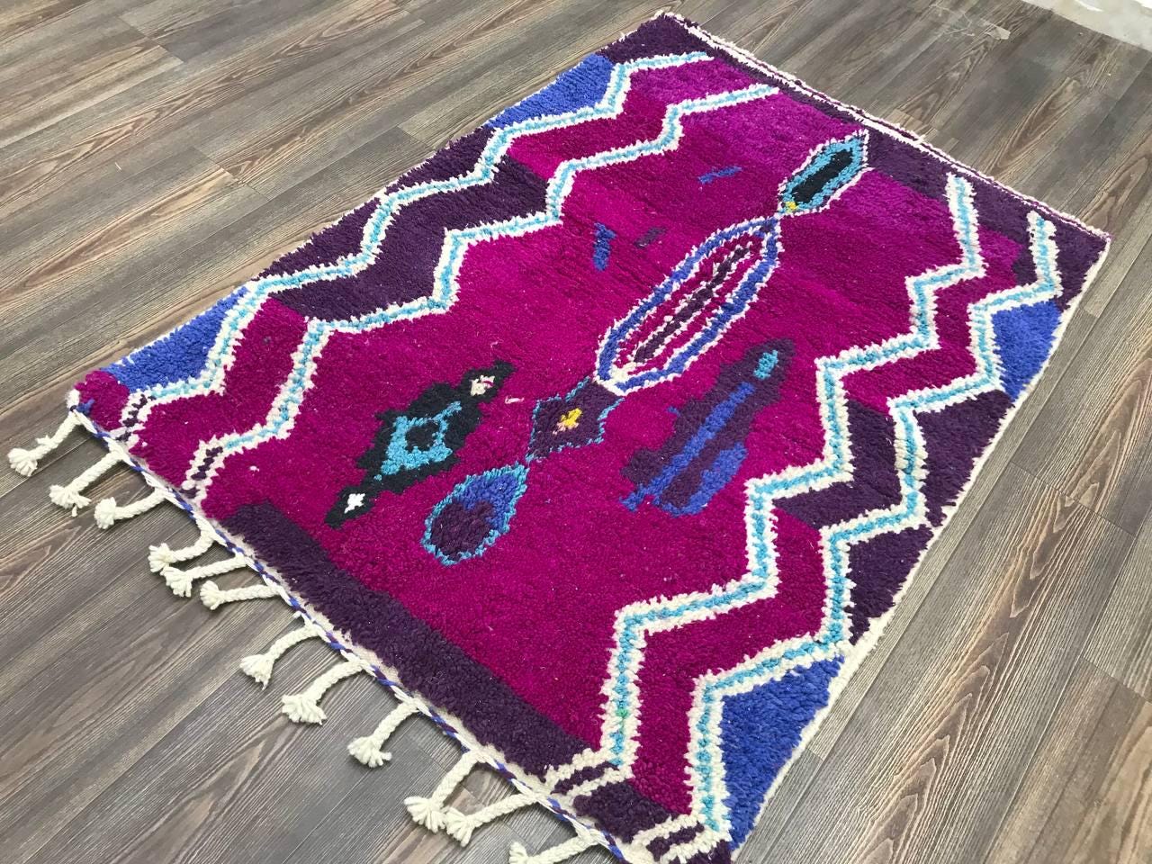 A Moroccan Berber Colorful rug is a traditional handwoven floor covering that originates from the indigenous Berber people of Morocco. These rugs are known for their intricate patterns and bold, geometric designs, which are created using a variety of natural dyes and High-quality Wool. Moroccan boujad rugs are versatile and can be used to add a touch of bohemian chic to any room, from a living room or bedroom to a home office or entryway. They are durable and easy to maintain, making them a practical choice for high-traffic areas. Whether you're looking to add a pop of color to your space or create a warm and welcoming atmosphere, a Moroccan Berber rug is a great choice.