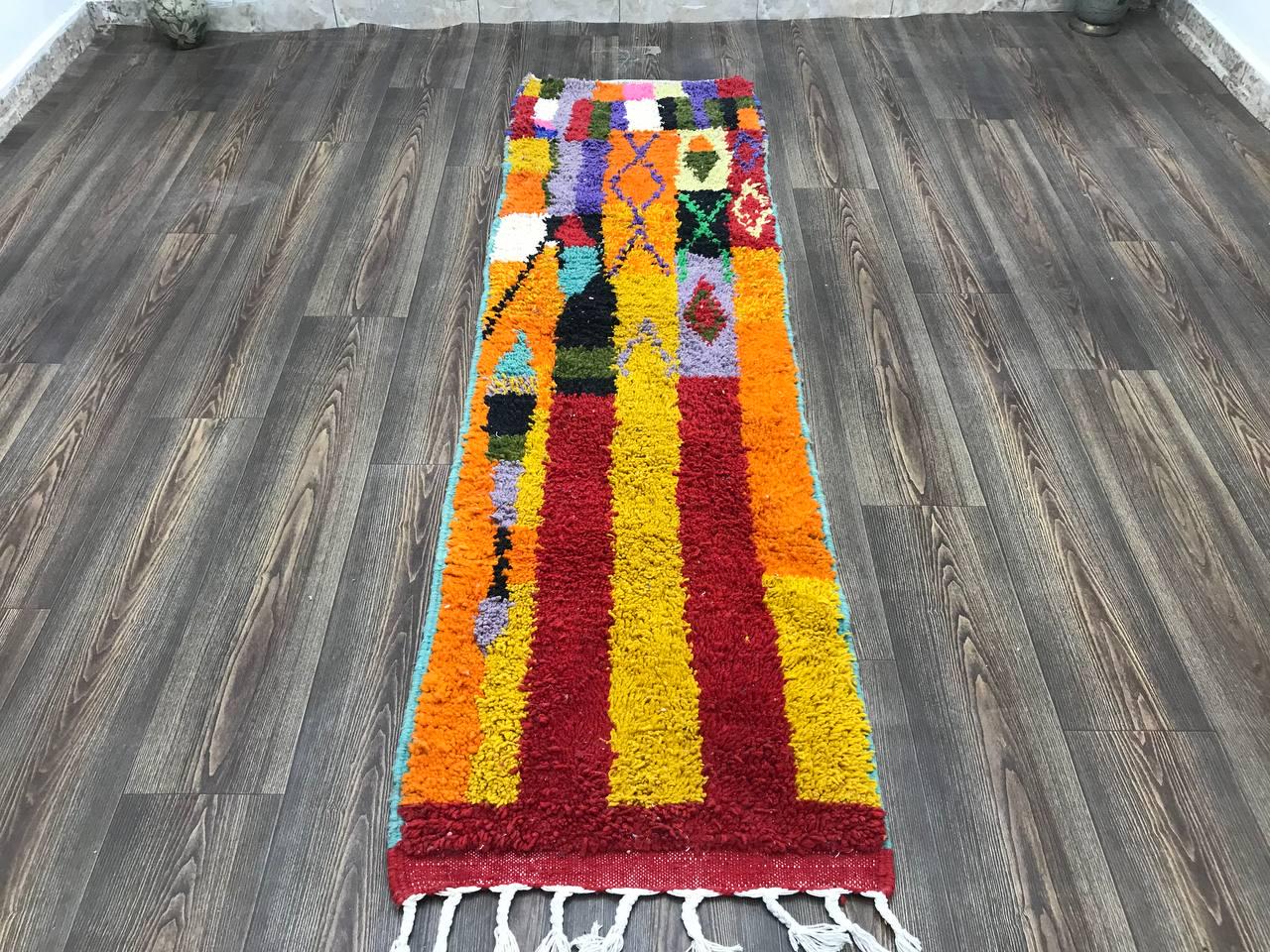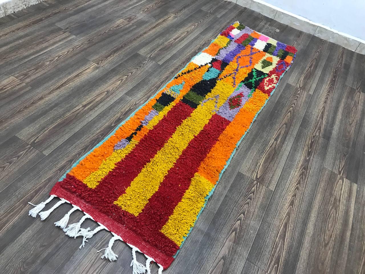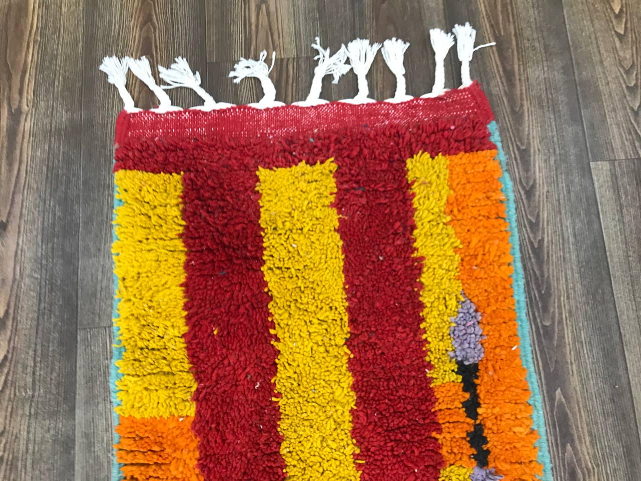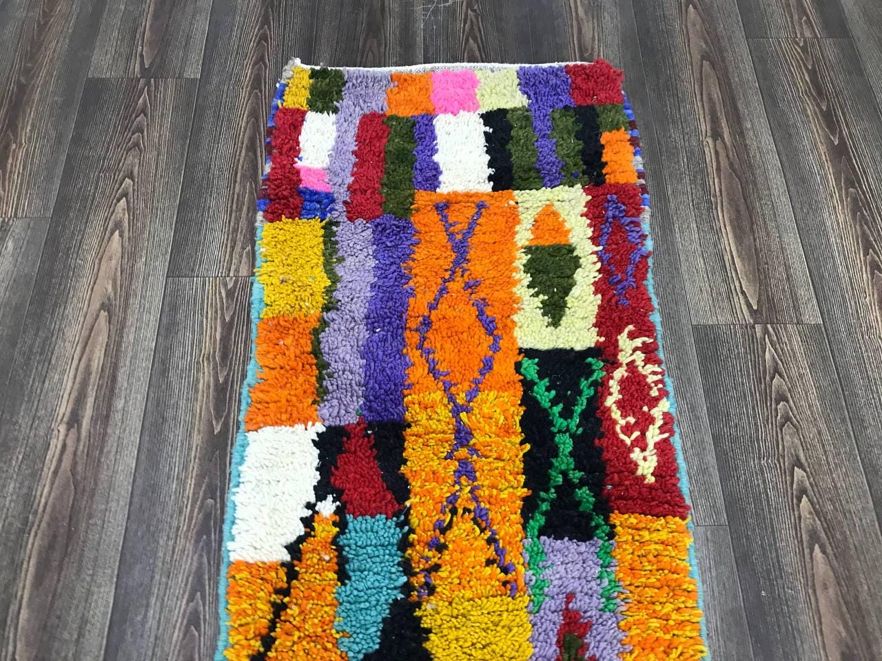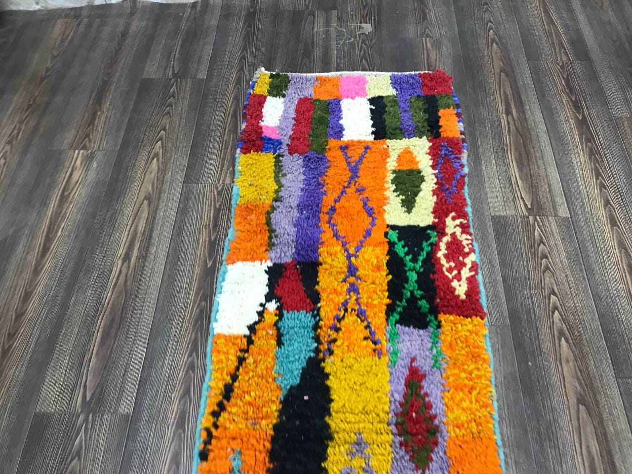 A Moroccan Berber Colorful rug is a traditional handwoven floor covering that originates from the indigenous Berber people of Morocco. These rugs are known for their intricate patterns and bold, geometric designs, which are created using a variety of natural dyes and High-quality Wool. Moroccan boujad rugs are versatile and can be used to add a touch of bohemian chic to any room, from a living room or bedroom to a home office or entryway. They are durable and easy to maintain, making them a practical choice for high-traffic areas. Whether you're looking to add a pop of color to your space or create a warm and welcoming atmosphere, a Moroccan Berber rug is a great choice. 📌 Shipping: insured, trackable, Fast, and FREE Worldwide by FedEx or DHL (2 to 5 days delivery). ❖ Cleaning: all rugs are carefully cleaned before shipping. ❖ Colors: Please take a look at the pictures. ❖ Texture: Moroccan / soft / Shag. ❖ Technique: Hand-Knotted ❖ Construction: Handmade ❖ Location: Indoor Use Only ❖ Material: Your order is made entirely by hand from natural wool, which means there will be natural (and beautiful) variations in pattern and color. Wool shrinks. ❖ Pattern: Because the product is handcrafted, the pattern and Colors may vary slightly from one piece to another. ❖ Size: While we try our best to ensure consistent sizing, it is possible for final sizes to vary by a few inches more or less. ❖ Tassels: One side is the Traditional way of making the rugs. 📌Ships tightly rolled in a protective bag. Any slight creasing will disappear within a few days. Shedding loose fibers is normal with new rugs. Shedding will diminish with regular vacuuming. If you have any questions or queries, please feel free to contact me via messages.