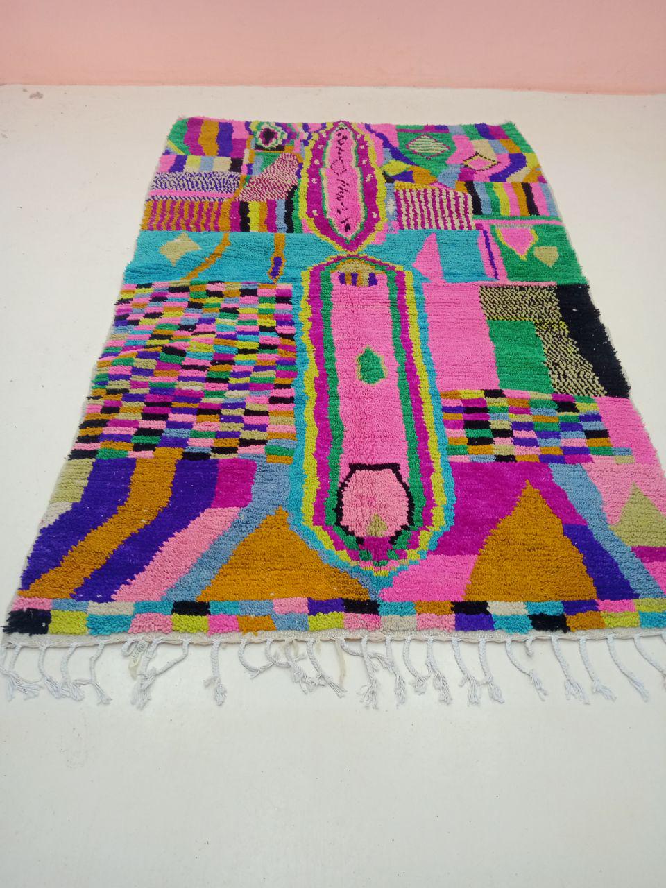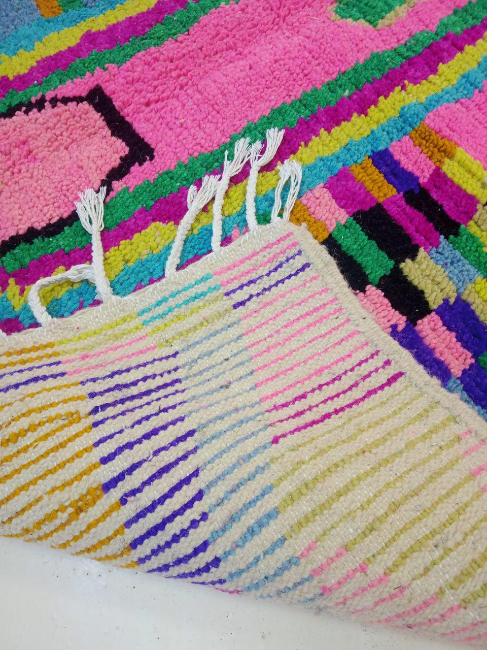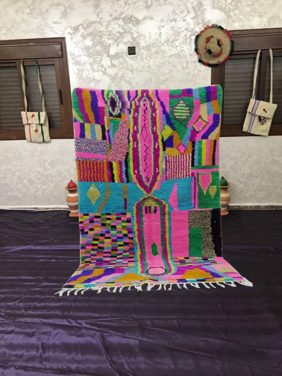 A Moroccan Berber Colorful rug is a traditional handwoven floor covering that originates from the indigenous Berber people of Morocco. These rugs are known for their intricate patterns and bold, geometric designs, which are created using a variety of natural dyes and High-quality Wool. Moroccan boujad rugs are versatile and can be used to add a touch of bohemian chic to any room, from a living room or bedroom to a home office or entryway. They are durable and easy to maintain, making them a practical choice for high-traffic areas. Whether you're looking to add a pop of color to your space or create a warm and welcoming atmosphere, a Moroccan Berber rug is a great choice. 📌 Shipping: insured, trackable, Fast, and FREE Worldwide by FedEx or DHL (2 to 5 days delivery). ❖ Cleaning: all rugs are carefully cleaned before shipping. ❖ Colors: Please take a look at the pictures. ❖ Texture: Moroccan / soft / Shag. ❖ Technique: Hand-Knotted ❖ Construction: Handmade ❖ Location: Indoor Use Only ❖ Material: Your order is made entirely by hand from natural wool, which means there will be natural (and beautiful) variations in pattern and color. Wool shrinks. ❖ Pattern: Because the product is handcrafted, the pattern and Colors may vary slightly from one piece to another. ❖ Size: While we try our best to ensure consistent sizing, it is possible for final sizes to vary by a few inches more or less. ❖ Tassels: One side is the Traditional way of making the rugs. 📌Ships tightly rolled in a protective bag. Any slight creasing will disappear within a few days. Shedding loose fibers is normal with new rugs. Shedding will diminish with regular vacuuming. If you have any questions or queries, please feel free to contact me via messages.
