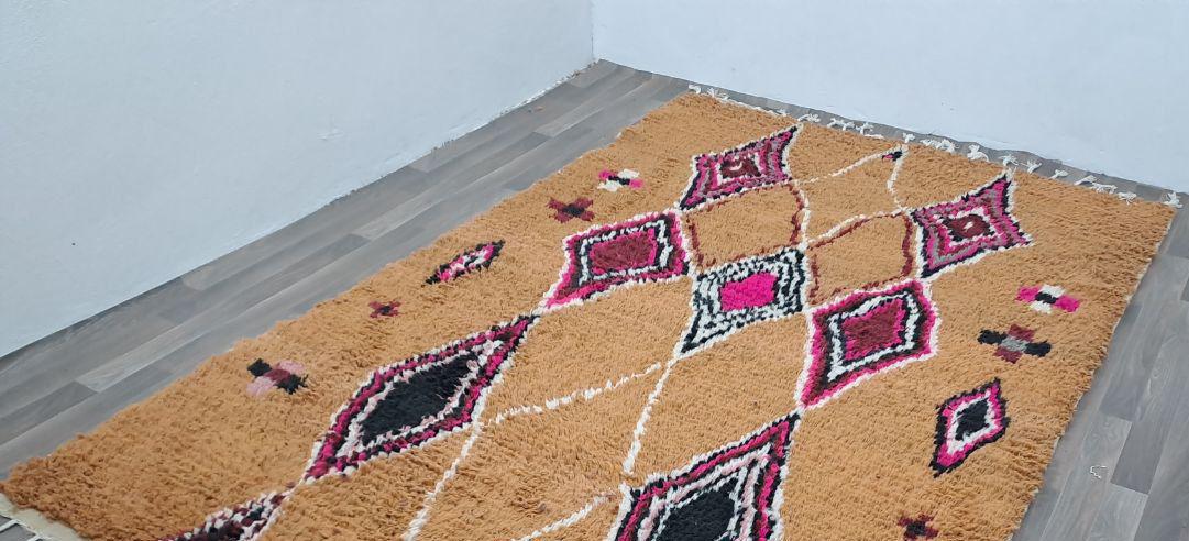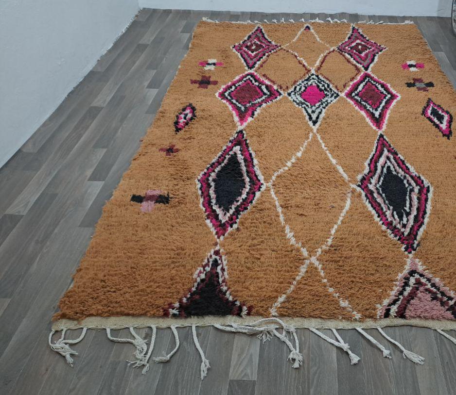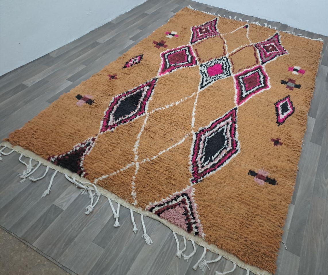 A Moroccan Berber Colorful rug is a traditional handwoven floor covering that originates from the indigenous Berber people of Morocco. These rugs are known for their intricate patterns and bold, geometric designs, which are created using a variety of natural dyes and High-quality Wool. Moroccan boujad rugs are versatile and can be used to add a touch of bohemian chic to any room, from a living room or bedroom to a home office or entryway. They are durable and easy to maintain, making them a practical choice for high-traffic areas. Whether you're looking to add a pop of color to your space or create a warm and welcoming atmosphere, a Moroccan Berber rug is a great choice.